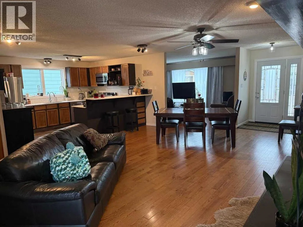Welcome to this beautifully updated 1,576 sq. ft. bungalow with double attached garage and RV parking located in the desirable community of Wembley. Offering exceptional value, this spacious home features 4 bedrooms and 3 bathrooms, making it ideal for families or those seeking additional space in a quiet, small-town setting.The main floor showcases a bright kitchen complete with quartz countertops, and updated finishes throughout the house. The primary bedroom includes an ensuite, with 2 additional bedrooms and updated main 4 piece bath.The basement offers a large family room and dedicated theatre area, perfect for entertaining or relaxing. A fourth bedroom and additional bathroom, a gym room, along with a newly renovated laundry space, add to the homeâs functionality.Situated on a generous lot, the exterior features a fully fenced, south-facing backyard with a new deck, ideal for outdoor enjoyment. Extensive updates over the years include shingles and eavestroughs, windows and exterior doors, 2 bathrooms, and more, making this home truly move-in ready.Located in Wembley, residents benefit from a peaceful, family-friendly environment with convenient local amenities such as a clinic, grocery, liquor, eating establishment and schools, all while being a short drive to Grande Prairie. Lower property taxes and excellent value make this an attractive alternative to city living.Donât miss your opportunity to own this well-maintained, thoughtfully upgraded home in a welcoming community. (id:27476)