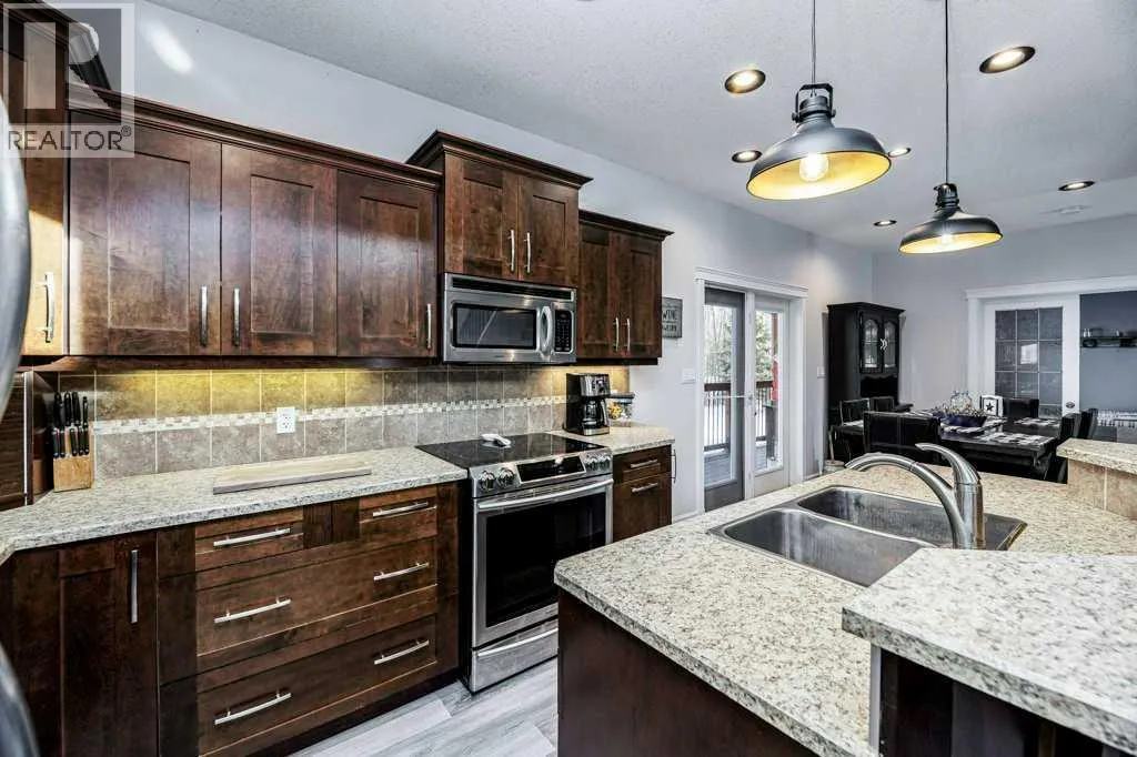 Discover your slice of lakeside serenity in the desirable Crystal Keys subdivision at Pigeon Lake! This meticulously updated home offers prime lake access with the freedom to install your own boat, lift, and dock in a dedicated area shared among neighbors who collaborate seamlessly. Exclusive private boat launch (key access only for Crystal Keys and Crystal Springs residents â not public) ensures effortless water adventures right from your doorstep. Enjoy stunning lake views from the expansive back deck and upper decks, perfect for morning coffee or evening sunsets. Tons of walking paths surround the property, including one directly behind the home which leads to the beach just a 2 minute walk away down Moose Trail, ideal for leisurely strolls along the lake. Golf enthusiasts rejoice â numerous courses are just minutes away, with a couple practically next door! Recent Updates (2023â2025) include - Brand new washer & dryer (2025), Fresh paint throughout (2025), New light fixtures downstairs + pot lights (2025), New flooring downstairs & upstairs bathrooms (2025), New deck railing (2023), Heated & oversized finished garage (2019) â plenty of space for toys & projects.Outside, relax under the gorgeous wood gazebo, prep for spa nights with pre-wired hot tub plug-in, and dream of summer bounty in the dedicated veggie garden spot. Lush flower beds (hidden under winter snow) add vibrant curb appeal come spring.Pigeon Lake living at its finest â close proximity to golf, private lake perks, and the village amenities such as shopping/restaurants/pharmacy. It is a must see!! (id:27476)