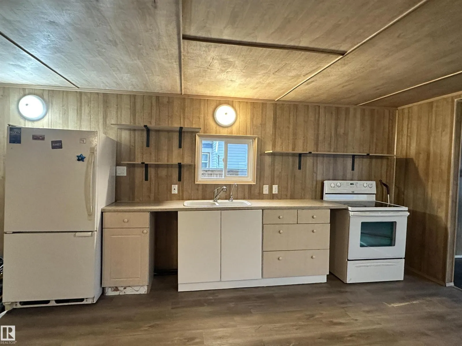 Affordable living! This Glendale Vista Villa, with addition, is ready for new owners. Fully move in ready, this home comes with peace of mind. All electrical and plumbing have been redone, and brought into the home; a mobile with no worries of freezing lines! Recently redone asphalt roofing, new exterior vinyl and insulated skirting. Enjoy 902 sqft of living space. The porch is spacious, lots of room to make it into your own boot room. Open concept kitchen, living and dining space. A large pantry would compliment the simple, functional kitchen. Big window in the living room lets in a lot of natural light. New vinyl flooring throughout the home. Updated 4pc bath, which doubles as laundry room. One good size bdrm and a flex space could be used as a den, home gym, office; you name it! Located in Northline Trailer Park; walking distance to parks, daycare, groceries, and more shopping developments happening down the street in the near future. Storage shed included. Lot rent $525/month. (id:27476)