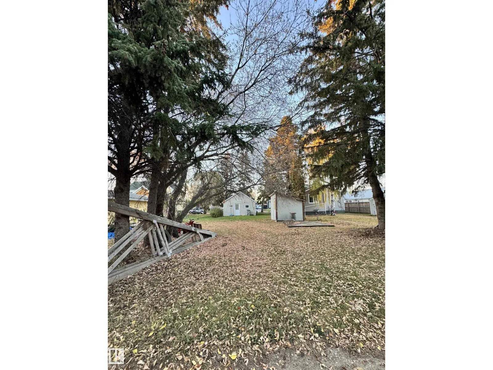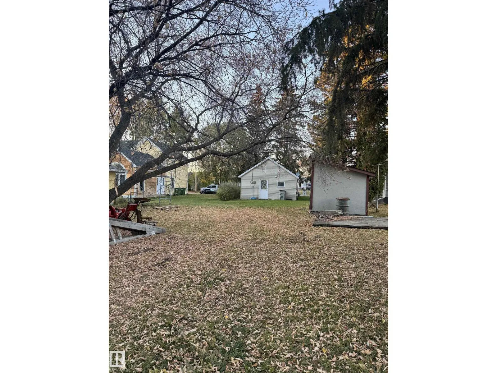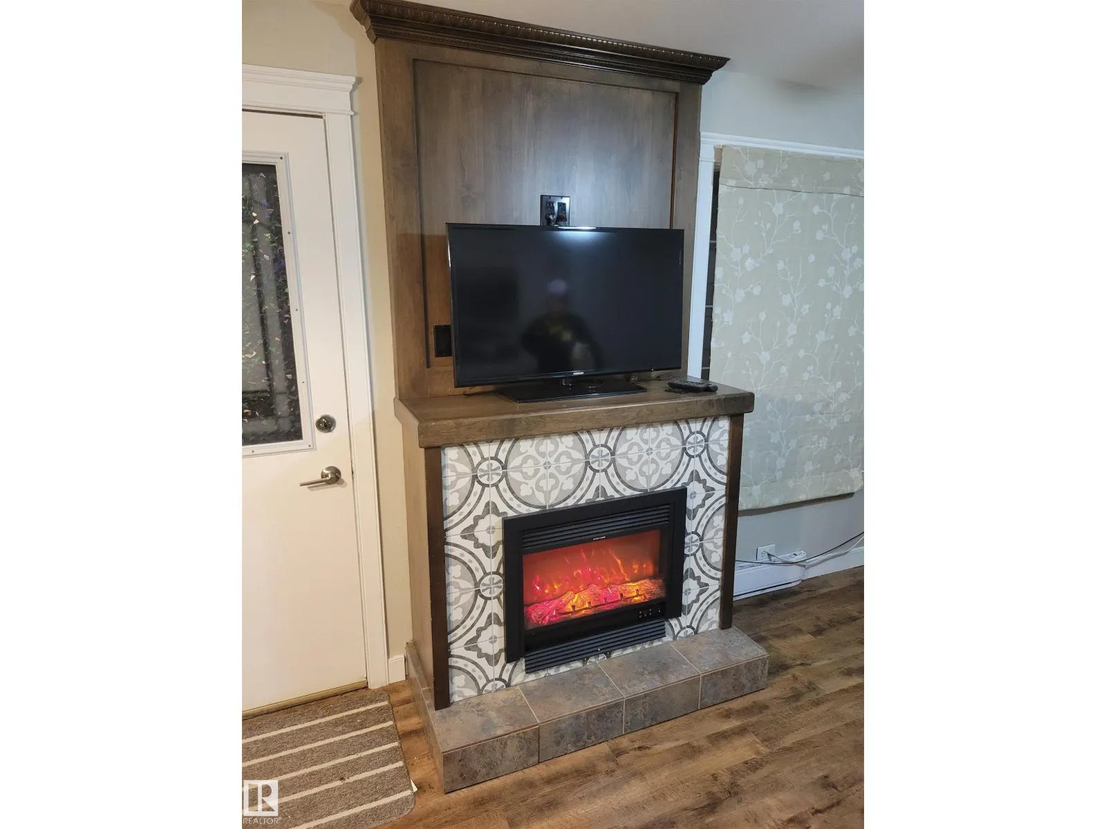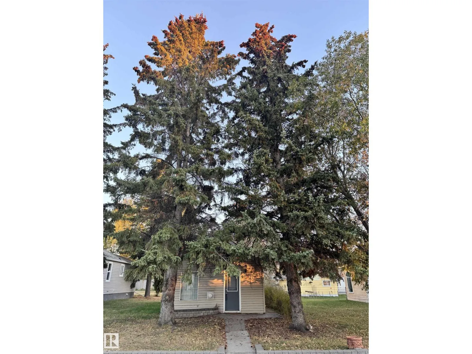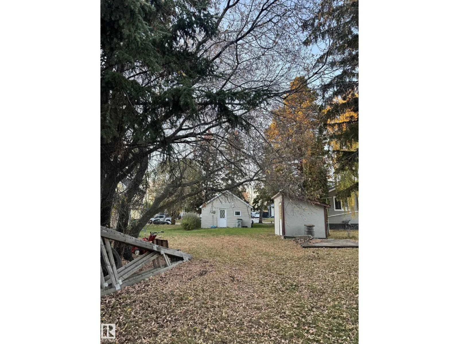 Cozy bungalow in Westlock surrounded by mature evergreens and a welcoming front flower bed. Step inside to your vision of a custom tiny home with a warm living and dining area featuring a tile-surround fireplace. The kitchen boasts custom cabinetry, stainless steel appliances, and ceramic tile, creating a thoughtful, efficient layout. Built-in cabinetry flows throughout the home, from the fireplace to the kitchen, laundry, bedroom, and bath, blending function with design. The primary bedroom includes built-in wardrobes, end tables, pot lights, and a ceiling fan for comfort. The laundry room offers a bench and more cabinets for back entry storage. The four-piece bath features a tiled shower and a heat lamp. Outside, enjoy a large backyard with trees, a storage shed, and a walking path wrapping the home, ideal for relaxing, gardening, or future expansion of your small-town sanctuary. (id:27476)