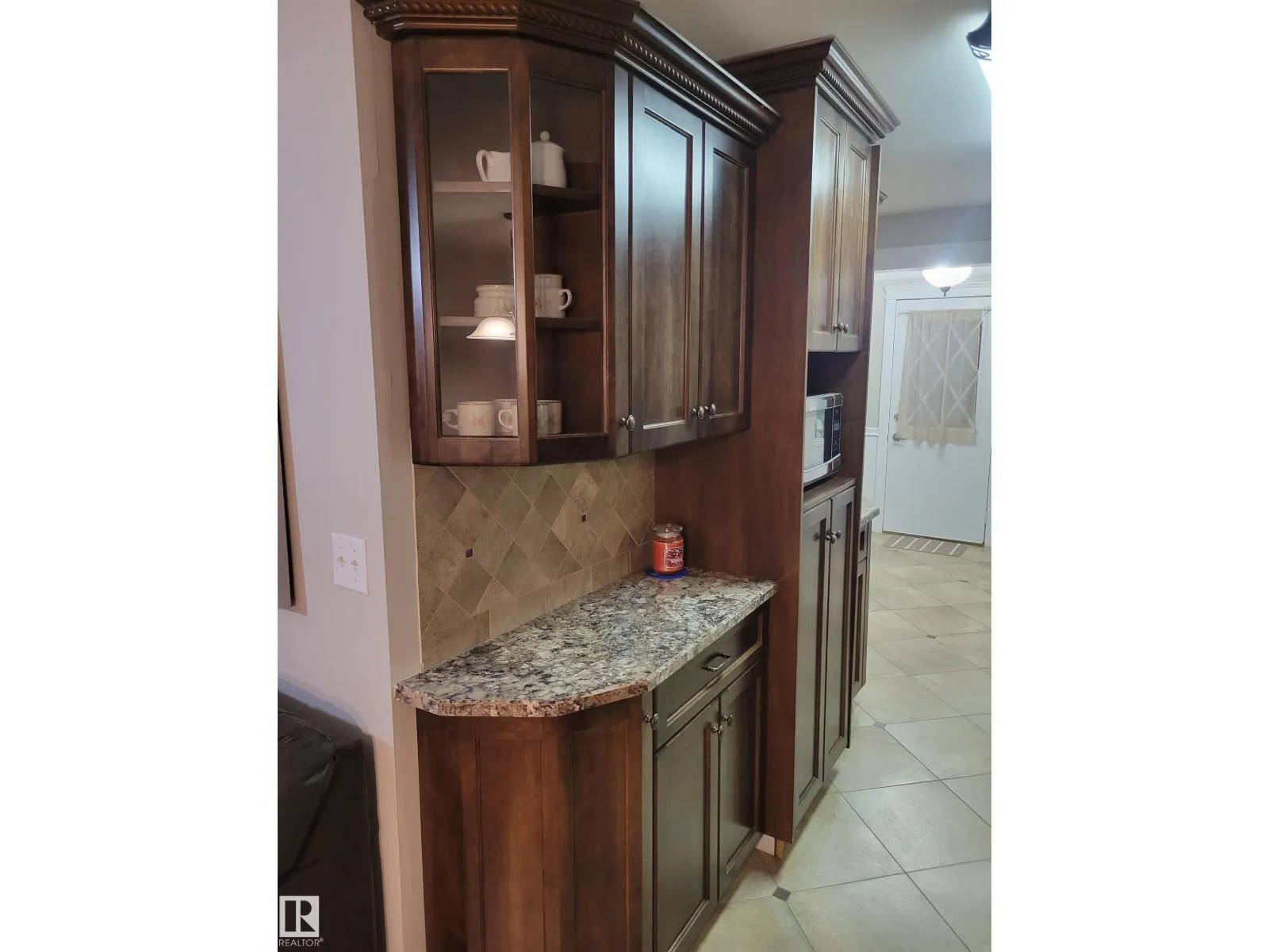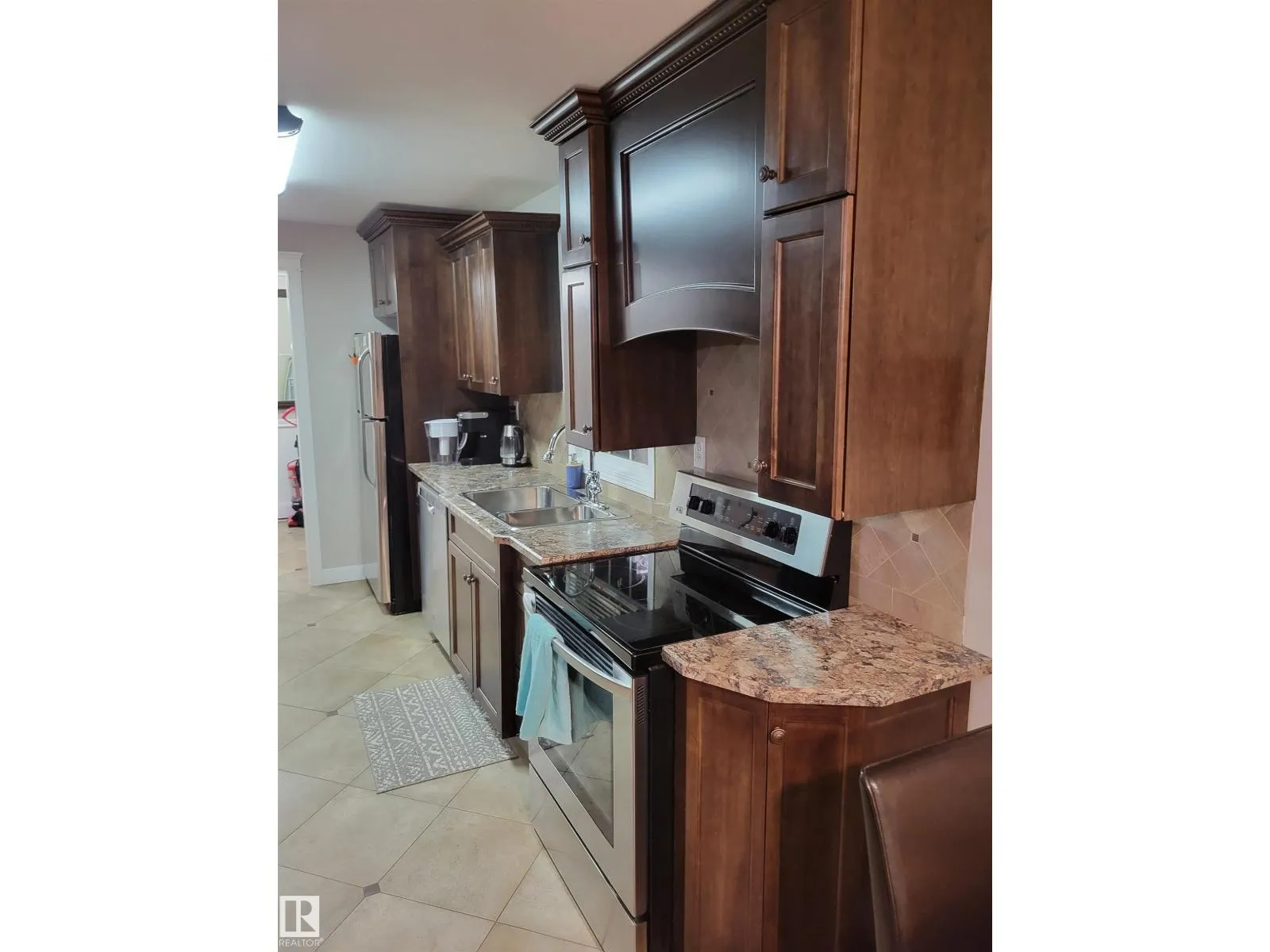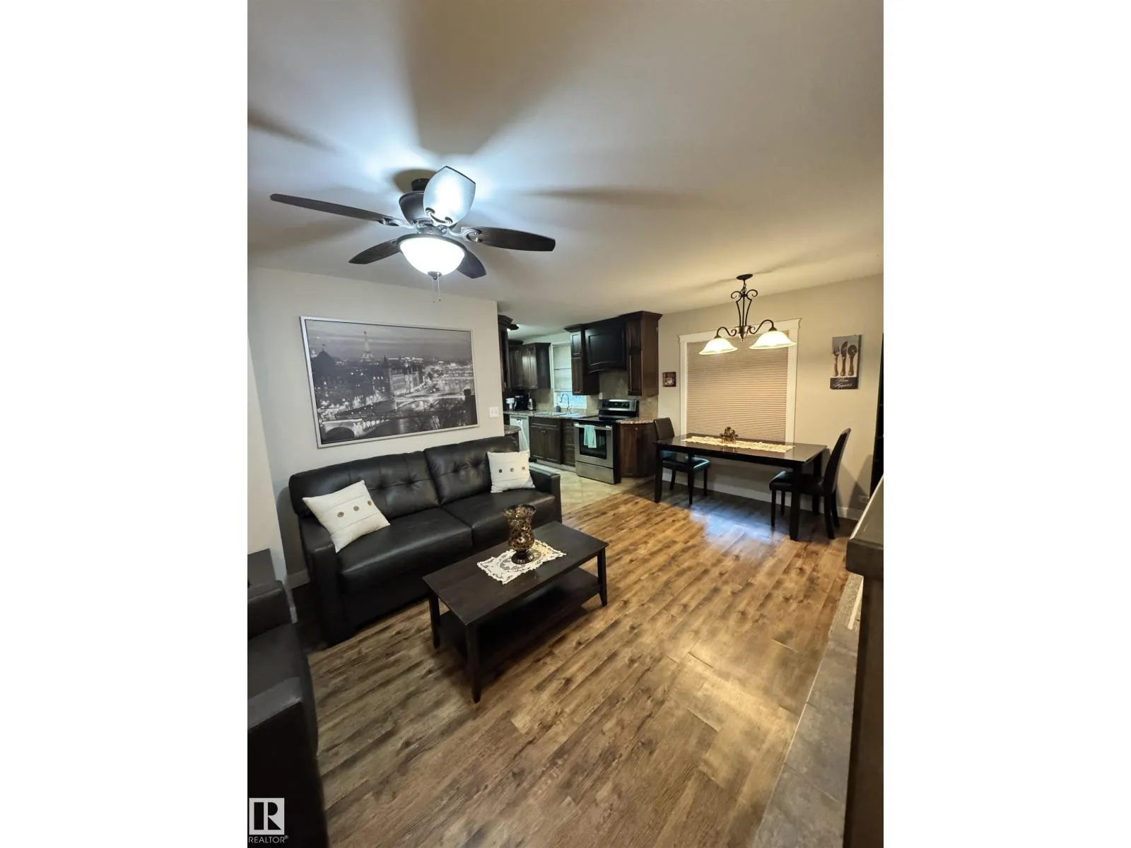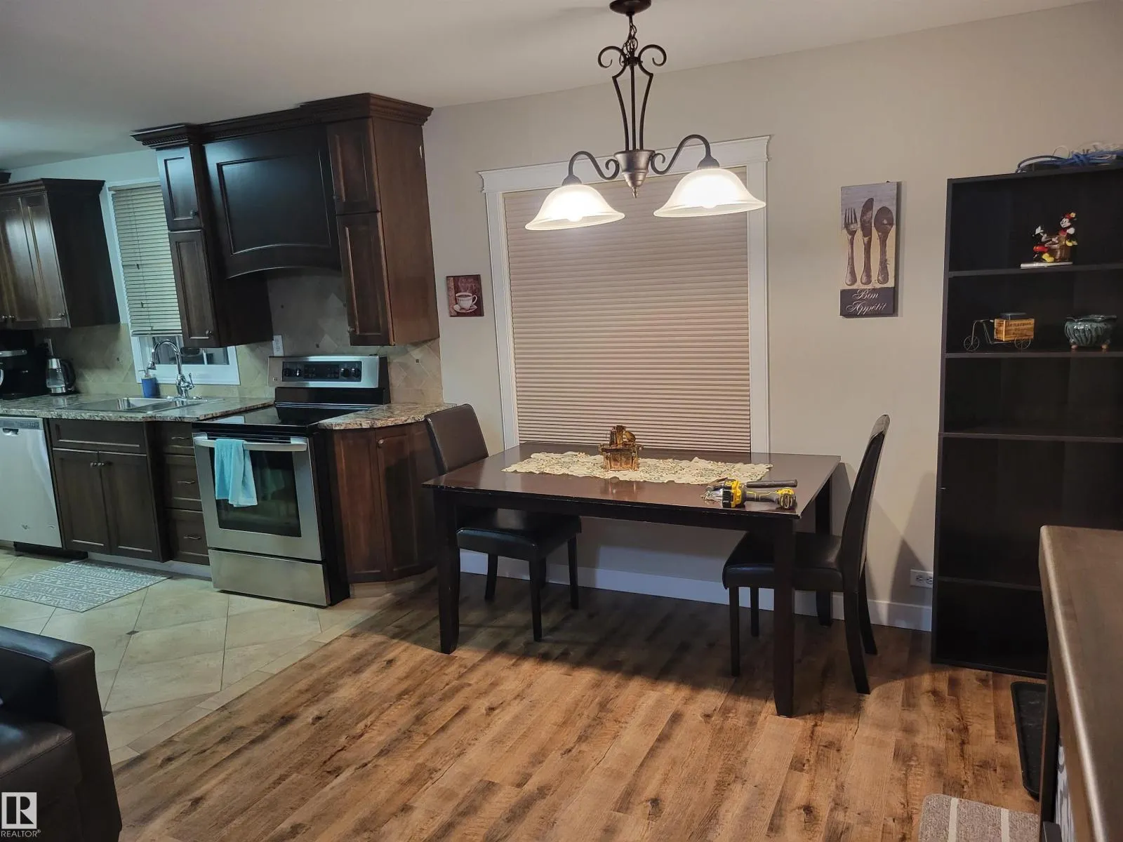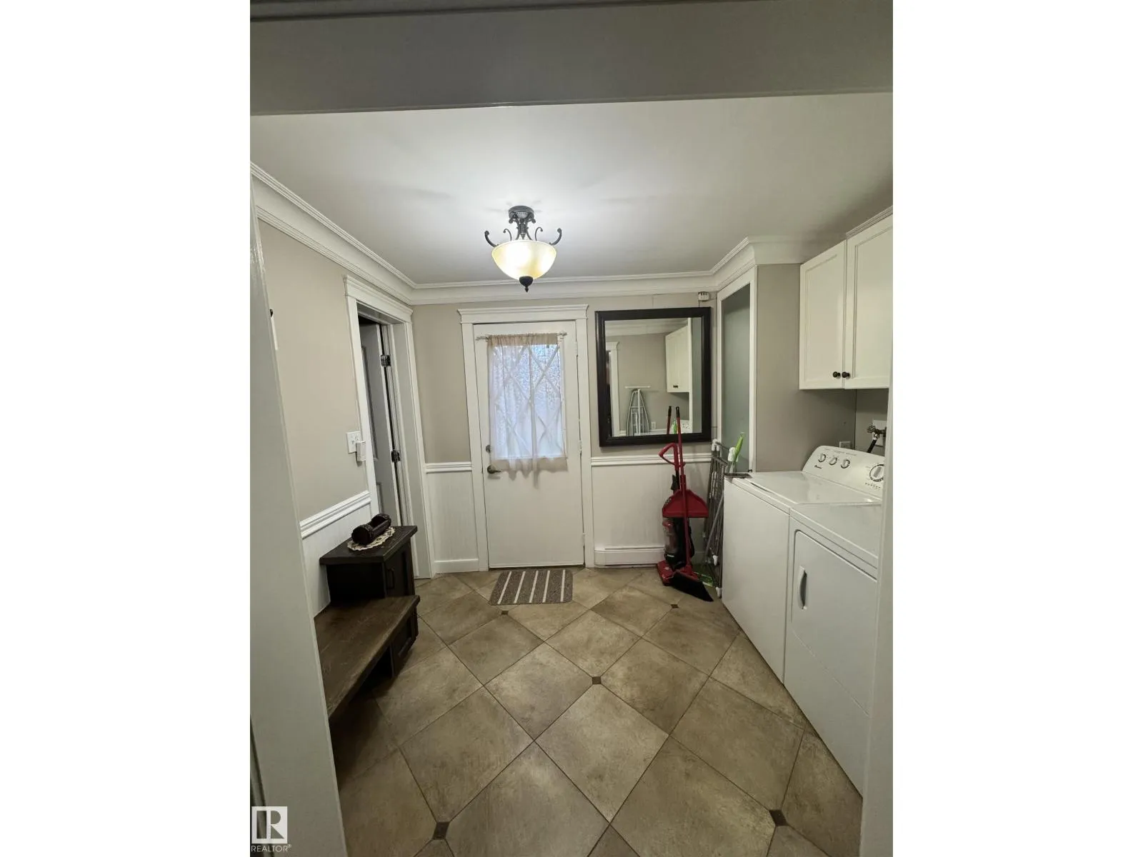 Cozy bungalow in Westlock surrounded by mature evergreens and a welcoming front flower bed. Step inside to your vision of a custom tiny home with a warm living and dining area featuring a tile-surround fireplace. The kitchen boasts custom cabinetry, stainless steel appliances, and ceramic tile, creating a thoughtful, efficient layout. Built-in cabinetry flows throughout the home, from the fireplace to the kitchen, laundry, bedroom, and bath, blending function with design. The primary bedroom includes built-in wardrobes, end tables, pot lights, and a ceiling fan for comfort. The laundry room offers a bench and more cabinets for back entry storage. The four-piece bath features a tiled shower and a heat lamp. Outside, enjoy a large backyard with trees, a storage shed, and a walking path wrapping the home, ideal for relaxing, gardening, or future expansion of your small-town sanctuary. (id:27476)