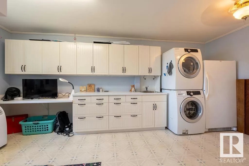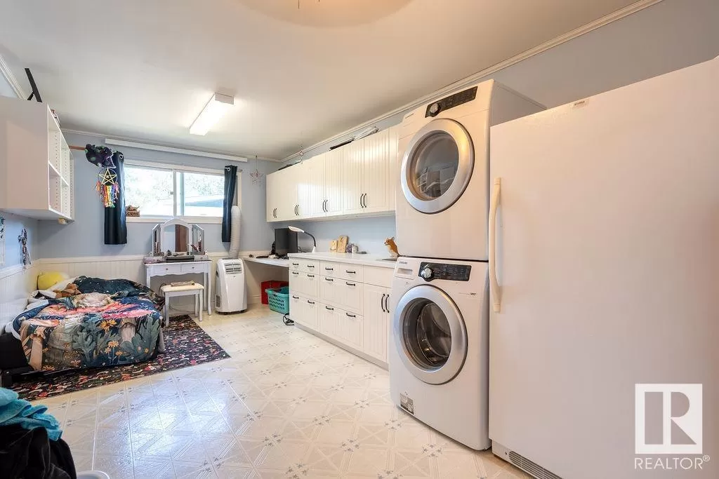 This spacious 1980 bi-level home offers a total of 2,292 sq ft of developed living space, perfectly designed for multi-generational living or potential mortgage assistance. A welcoming foyer provides access to both levels, each fully equipped with its own kitchen, laundry, and comfortable living areas. The main floor features a generously sized laundry/mudroom/craft roomâthoughtfully upgraded over the years to blend function with charm. The lower level mirrors the main floor layout and includes two bedrooms, providing ample space for extended family or guests. Situated on an oversized lot that backs onto peaceful countryside, this property is also within walking distance to Hole 5 at Montgomery Glen Golf Course. Outside, you'll find not only a single oversized front garage, but also a massive double detached garage in the backâheated, insulated, and ideal for hobbies, storage, or workspace. A rare opportunity with flexibility, space, and unbeatable location. What an Opportunity! (id:27476)