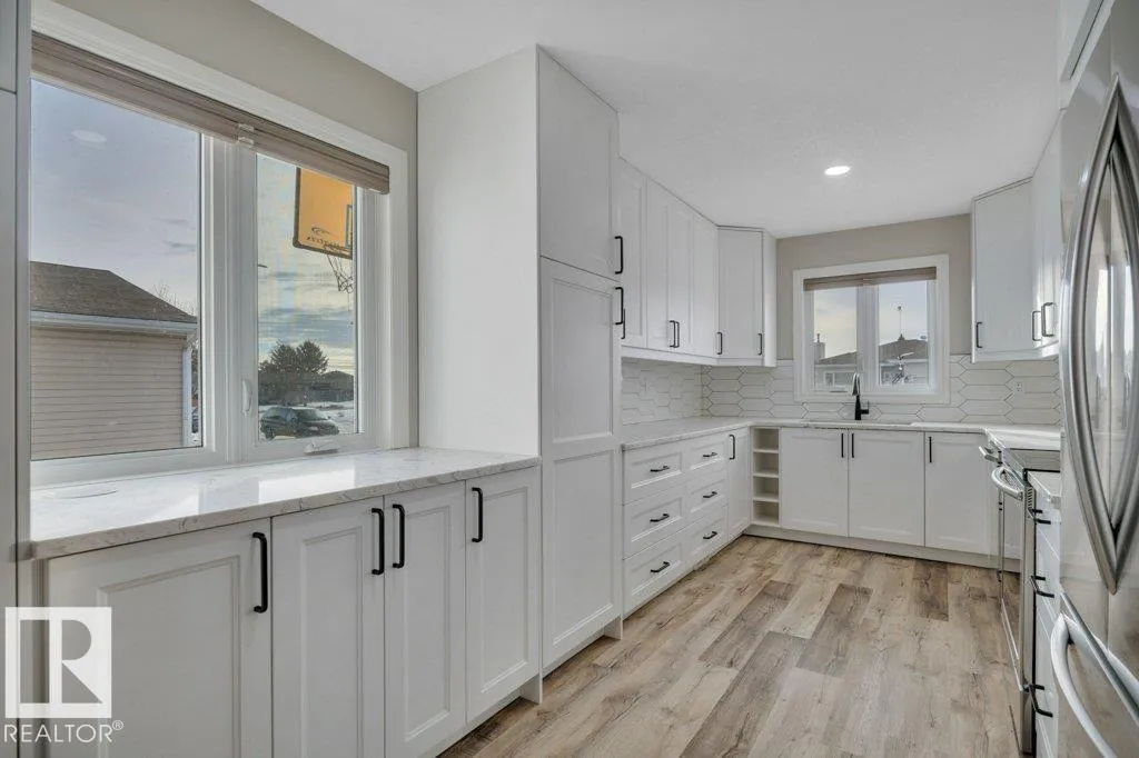 Renovated bungalow located on a quiet street close to Clear Vista School, the high school, arena, swimming pool, curling rink and all other amenities. Open concept floor plan with extensive renovations including flooring, a complete kitchen overhaul, bathrooms, closet organizers, etc. The main floor features a large living room with bright windows that allow plenty of natural sunlight from the South. There is also a spacious dining room perfect for family events. 2 bedrooms on the main floor, including the primary with a gorgeous ensuite. The basement is fully finished and renovated. 2 additional bedrooms, a third bathroom, and a massive rec room, that could easily be split up if another bedroom were required. Double attached garage measuring 24x24 to fit your truck or large SUV with ease. Huge fenced yard with plenty of space for the kids to play and a covered fire pit area. (id:27476)