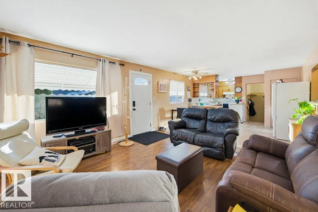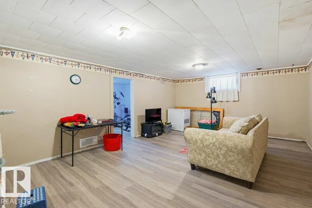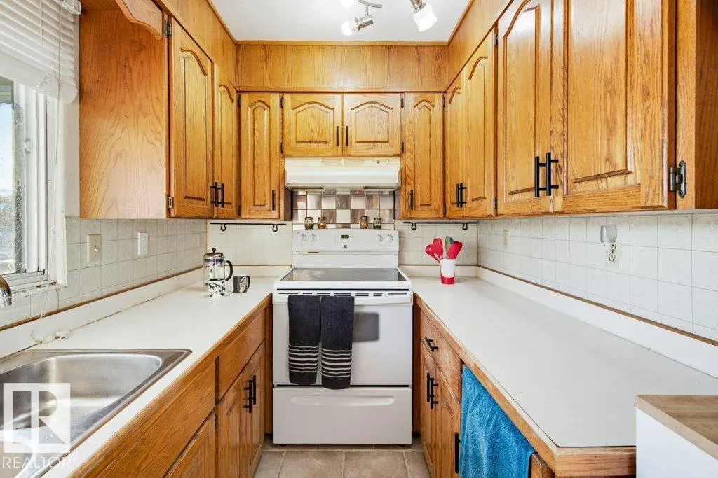 MASSIVE YARD! RV PARKING! A/C! GREAT LOCATION! This 941 sq ft 3 bed + den, 1.5 bath home is cute as a button and only blocks away from 3 different schools. New A/C, garage door, landscaping, with newer paint, trim, vinyl siding, shingles, bathroom updates and more! Classic open concept main floor unites the living & dining room w/ ample natural light. U shaped kitchen w/ oak cabinetry & pantry, black handles, & tile flooring. 2 large bedrooms on the main floor / 4 pce bath & linen storage. The basement is fully finished, with tons of space for your growing family. Large rec room is the ideal play space for the kids, or perfect for watching the big game together with friends! 3rd bedroom, den / storage room, 2 pce bath, & mechanical room. Outside brings a single garage for the car, RV parking on the driveway or backyard through alley access, and a terrific yard for your garden, outdoor rink, or summer bonfires. A terrific home, don't miss it! (id:27476)