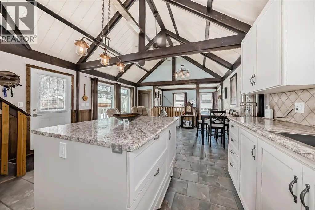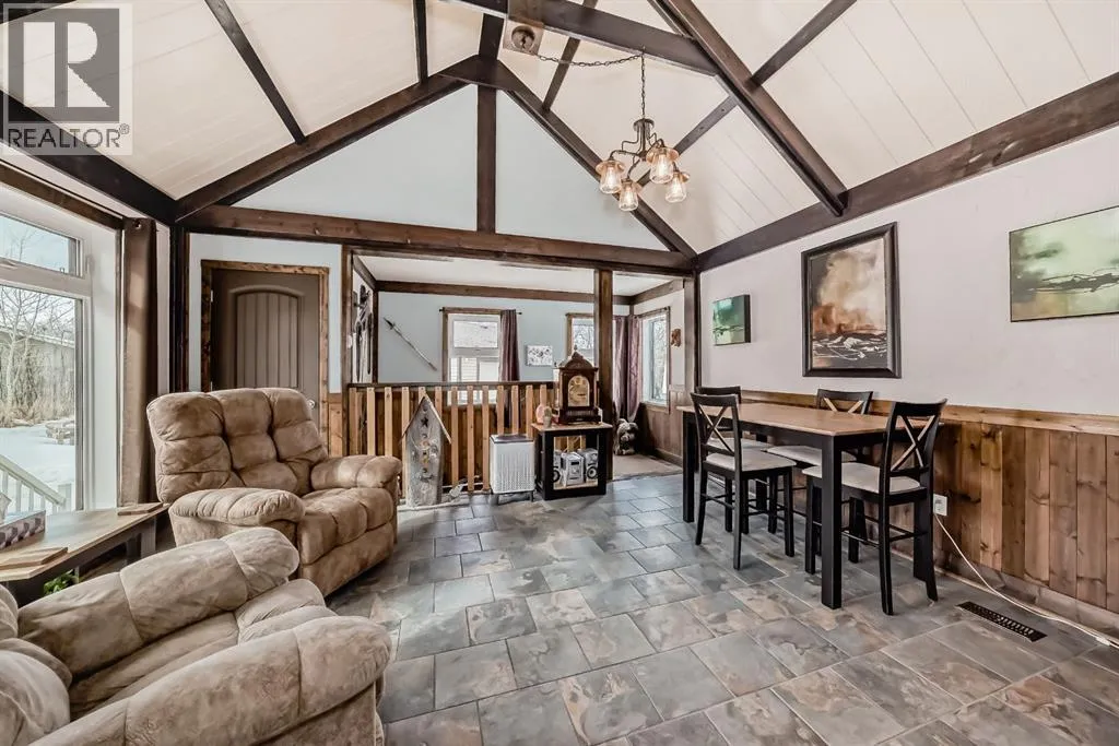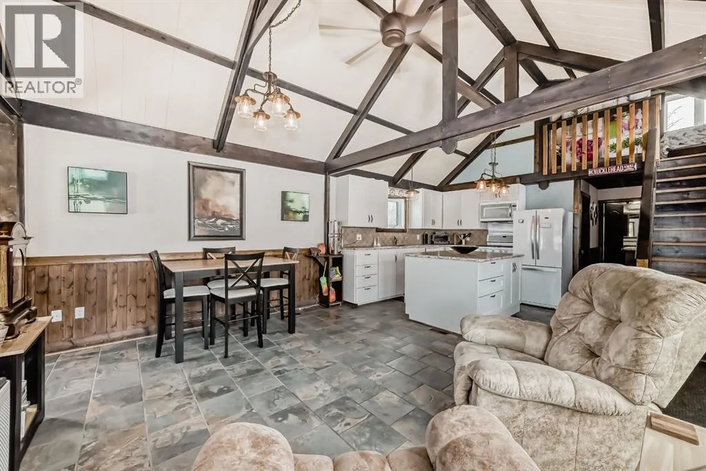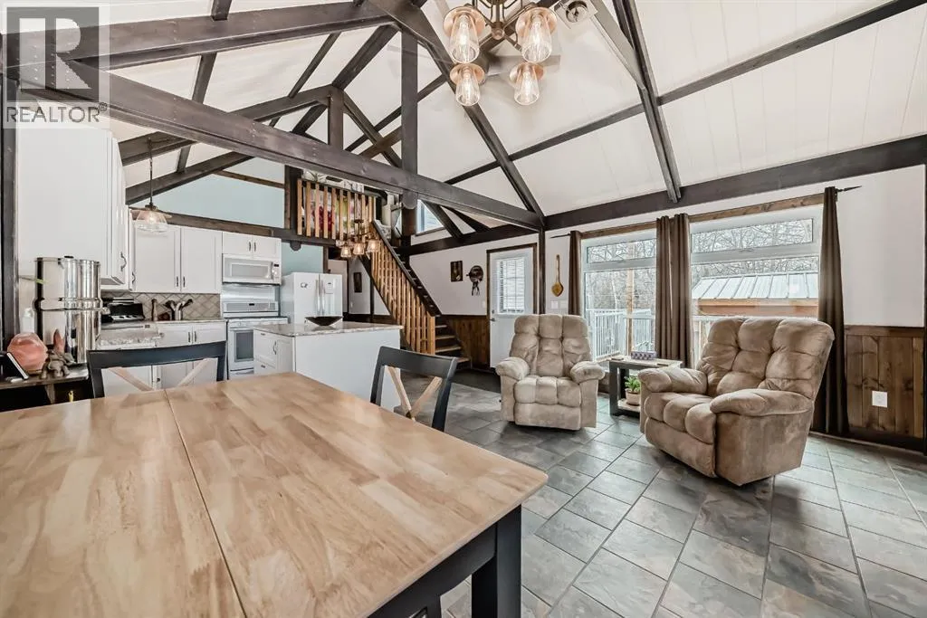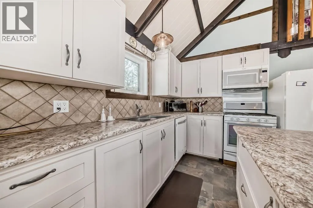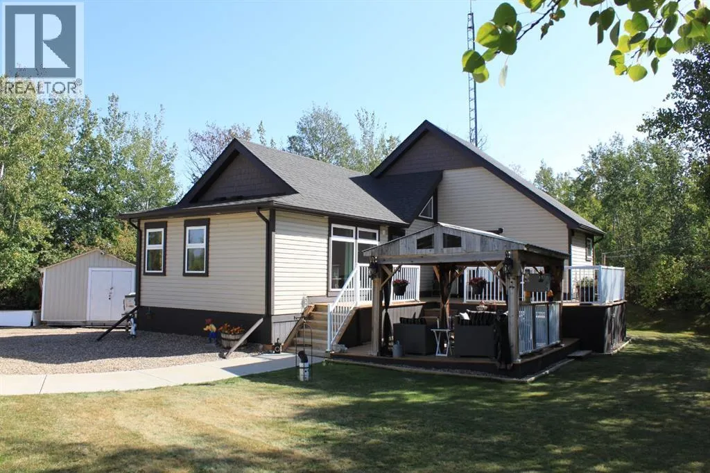 Welcome to your own private getaway in the Summer Village of White Sands! Tucked away on a quiet cul-de-sac, just a short walk to the beach, this cozy year-round home- complete with triple pane windows and wrapped in additional R7 enerfoil- is the perfect spot for lake living, offering comfort and convenience all year long.As you pull up, youâll immediately notice the charm of this property. The yard, surrounded by mature trees, gives you plenty of privacy and space to relax. Thereâs plenty of parking, and extra storage sheds for all your beach gear and outdoor equipment.Inside, the main floor greets you with vaulted ceilings that make the space feel bright and open. Youâll find two cozy bedrooms and a 3-piece bathroom. The kitchen is well laid out and flows into the dining area, where you can enjoy views of the peaceful surroundings.Upstairs, is the spacious primary bedroom. It could easily be turned into a tranquil retreat, a home office, or a creative space. The choice is yours!The basement has 9-foot ceilings and offers even more space. Thereâs a fourth bedroom, a 2-piece bathroom, and a storage room. The large utility/laundry room gives you lots of room for everyday needs, and thereâs space for family or guests to feel right at home.The oversized, heated double garage is a bonusâgreat for storing your vehicles, plus it has a bathroom, a storage room, and a workbench with cabinets for all your projects and hobbies.Step outside, and youâll find a covered gazebo, perfect for relaxing or dining outdoors while staying sheltered from the weather. Whether youâre grilling with friends or curling up with a good book, this space is made for enjoying life.Life in White Sands feels like a vacation every day. With just a 20-minute drive to Stettler and only 2 hours from both Calgary and Edmonton, this home offers the best of both peace and convenience. Donât miss out on this incredible opportunityâschedule your showing today! (id:27476)