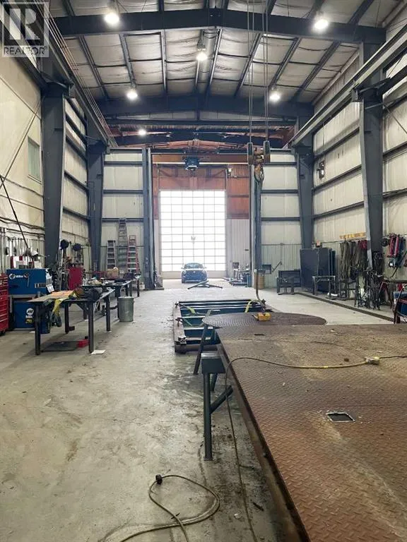 The 5600 sq ft shop is equipped with 2 overhead 10 ton cranes with a lift height to 25ft. The overhead door measure is 24ft high. The shop is wired with a 600 amp/ 600 volt.- 3 phase power service and a good ventilation system and LED lighting. The main floor office area consists of a reception area, 5 offices and washrooms. The second floor offers a boardroom ,10 offices , washroom , kitchen and copy room. The 1.48 acre yard is fenced and graveled and has additional heated and cold storage buildings. There are two separate titled lots measuring 2.5 acres available if more space is needed. (id:27476)