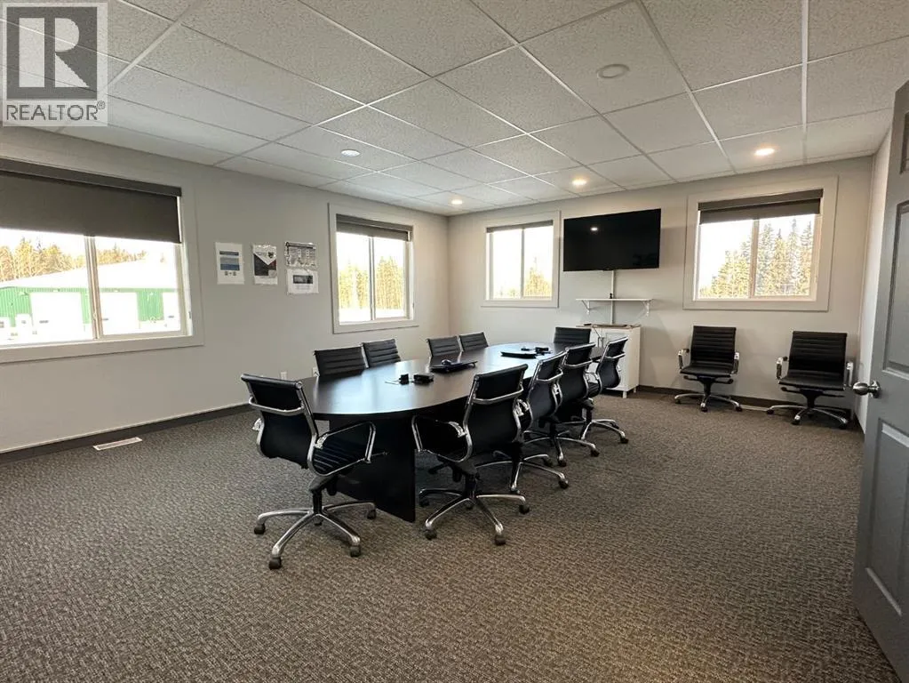 Industrial Facility in Whitecourtâs Newest Industrial Subdivision. Situated in a prime location in Whitecourtâs industrial hill subdivision, this 14,440(+/- ) sq. ft. industrial building offers exceptional functionality on 5.8+ acres of fenced, graveled, and compacted yard space with additional paved parking.The main level features 1,900 sq. ft. of high-quality office and boardroom space, complemented by an additional 1,500 sq. ft. on the second floor. The 11,000 sq. ft. shop is constructed with steel beams, fully insulated, and heated with radiant tube heaters, engineered make-up air units, and circulating fans for optimal climate control.Access is from the office with two man doors. The shop has ten overhead doors, each measuring 16' wide by 18' high, all powered and insulated. Additionally, a fabric quonset at the rear of the property is equipped with power.Utilities & Services: Water and sewer services are provided by the Town of Whitecourt.This property presents an outstanding opportunity for industrial operations seeking ample space, modern infrastructure, and a strategic location. (id:27476)