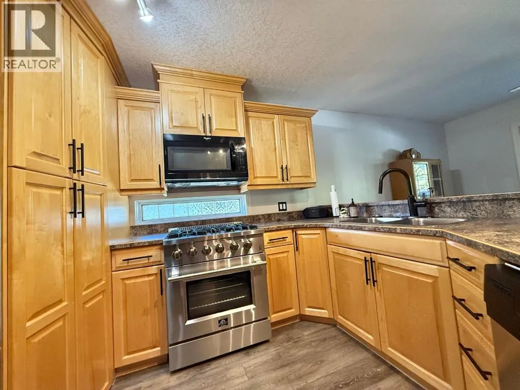 2004 executive bungalow situated in a very desirable neighborhood backing Graham Acres ball diamonds, close to parks, walking paths, schools, golf course, quadding and sled trails. 3 bedrooms on main floor all with built in closets. Master bedroom has walk thru closet and 3 piece en-suite with entry to a huge 28'x10' private deck for possible future hot tub access. Custom maple cabinetry thru out including in main floor laundry. Beautiful kitchen with pantry, peninsula bar, stainless steel appliances including a dishwasher. It opens up to a living room with tiled electric fireplace with custom shelving. The stairs lead to a partially developed basement with one large bedroom and 3 piece bathroom. This area has a wood stove and has excellent potential for a rec room or what ever your heart's desire. The stylish exterior is black and tan with rock accents. The front covered deck is great for morning coffee, or choose the rear deck which is large enough for gatherings or bbq's. The heated 26'x26' double car garage has lots of room including hot & cold water taps, and dog door access. The yard is perfectly landscaped with shrubs, perennials, mature trees, fire pit, garden area, rocks, and fence rear access. Included is a fantastic 12'x24' shed with roll top door large enough for big toys. Shingles were replaced in 2020, vinyl flooring was installed thru out in 2023, newer hot water tank and microwave, brand new gas/electric stove . 2025 property taxes were $3787.49. This house has it all, waiting for your personal touch. Some furniture and outside accessories can be negotiated with sale. (id:27476)