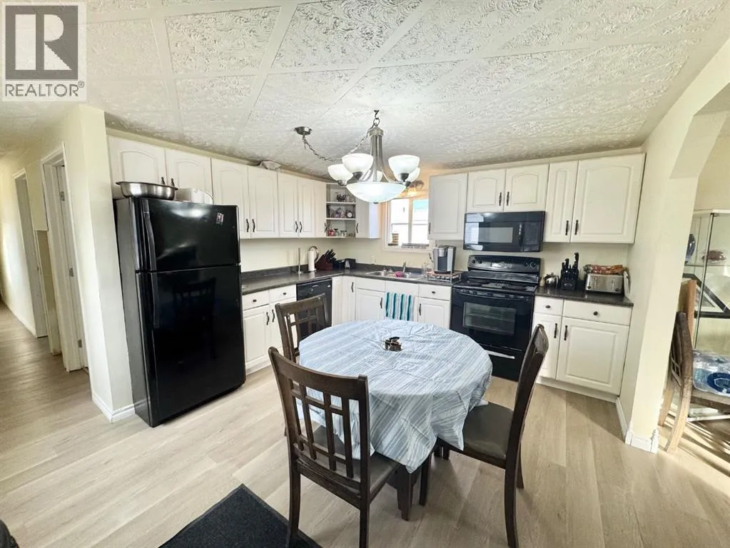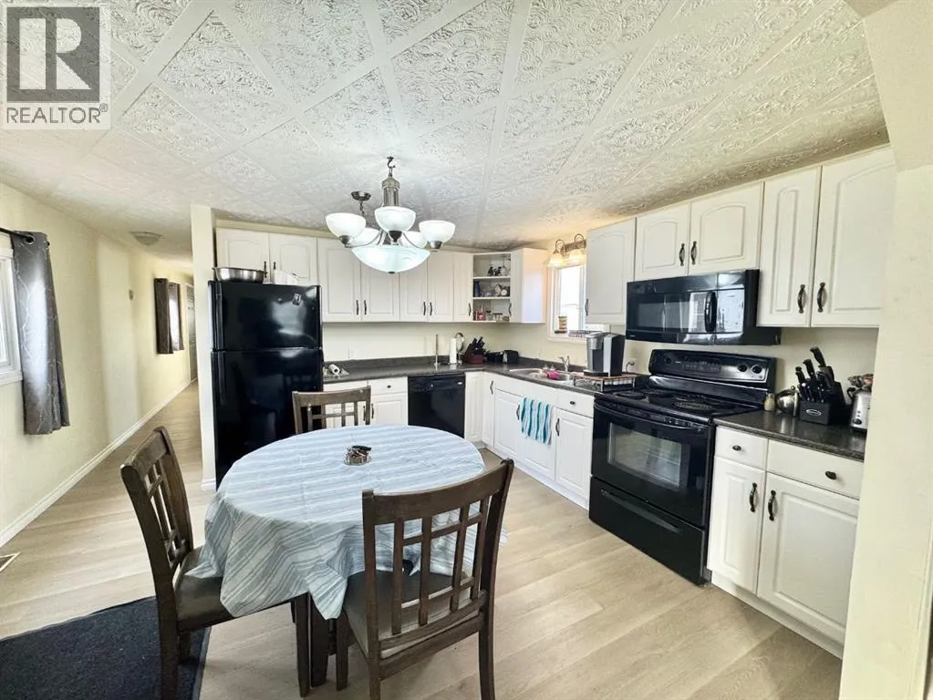 Charming 2 bedroom mobile in Evergreen Trailer Court. As you enter you are welcomed by a bright kitchen with eating area. There is plenty of white cabinetry and newer black appliances which are included. The living room is spacious and flows right off the kitchen. Down the hall you will find the primary bedroom steps away from the 4 pc bathroom, laundry room with extra storage, and a spare bedroom. A bonus is the 8x8 mudroom addition that creates extra room for a freezer or more storage. Outside you'll find a large yard, with tarp shed and 8x10 shed as well as the 9x28' deck to enjoy. With lots of updates this home is ready for you. Updates include drywall, plumbing, electrical, flooring, hot water tank, windows just to name a few. (id:27476)
