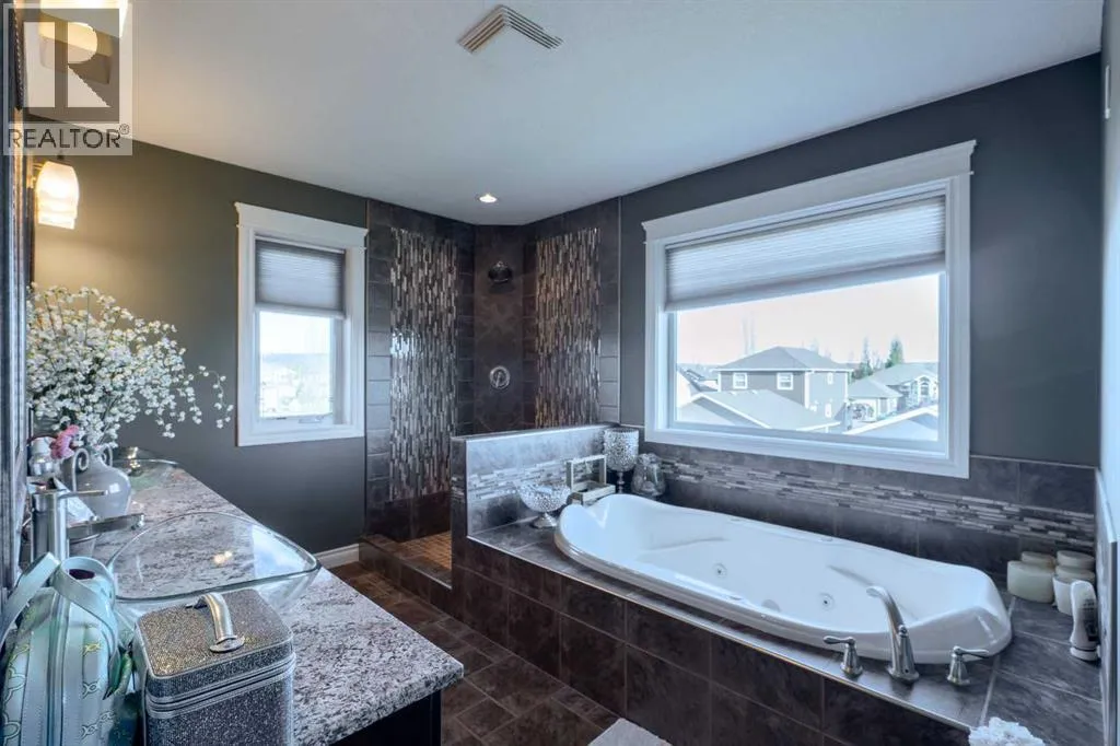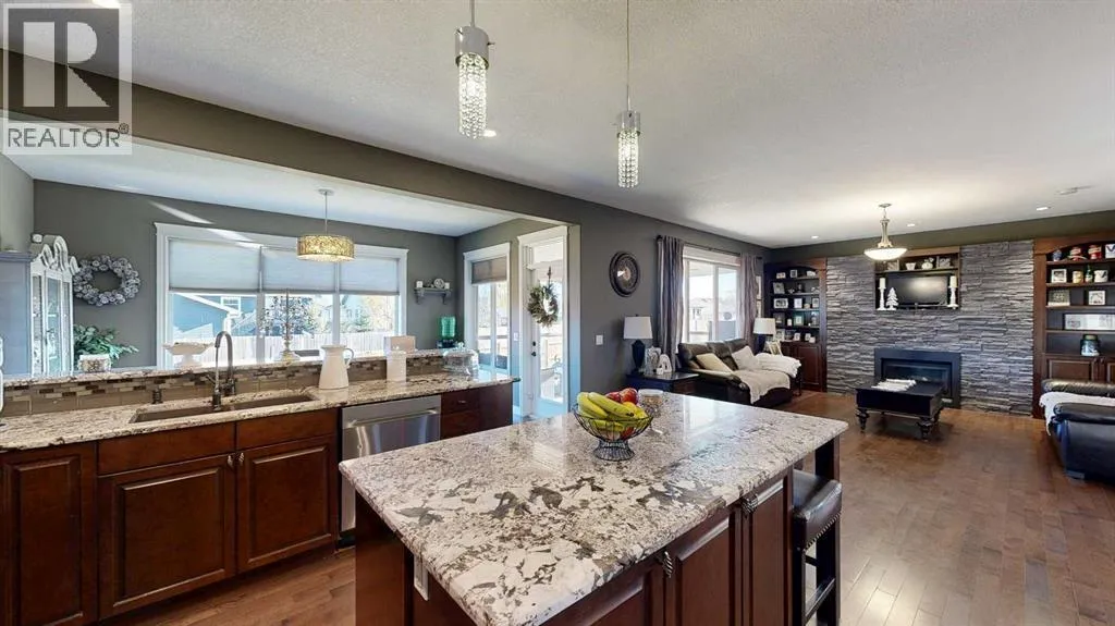 Luxury, Comfort, and StyleâAll in One Exceptional Home!This stunning 5-bedroom, 4-bathroom home offers over 2,500 sq. ft. of beautifully designed living space plus a fully finished 1,165 sq. ft. basement, combining elegance with everyday functionality.Step inside to a grand foyer that sets the tone for the quality and craftsmanship throughout. The open-concept main floor features a gorgeous kitchen complete with a double wall oven, custom walk-in pantry with built-in organizers, large island, and abundant counter spaceâperfect for entertaining and family gatherings.Off the garage, a spacious mudroom with a 2-piece bath provides a convenient and practical secondary entry.Upstairs, a bright and airy bonus room offers extra living space, along with the laundry room for added convenience. The primary suite is a true retreat, showcasing a spa-like ensuite and a massive walk-in closet with custom organization.The fully developed basement is designed for relaxation and entertainment, featuring in-floor heating, a large rec room, and a wet barâthe perfect space for movie nights or hosting friends.Additional highlights include central air conditioning, high-end finishes throughout, and thoughtful design at every turn.Located in a sought-after neighbourhood, this property backs onto a paved walking trail that leads to a large park and playground, and is close to schools, shopping, and all amenities.This home truly has it allâluxury, comfort, and an unbeatable location. (id:27476)