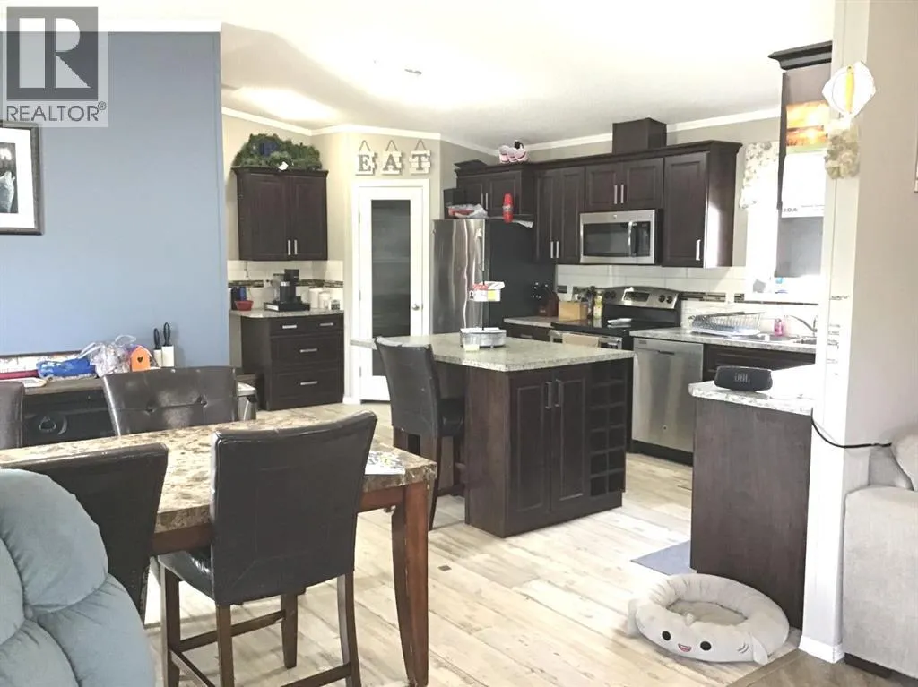 *For Sale: 2016 Triple M Mobile Home in River Valley Estates**Discover this well maintained 2016 Triple M mobile home, measuring 20 x 76 and offering 1,520 sq. ft. of modern living space. This home features an open concept design, perfect for entertaining, with 4 spacious bedrooms and 2 full 4-piece bathrooms.The kitchen is a chef's dream, boasting plenty of cabinets, an island, & a large pantry for ample storage. Each bedroom is generously sized, complete with good closet space. The primary suite is a true retreat, featuring a luxurious 4-piece en-suite with a relaxing Jacuzzi tub and a large walk-in closet.The spacious living room is great for family & entertaining. The open concept plan makes this home look and feels much larger. Lots of natural light with large windows and tall ceilings. The home is equipped with stylish vinyl plank flooring as well as Lino âno carpet here! The contemporary color palette and abundant natural light from the large windows enhance the inviting atmosphere. Situated on a spacious lot with a fenced yard, this property is located in one of Whitecourtâs most desirable parks, offering both privacy and community. The spacious lot is fenced for children and animals. This property has lots to offer! Donât miss out on this exceptional home with great storage solutions & modern amenities throughout. (LOTS OF EXTRA FLOORING TO STAY WITH THE HOME ) LOT RENT OF $620.00 PER MONTH INCLUDES WATER. 24 HOURS NOTICE FOR SHOWINGS IS REQUIRED. (id:27476)