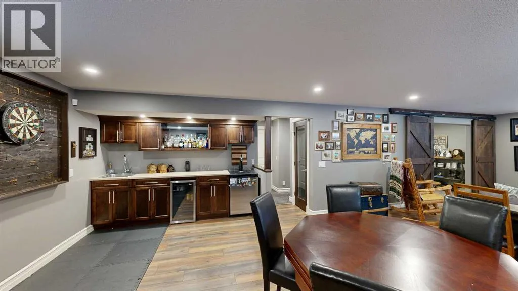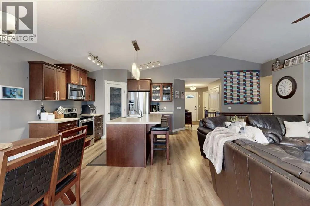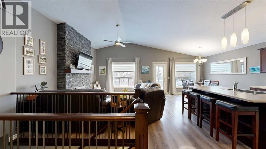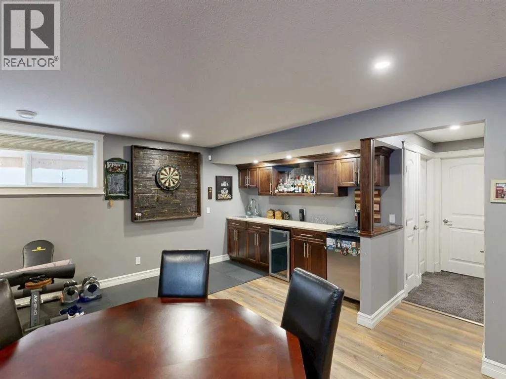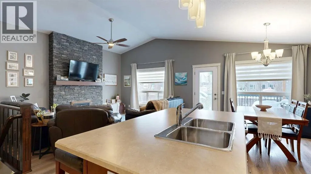 Lovely 2014-built bungalow offering 4 bedrooms and 3 bathrooms, perfect for families or first-time buyers. The open-concept main floor features vaulted ceilings, a cozy fireplace, and a bright, inviting living space. The kitchen is well designed with an island and pantry, making it ideal for everyday living and entertaining. The fully developed basement offers a spacious family/rec room complete with a built-in wet bar and wine rack, plus a charming kidsâ hideaway tucked under the stairs, a fun and unique touch! Comfort is a priority with central air conditioning and a heated garage. Step outside to a private backyard retreat surrounded by mature trees, creating a peaceful summer oasis with plenty of space for outdoor entertaining and relaxing. Situated in an excellent location close to schools, parks, playgrounds, ball diamonds, and the golf course, this home truly checks all the boxes. An excellent starter or family home in a fantastic neighbourhood. (id:27476)
