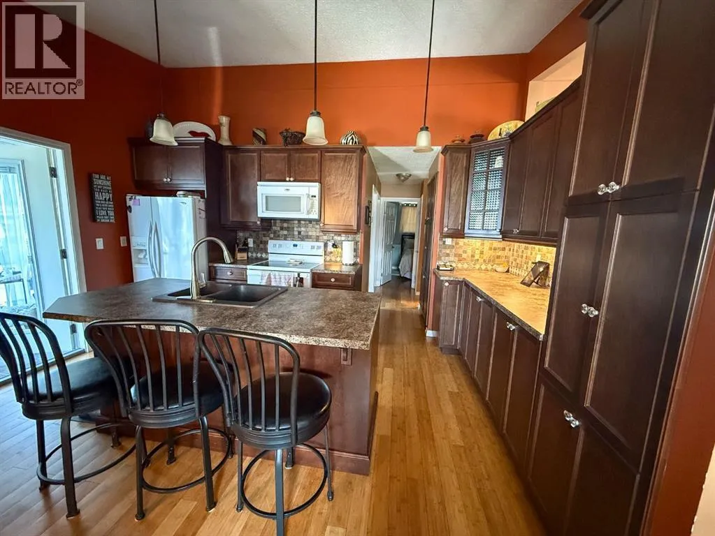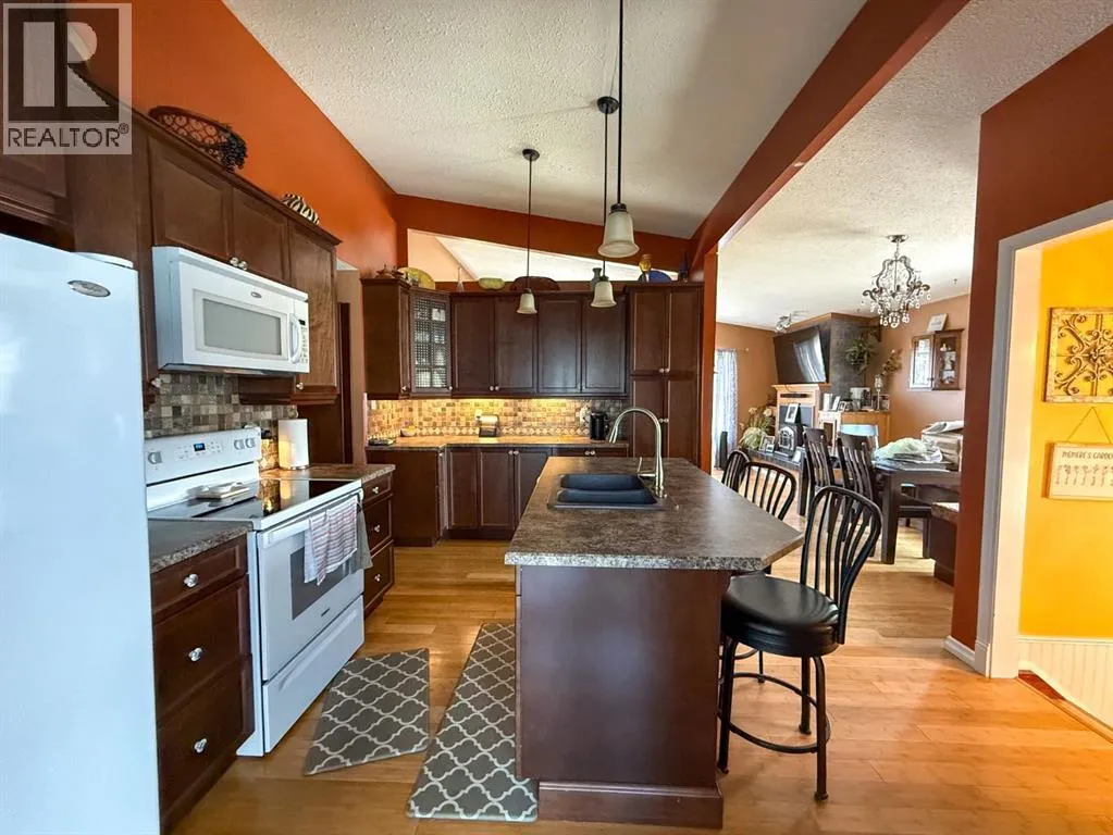 Rare opportunity to own a home on a highly desirable street with limited market availability. You are Central to the hospital, Allan & Jean Millar Centre, 2 elementary schools & the public high school. This beautiful property sits on a spacious .40-acre lot, offering ample yard space perfect for outdoor activities with the kids, gardening, or simply enjoying the tranquility. More than enough space to build another garage or structure. The expansive backyard features RV parking, back alley access, a large shed, and a 12x24 detached garageâideal for storage, hobbies, or additional parking.Key updates include shingles on the house and garage (2019), a furnace(2015), and all new windows installed around 2013. The siding, fascia & eaves have been fully replaced, enhancing curb appeal and durability. The stunning kitchen was renovated in 2016 with elegant dark cabinets, beautifully executed with additional storage, complemented by new bamboo hardwood flooring throughout the main level.Enjoy cozy winter evenings by the wood stove insert, installed 12 years ago. The sunroom, added in 2013, provides a bright, inviting space to relax year round! A space to unwind! The basement offers a versatile layout with a 3-piece bathroom, a bedroom, and a spacious open recreational areaâperfect for family gatherings or a space to watch the game!Donât miss out on this exceptional property in a sought-after location, it checks all the boxes! (id:27476)