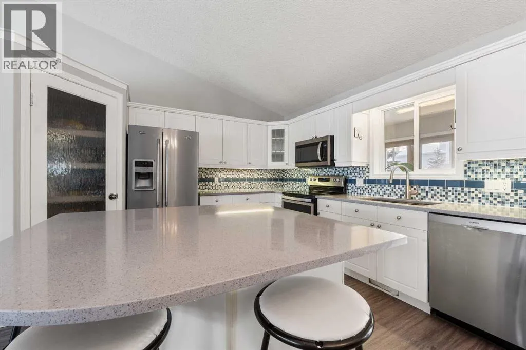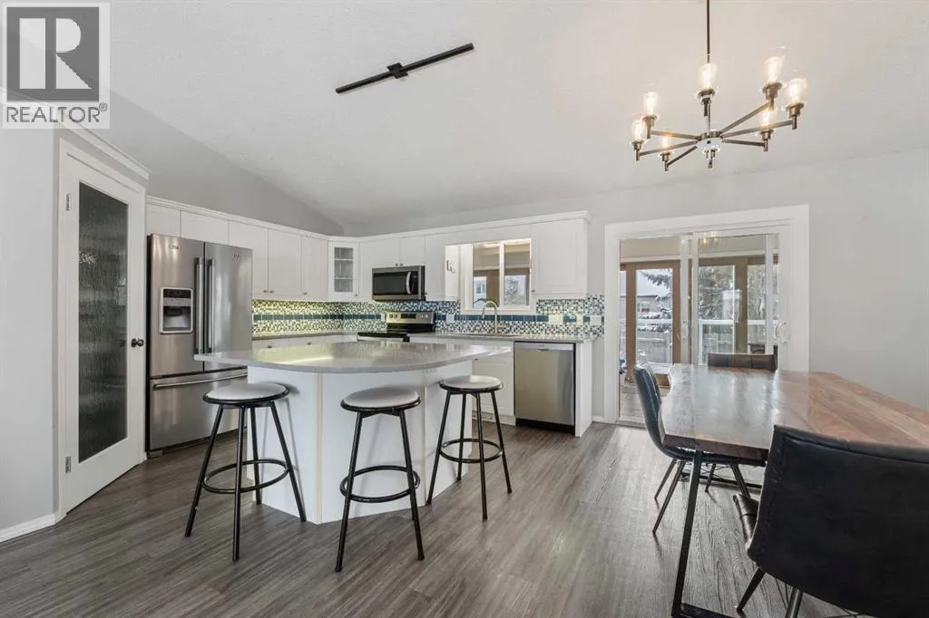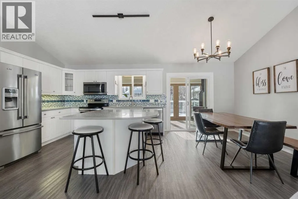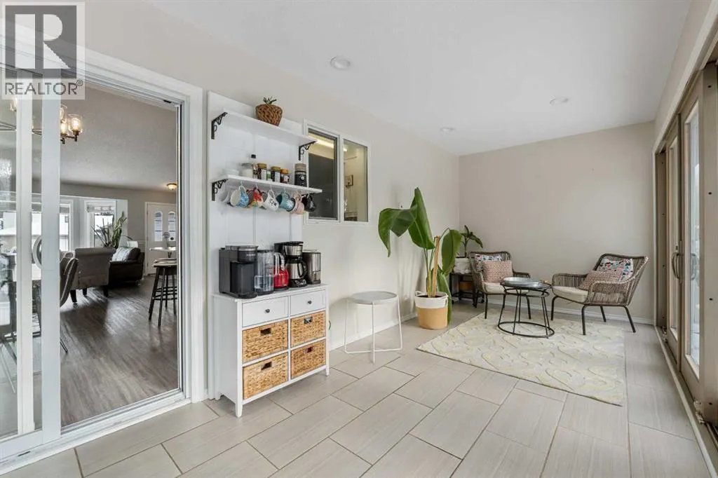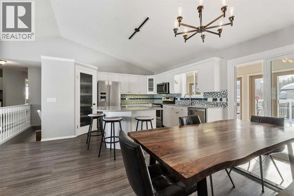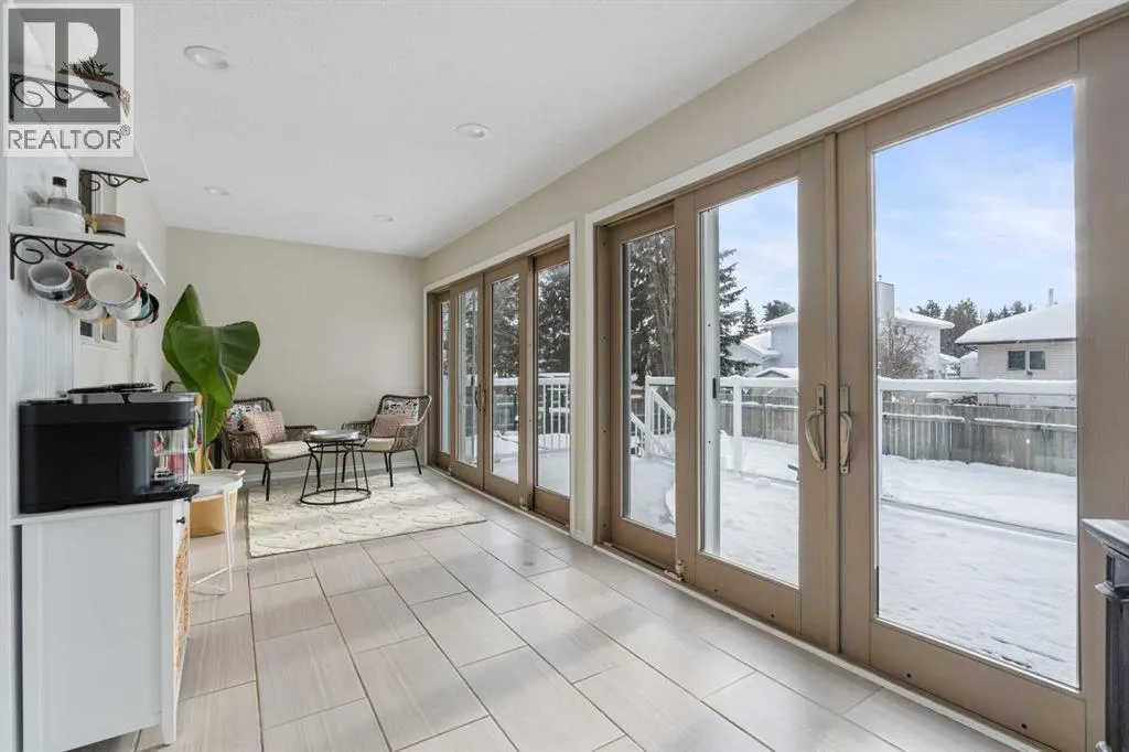 This well-cared-for bungalow is located in a sought-after hilltop location in town. Featuring an open-concept living area and high-end renovated upgrades, this five-bedroom, three-bathroom residence is built for comfort.The home features an open kitchen and living area that serves as a bright and welcoming hub. The kitchen is equipped with an island, a tiled backsplash, a corner pantry, and under-cabinet lighting. The standout feature of this property is the upgraded four-season sunroom addition. This bright sanctuary is designed for year-round enjoyment, featuring a cozy corner gas stove and the luxury of electric radiant in-floor heat. Two beautiful full sliding doors provide a transition to the private backyard, opening onto a premium composite deck with glass railings and a private hot tub. The layout provides a convenient main-floor laundry room and storage solutions throughout, including two spacious walk-in closets. Significant investments have been made in the systems, including the installation of a new high-efficiency furnace in 2025 which has air conditioning, plus a newer on demand boiler to heat the basement in floor heat and garage. Space is a priority throughout, with three bedrooms on the main floor and two large bedrooms in the basement. The property is completed by a front-attached 24'x24' heated garage, providing room for vehicles and a comfortable workspace. (id:27476)