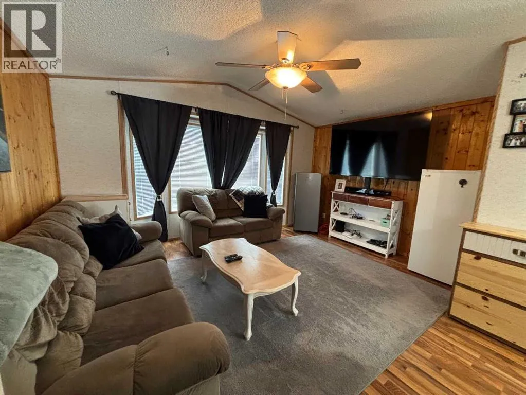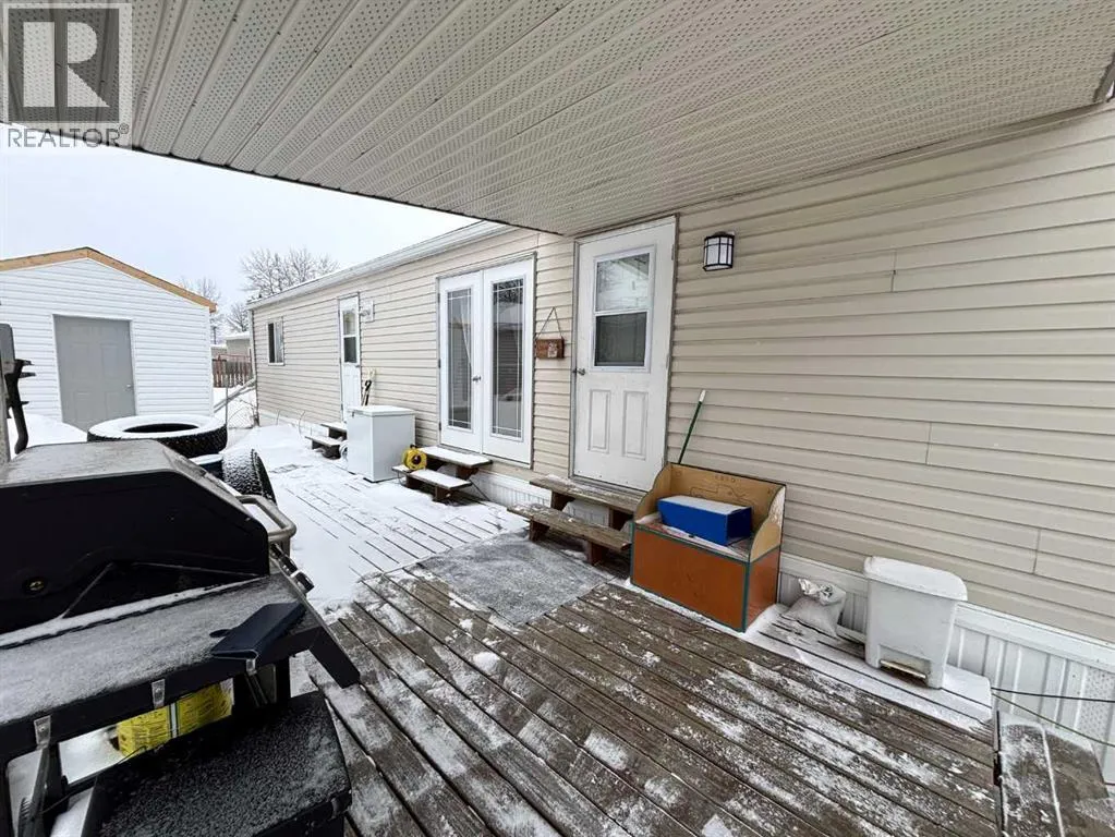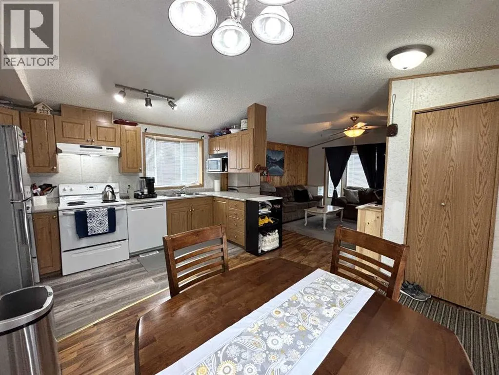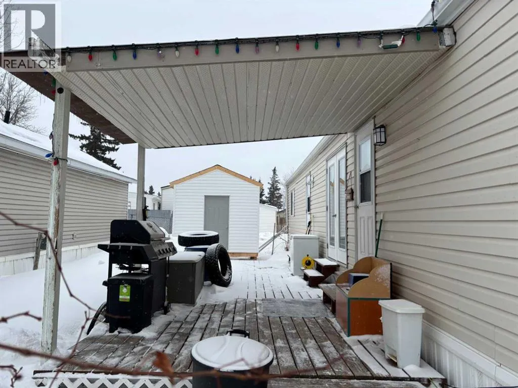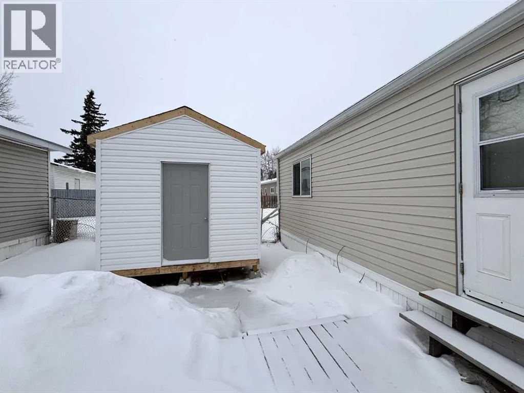 "LITTLE GEM" best describes this 2006 16' wide mobile home. This property offers two bedrooms with ceiling fans , a four-piece bathroom, a large kitchen and dining area with patio doors leading to a covered deck, and a cozy living room featuring pine accent walls. This home is bright, clean, and shows clear pride of ownership. It is perfect for a young couple starting out, seniors, or working professionals looking for low-maintenance, cost efficient, and affordable living space that is often cheaper than renting. Key features and recent upgrades include: New hot water tank (2024)., Whirlpool Washer & Dryer (2023), Stain less steel fridge (2024), New flooring and paint , new 8 x 10 Shed in (2025). Fully fenced yard with a large partly covered deck. The home comes complete with all appliances and window coverings. (id:27476)