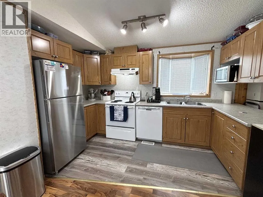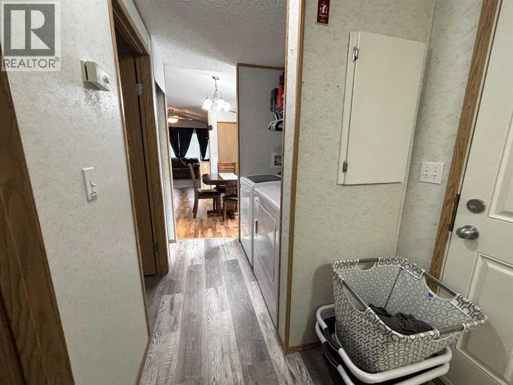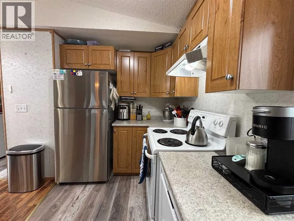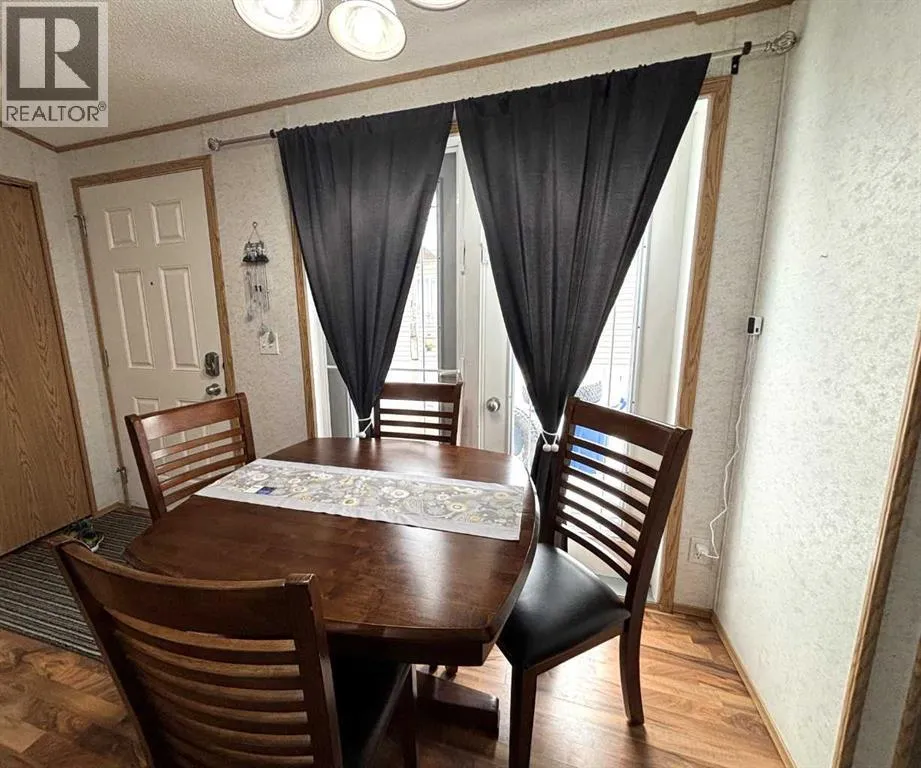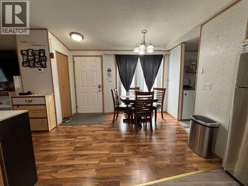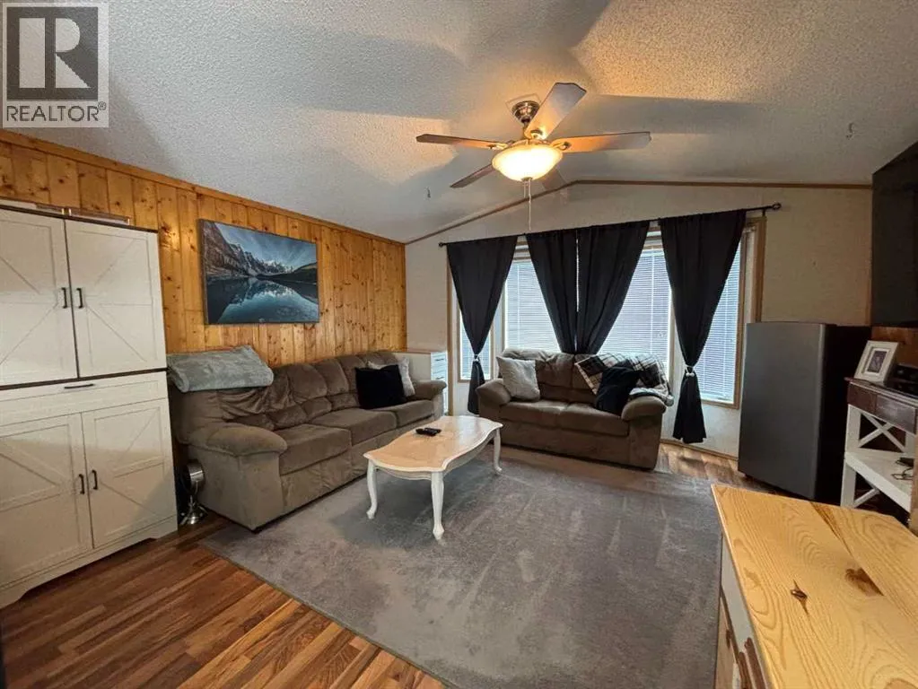 "LITTLE GEM" best describes this 2006 16' wide mobile home. This property offers two bedrooms with ceiling fans , a four-piece bathroom, a large kitchen and dining area with patio doors leading to a covered deck, and a cozy living room featuring pine accent walls. This home is bright, clean, and shows clear pride of ownership. It is perfect for a young couple starting out, seniors, or working professionals looking for low-maintenance, cost efficient, and affordable living space that is often cheaper than renting. Key features and recent upgrades include: New hot water tank (2024)., Whirlpool Washer & Dryer (2023), Stain less steel fridge (2024), New flooring and paint , new 8 x 10 Shed in (2025). Fully fenced yard with a large partly covered deck. The home comes complete with all appliances and window coverings. (id:27476)