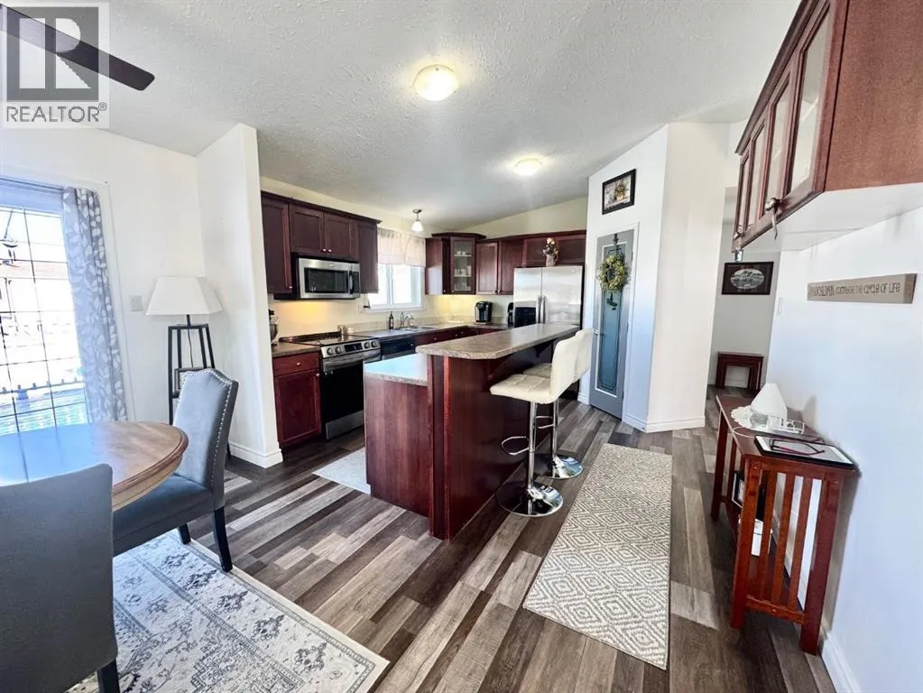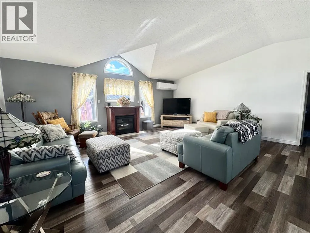 Welcome to this beautifully maintained 1,762 sq ft home, perfectly situated on a large cul-de-sac lot. Offering 3 spacious bedrooms and 2 full bathrooms, this property combines comfort, style, and functionality in an ideal setting. Step inside to an open, inviting living room filled with natural light and enhanced by vaulted ceilings and fresh paint. The home features new vinyl plank flooring, creating a modern and cohesive feel across every room. The large bedrooms provide plenty for family living or guests. The heart of the home is warm and welcoming, highlighted by a stunning gas fireplace, perfect for cozy evenings. The kitchen is equipped with a beautiful new stove, making it move-in ready for home cooks and entertainers alike. More significant recent updates include a new washer and dryer, hot water tank, new shingles, completely rebuilt furnace and the addition of air conditioning / heating wall unit for year-round comfort. Outdoor living is truly exceptional, with two expansive decks, one in the front and one in the back, both complete with charming gazebos. The fully fenced yard offers privacy and space for relaxation, entertaining, or family activities. The backyard backs onto mature trees with no neighbours behind, creating a peaceful, private setting. From the back deck, enjoy scenic views of the ski hill, adding a unique and picturesque touch to your everyday life. Meticulously cared for and thoughtfully updated, this home is a rare find in a desirable cul-de-sac location. (id:27476)