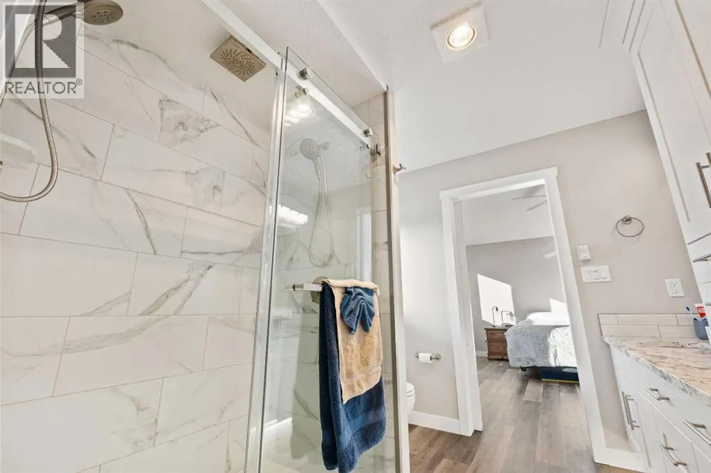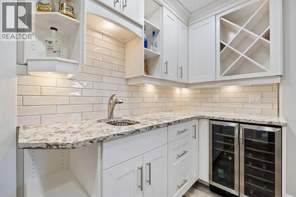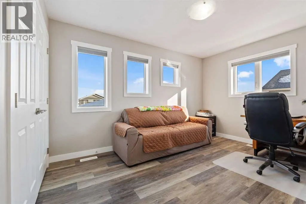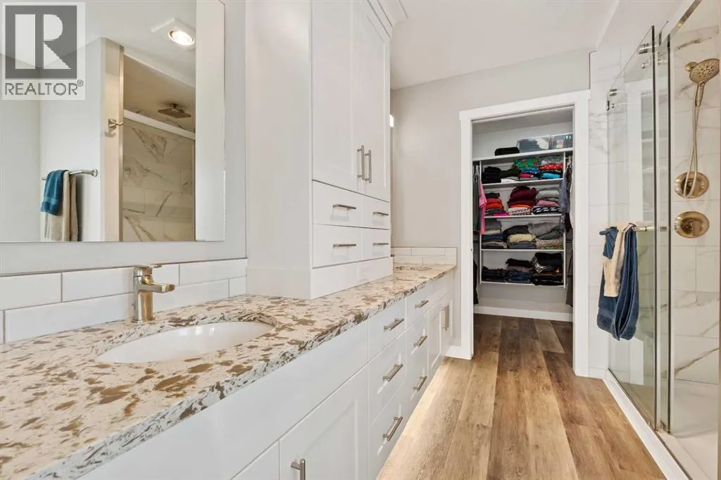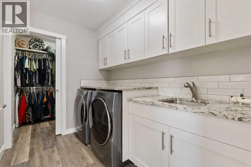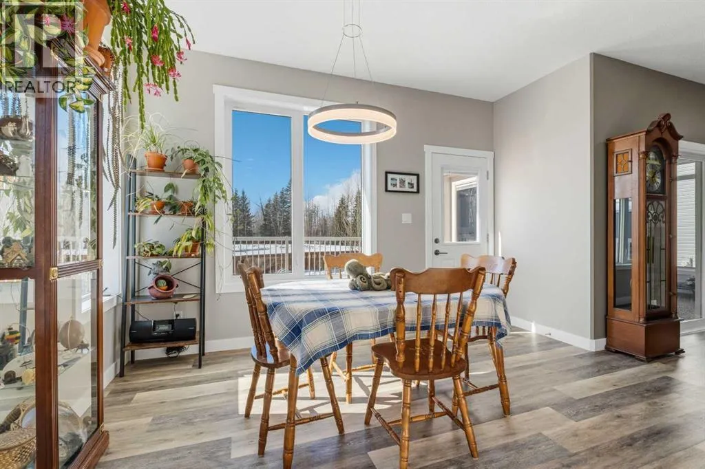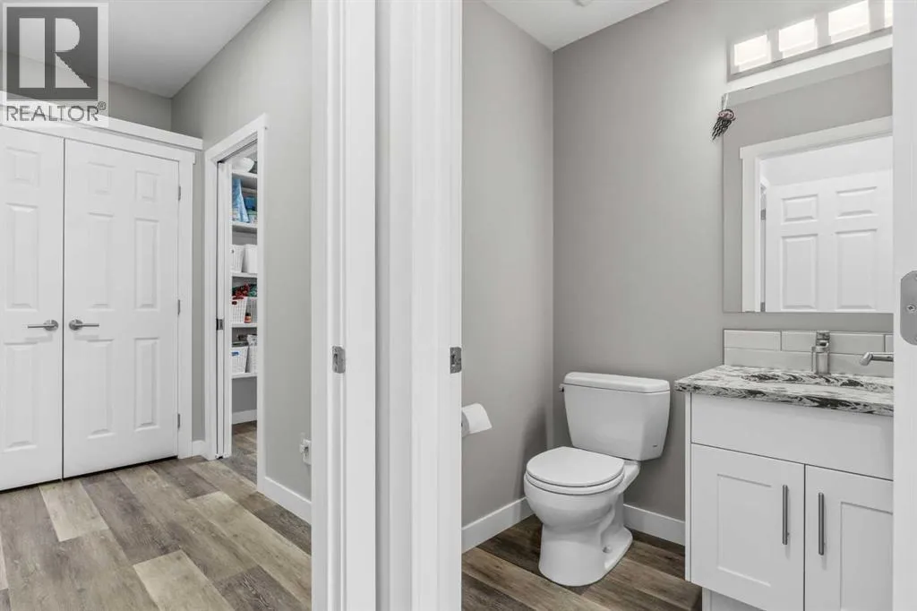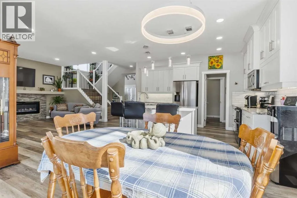 Custom home is situated in a quiet cul-de-sac backing onto green space, offering direct access to paved trails leading to the Athabasca River or Festival Park. The exterior features a wide aggregate driveway to a massive 1,068 sq. ft. triple-car garage with 11-foot ceilings, an overhead heater, hot and cold taps, a dedicated dog wash, EV charging, and a convenient drive-thru bay to the backyard. Inside, the main floor greets you with a soaring entryway looking up to the second level, 9-foot ceilings throughout, and a smart second entrance from the garage to hide clutter from guests. The gourmet kitchen is a standout with quartz countertops, a walk-through pantry, upgraded ceiling-height cabinets, a bar fridge, and an electric stove with a double oven, all centered around a large island that seats five (or more) comfortably. This space flows into a bright dining area with south and west-facing windows for evening sun, and a living room with an electric fireplace that opens to a fully enclosed, insulated 3-season room featuring a natural gas line and a commercial-grade hood fan for year-round indoor grilling. Upstairs, extra-wide stairs facilitate easy furniture movement and lead to three bedrooms and a convenient laundry room. The primary suite has soundproofing in the floor, wall, and door for total quiet, and windows overlooking your backyard. A 5-piece ensuite with two sinks, triple shower heads and a 15-foot walk-through closet that leads directly into the laundry room. The fully finished basement adds a fourth bedroom with a walk-in closet, a wet bar with a matching bar fridge, and a fully soundproofed theatre room with two hidden windows already installed for an easy conversion to a 5th bedroom if needed. The home also includes the convenience of a built-in central vacuum system with a quick-sweep plate in the kitchen for effortless cleanup, along with a large, finished storage area tucked under the stairs featuring matching flooring and trim. Every inch of thi s home is built for efficiency and comfort, featuring fire- and hail-resistant Hardie Board on an ICF block foundation, a dual-zone high-efficiency furnace for separate temperature control on each level, a 60-gallon hot water tank, and a Black Box electrical system that intelligently manages power between your EV charger and appliances. Hot and cold taps front and back outside are such little examples of the upgrades this home holds. This residence is a masterpiece! (id:27476)