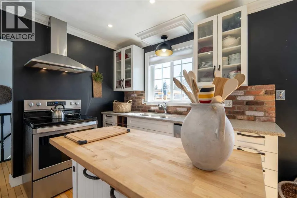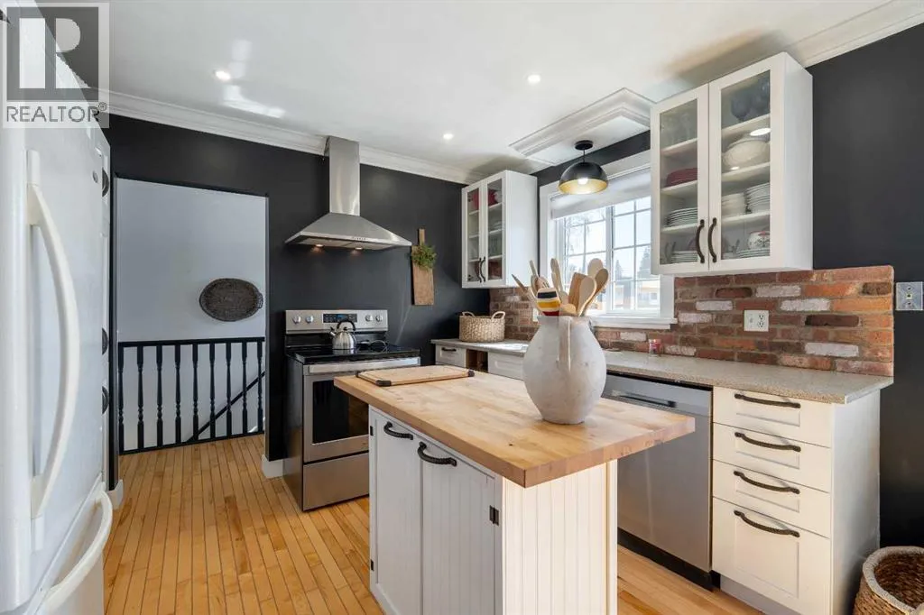 HILLTOP BUNGALOW- TRANSFORMED !!" This hilltop bungalow sits on a massive 11,250 sq.ft. lot in a quiet cul-de-sac. These long term owners of 23 years have totally renovated this charming bungalow which offers 4 bedrooms and will impress all who enter. Impressive list of improvements include all newer windows, newer shingles (10 years) , new kitchen cabinets in 2019, quartz countertops, newer hardwood floors in the living room, newer primary bedroom ensuite with walk-in shower, redone main bathroom, all new trim and interior doors, all new light fixtures, new carpet downstairs, and new exterior front dormers and cobblestone facing. The enormous lot has a new impressive fence, large 2-level back deck, front driveway and rear alley access with RV parking and room for your garage. This lot has tons of perennials and an English garden. This lovely bungalow has tons of country charm offering a brick feature wall in the dining room, tons of natural light with all the large windows and all the appliances are included with this package. Pride of ownership is most evident with these long term owners . Excellent location in a quiet hilltop neighborhood , tucked away in a cul-de-sac !!! (id:27476)