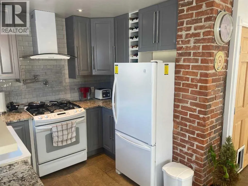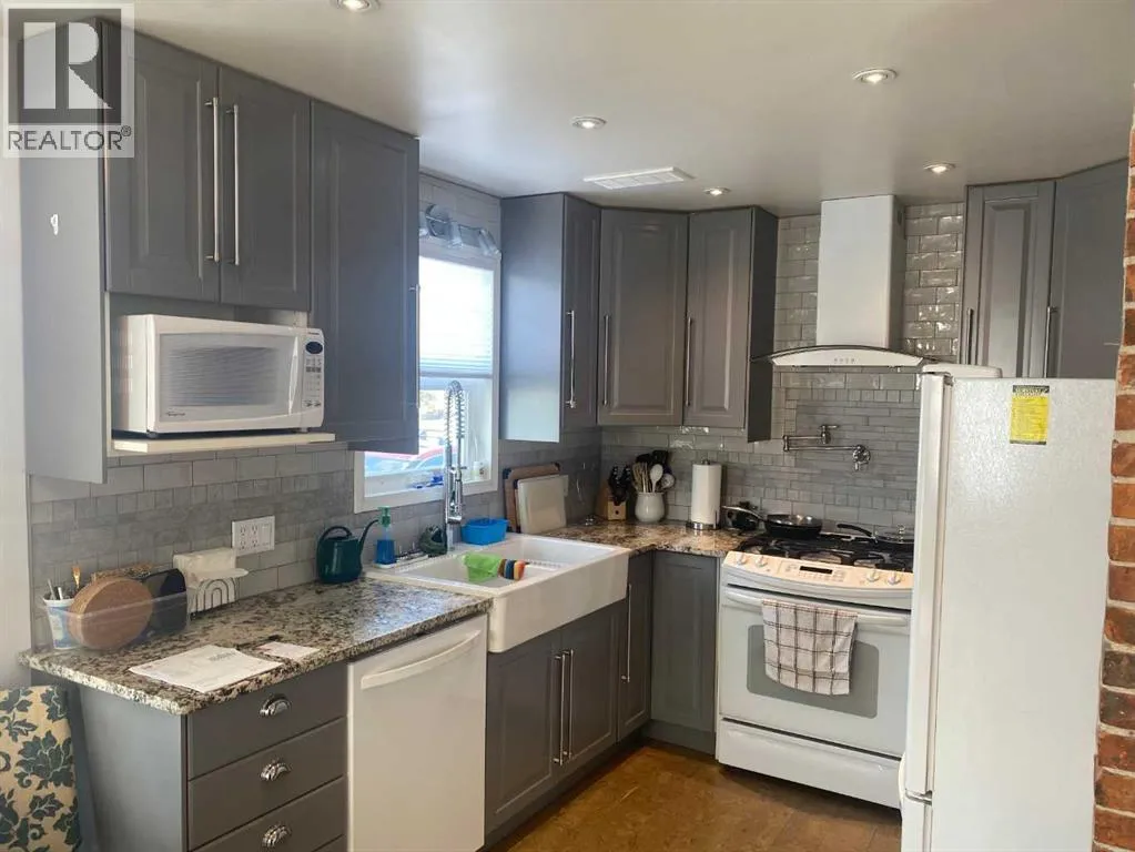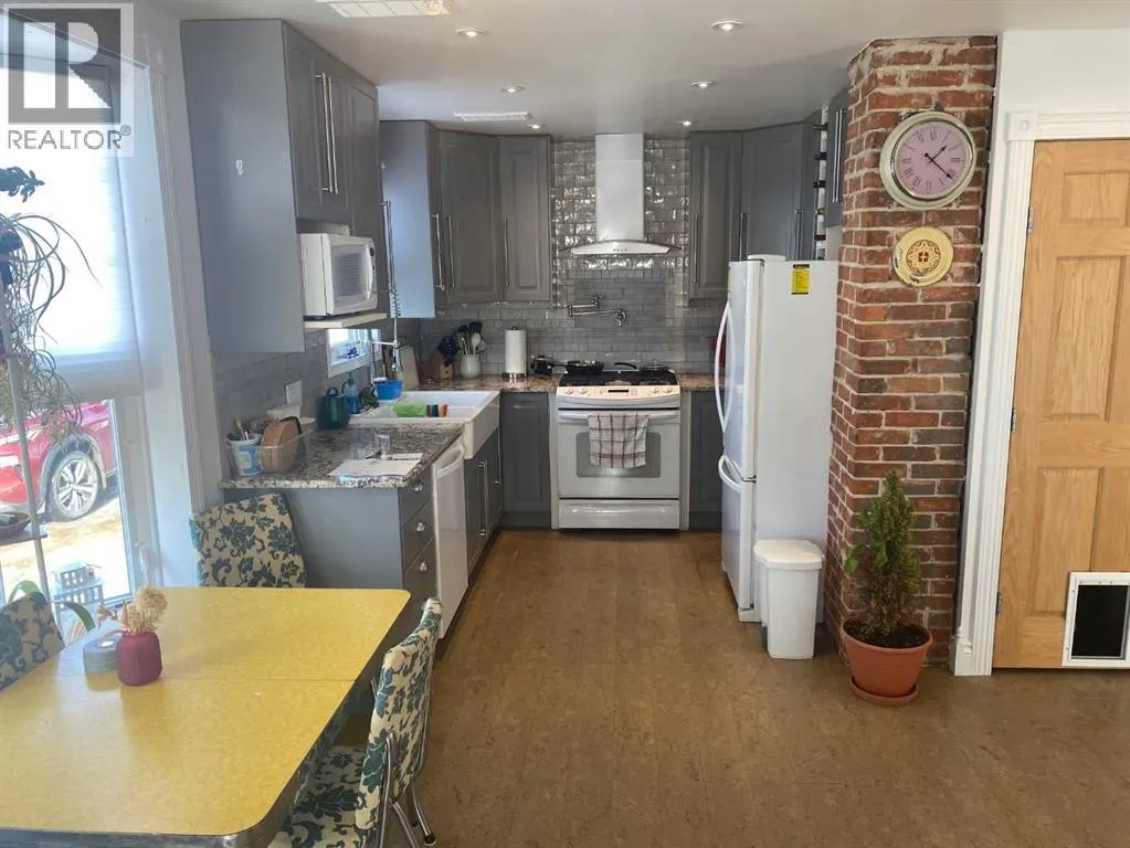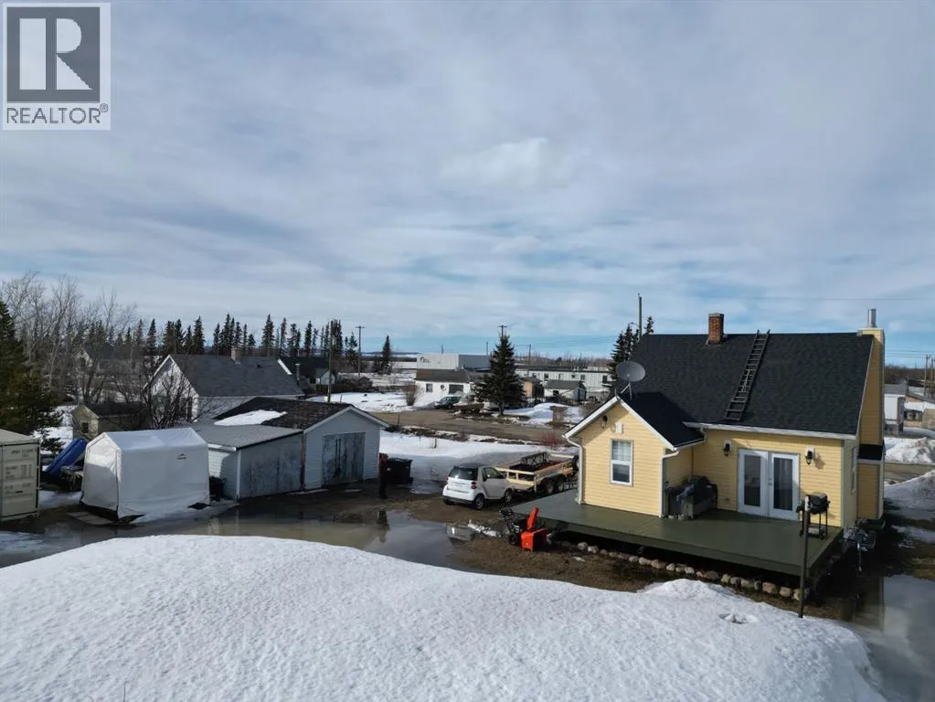 This great character home is very cute, and ready for you. It has been totally refinished and upgraded in the past 12 years. As you drive up you will notice the new shingles, soffit and eavestrough, and windows. The home has had fresh paint, new deck, new electric panel and wiring through out. The home has been updated with spray foam insulation, basement has been resealed with blueskin and plastic, so no water issues. You have new hot water tank and high efficiency furnace with a component for air conditioner. When you enter the home you will be met with high end cork floors, modern colors and great kitchen. The beautiful kitchen boasts a gas stove, with pot taps, large sink, and great lighting. The Cabinets are gorgeous and the tile backsplash pulls it all together. The living room features gorgeous hardwood floors, and amazing wood fireplace. You also have great patio doors to the south. The bathroom is very modern with rain shower, heat lamp provision and tub. Upstairs you will find 2 large bedrooms with beautiful hardwood flooring, large walk in closets and tonnes of storage that wraps around the home. All of this on a double lot, and with taxes that are an incredible $623....the home shows that it has been loved and cared for. This quality of home does not come along often,,, Woking is 55 km from Grand Prairie, has its own fire station, its own water, which is good water, and the school has been repurposed into the hub of the town for many activities! Call to view today (id:27476)