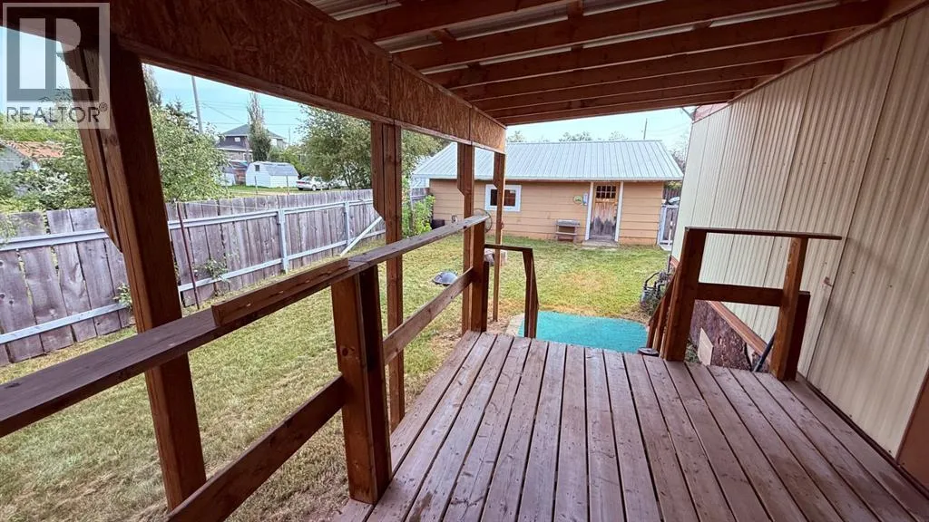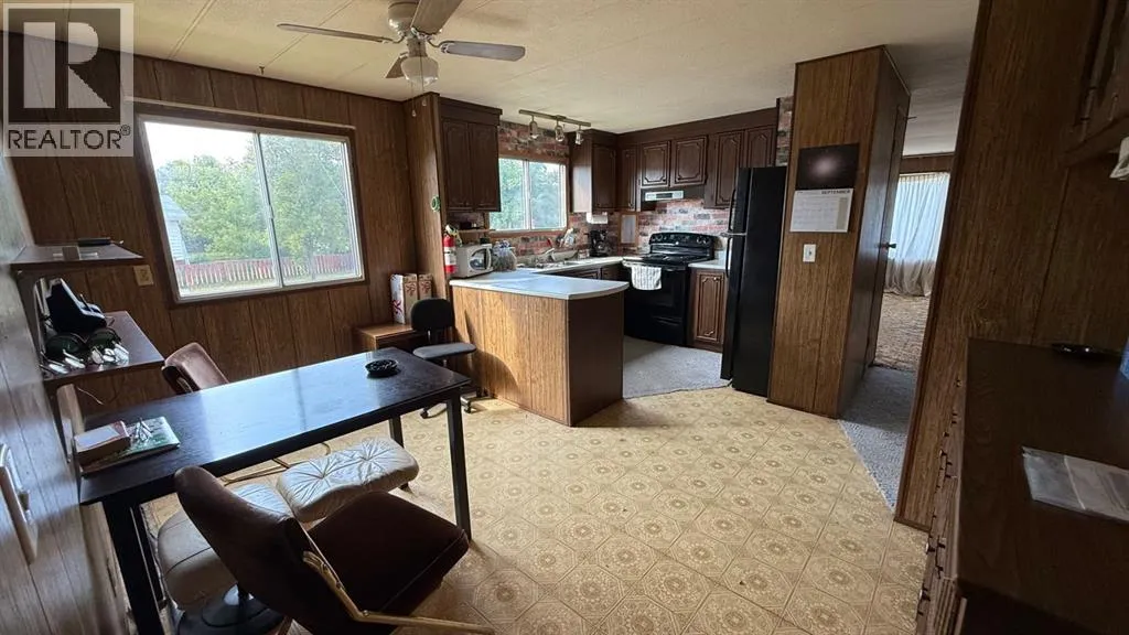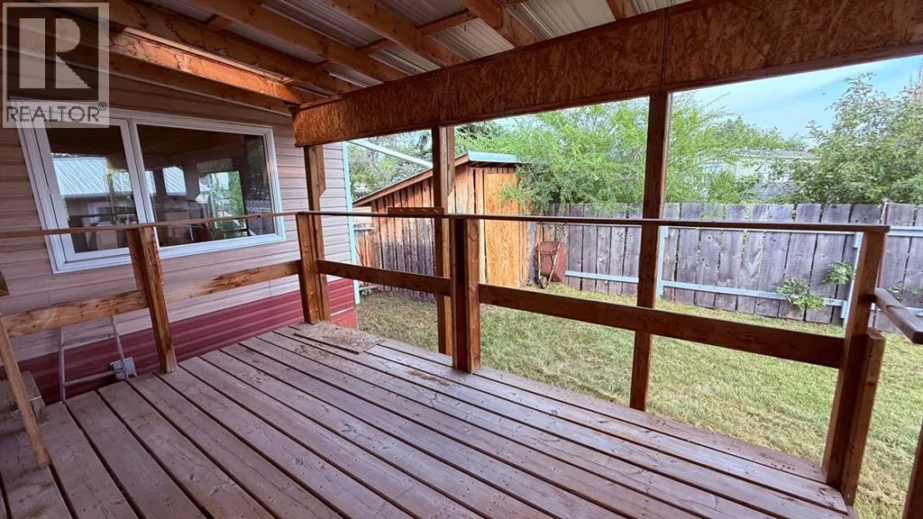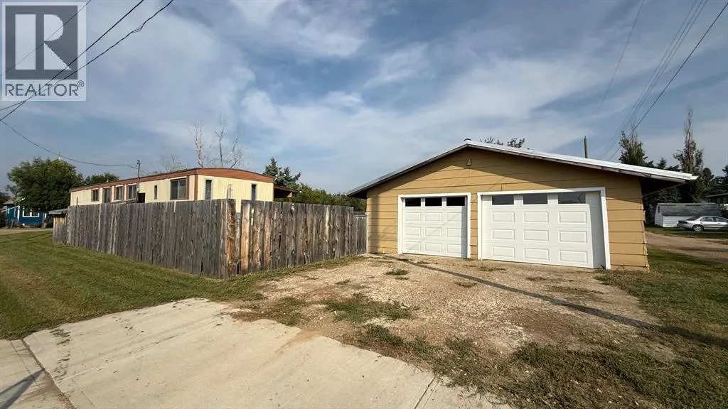 This 2 bedroom and 1bathroom mobile home offers a great layout with an additional entrance leading into a versatile mud/flex room. This space includes it's own furnace and basement area, giving you extra storage and the opportunity to develop it to suit your needs.Set on one of the first home sites in Youngstown, the property has been expanded with an addition and offers a peaceful setting to call home. Step outside to enjoy the covered deck that's perfect for relaxing and a fenced yard with extra storage.A true bonus is the oversized 26' x 28' garage with a solid metal roof, plenty of space for two vehicles and extra room for tools or a workshop. The wood-burning stove makes it a warm, practical space year-round.If youâre looking for an affordable home with excellent potential, this is one you wonât want to miss! (id:27476)