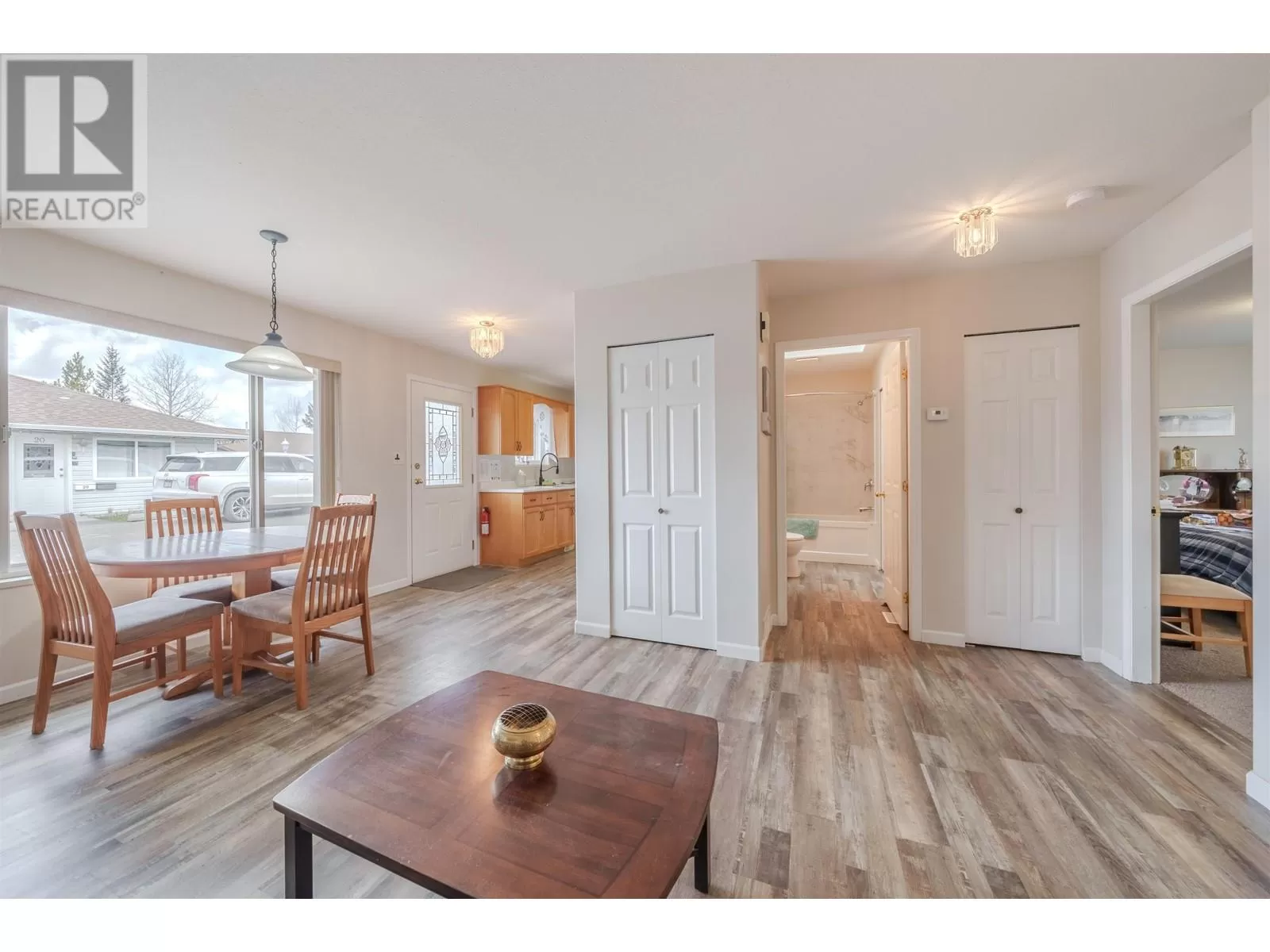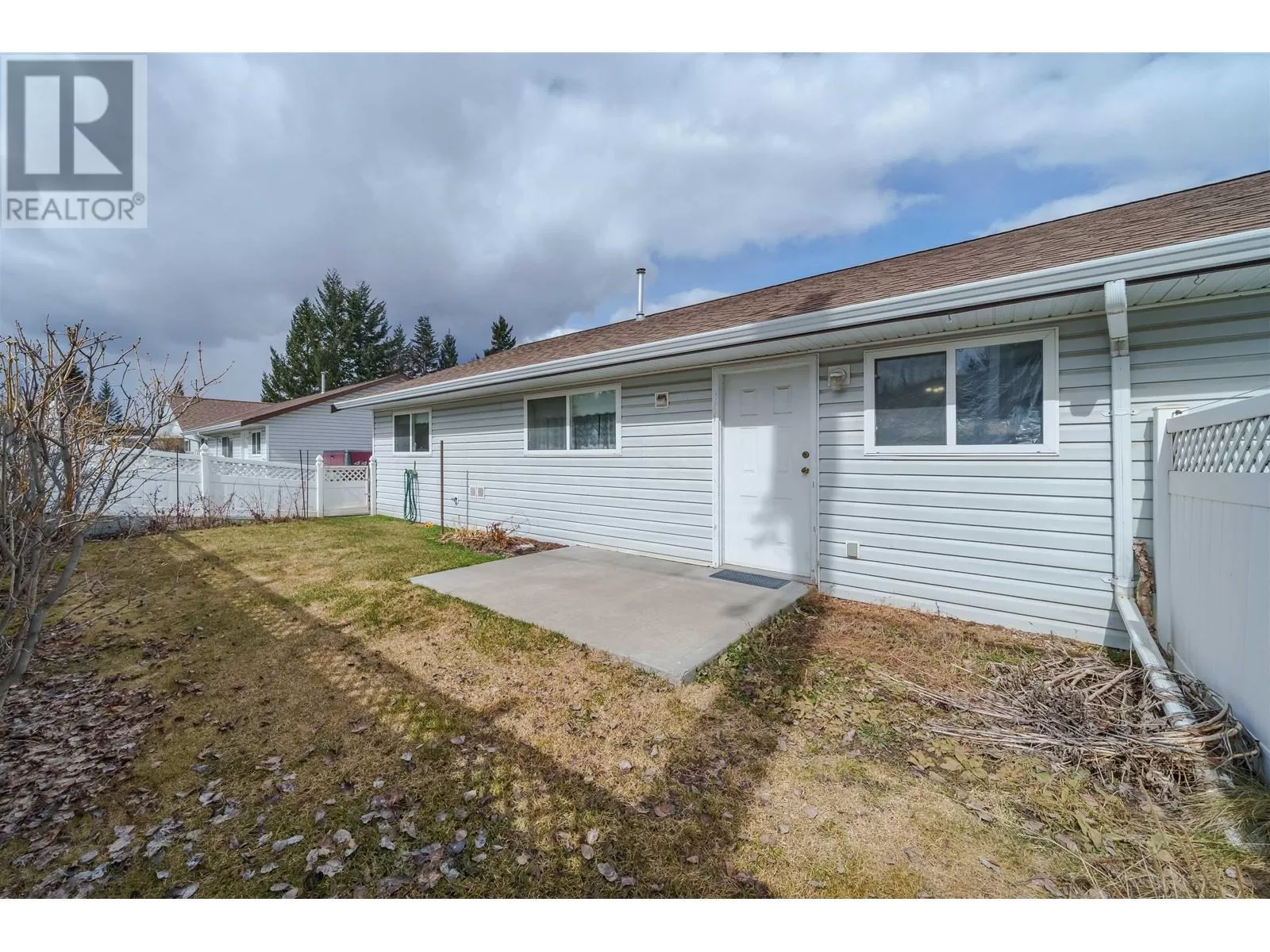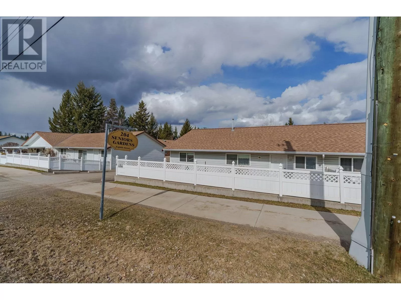 End-Unit Townhouse in Prime 100 Mile House Location! This well maintained 2 bedroom, 1 bathroom rancher style townhome offers the blend of convenience and comfort. Located in a quiet, adult-oriented complex of just 19 units, it features an attached, single-car garage with a workbench or extra storage, leading to the fenced backyard. Inside, you'll find spacious bedrooms, a cleverly tucked away in suite laundry, and a smart layout that maximizes living space. Enjoy the clubhouse for social gatherings. Pets are welcome with approval, and a transit stop right outside makes getting around easy. Just minutes from shopping, medical services, walking trail, this home is truly in a prime central location. (id:27476)