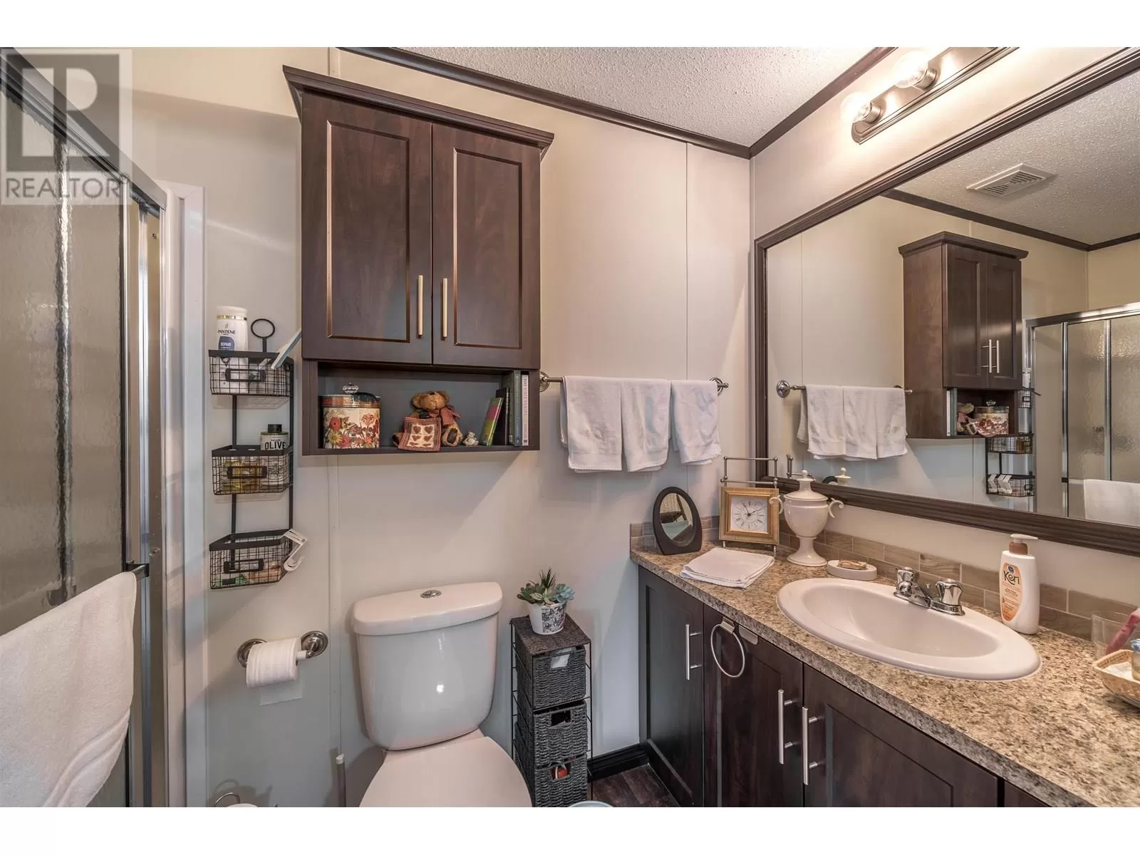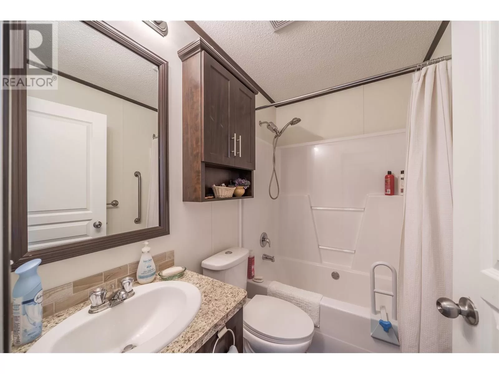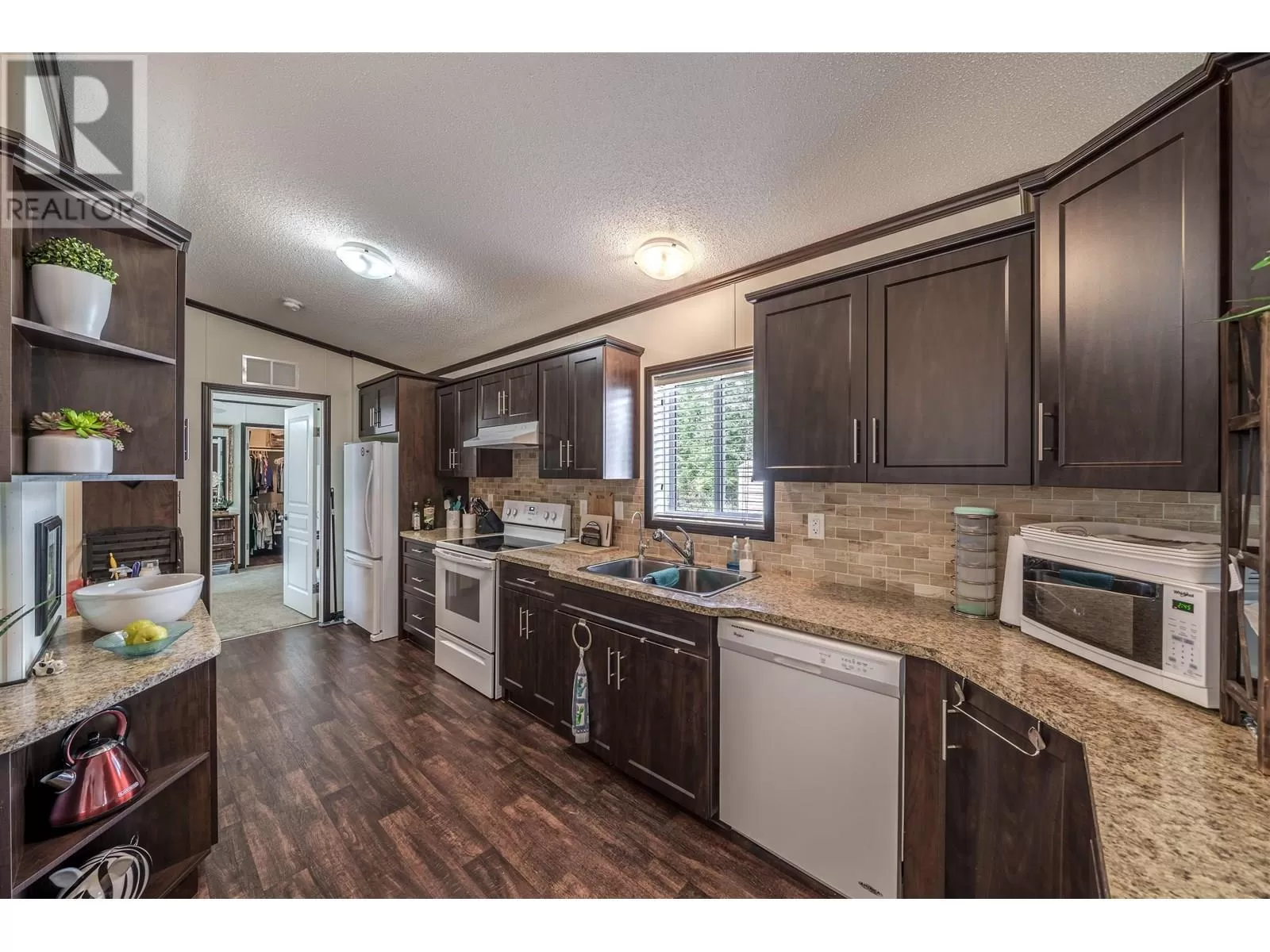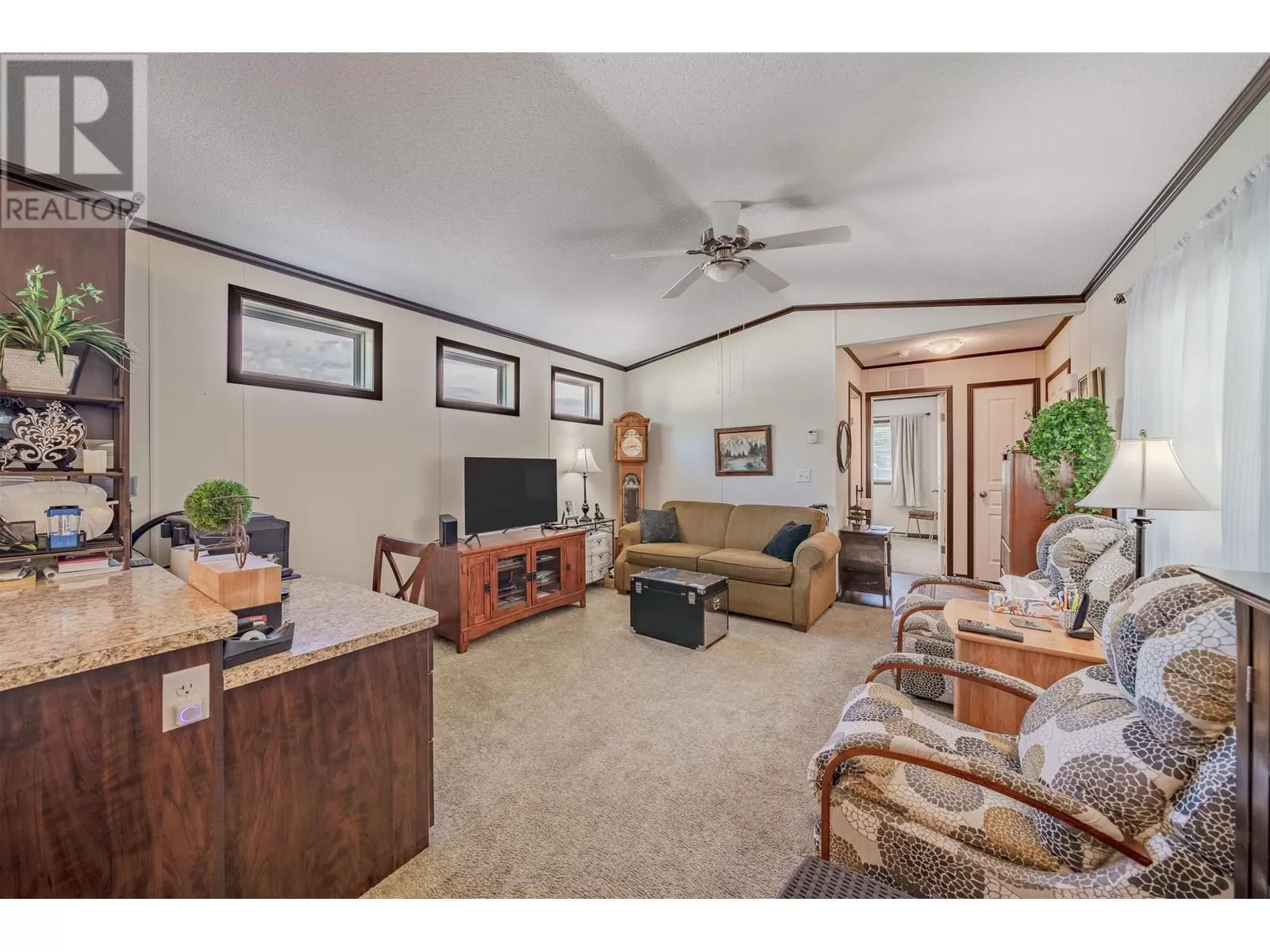 Rare opportunity to own at desirable Scenic Place 55+ Mobile Home Park in 100 Mile! This impeccably maintained 2016 home offers a thoughtfully designed 2-bedroom, 2-bathroom layout-ideal for downsizing without sacrifice. Inside, you'll find a bright and welcoming living space featuring an open-concept layout and a natural gas furnace for year-round comfort. The spacious kitchen includes plenty of cabinetry and generous counterspace, perfect for everyday living. Step outside to the covered 13'x14' lower patio-ideal for relaxing or hosting guests. The 13'x30' covered carport easily accommodates two vehicles, and the 8'x8' storage shed provides extra space for seasonal items. Located within walking distance to public transit, this home combines comfort, convenience and a peaceful lifestyle. (id:27476)