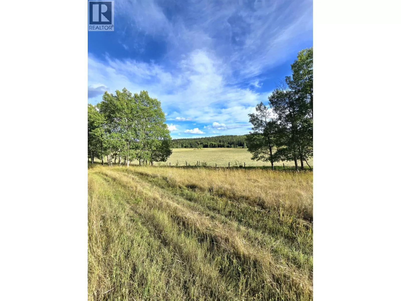 Build your dream home less than 20 minutes from 100 Mile House.This 138-acre property offers the perfect blend of income potential and seclusion. Approximately 60 acres are in hay production, with 18 acres recently reworked and seeded to Brome, Timothy, and Alfalfa.Fertile lake-bottom soil enhances the lower fields, which will be disced and reseeded before winterâalready paid for and included.Oats currently provide cover crop protection. Buffalo Creek meanders through the lower portion, supplying irrigation water rights, while the remainder of the property offers treed privacy and historic charm, including the old wagon trail to Forest Grove.A professional rotational grazing and soil plan has been prepared and prepaid, ensuring sustainable use for years to come. Additional features include 400-amp power on site, four-strand barbed wire perimeter fencing, and excellent access. This is a rare opportunity to own a productive and private agricultural dream with unmatched beauty, and historic character.GST applies. (id:27476)