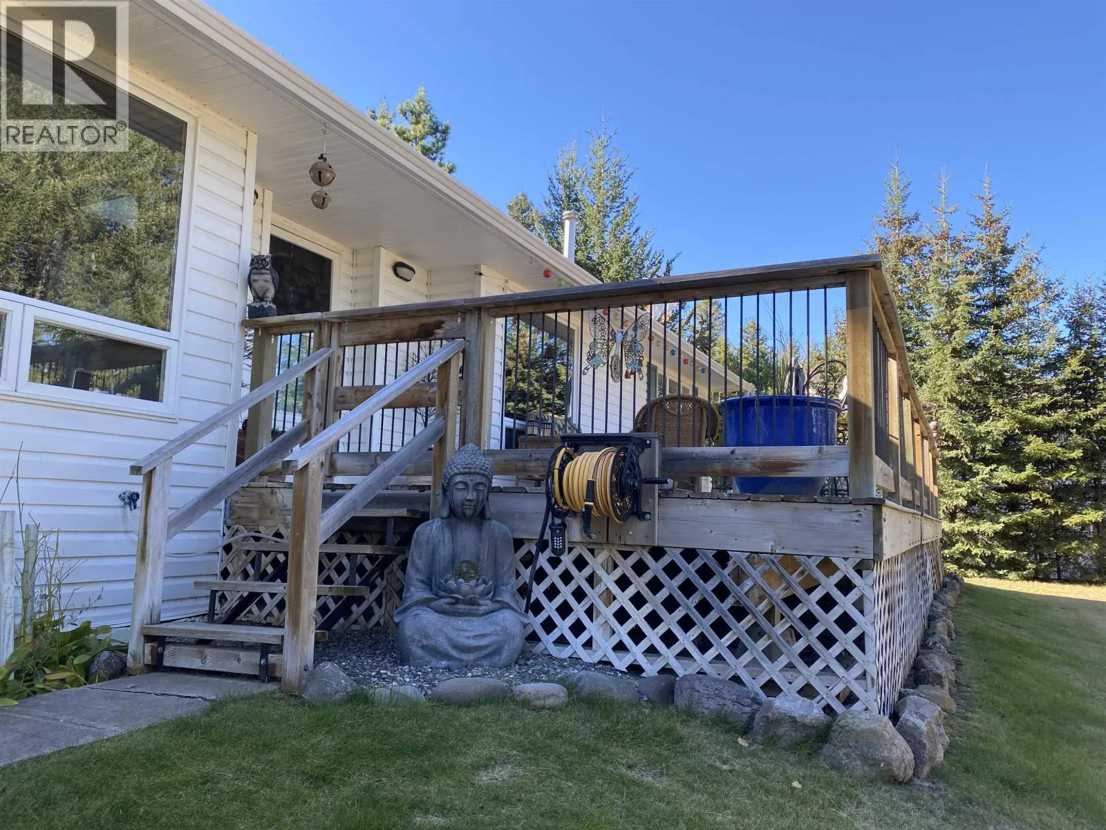 Well-maintained 1680 sq ft rancher with 3-bdrms, 2 baths, partial basement, and attached double garage. The thoughtful floor plan places the spacious primary suite with walk-in closet on one side, while the central living, dining, kitchen, and large family room create a welcoming hub. Two additional bedrooms and a full bath sit opposite for privacy. Enjoy outdoor living on two generous decks, perfectly positioned for morning and afternoon sun, overlooking park-like front and back yards. The partial basement offers a hobby room and workshop, accessible from the garage, ideal for the handy person. Set on a beautifully landscaped 1.14-ac lot with access from both Mackay Cres and Kitwanga Drive, the attractive home combines comfort, practicality, and value in a peaceful 108 Mile Ranch setting. (id:27476)