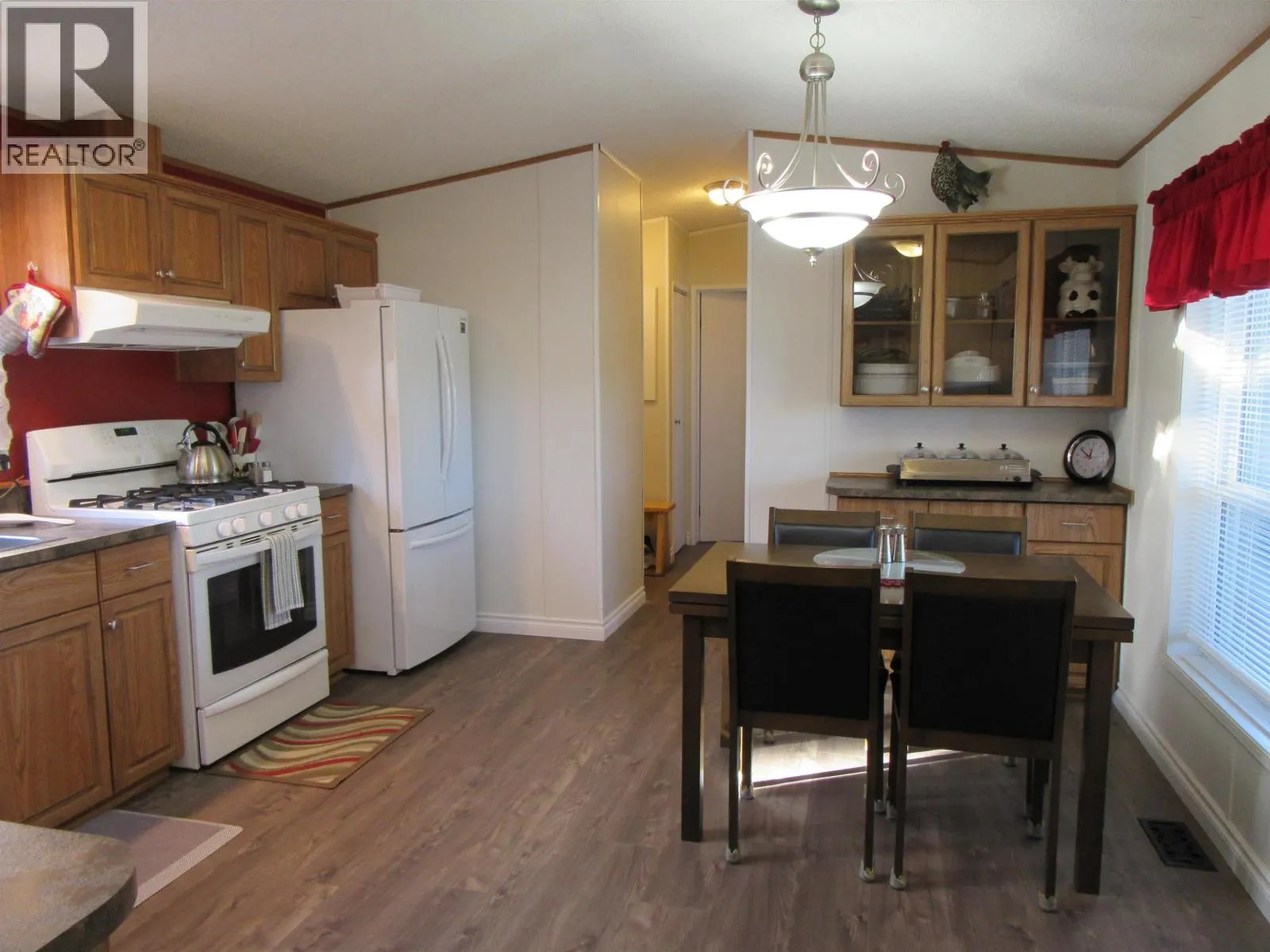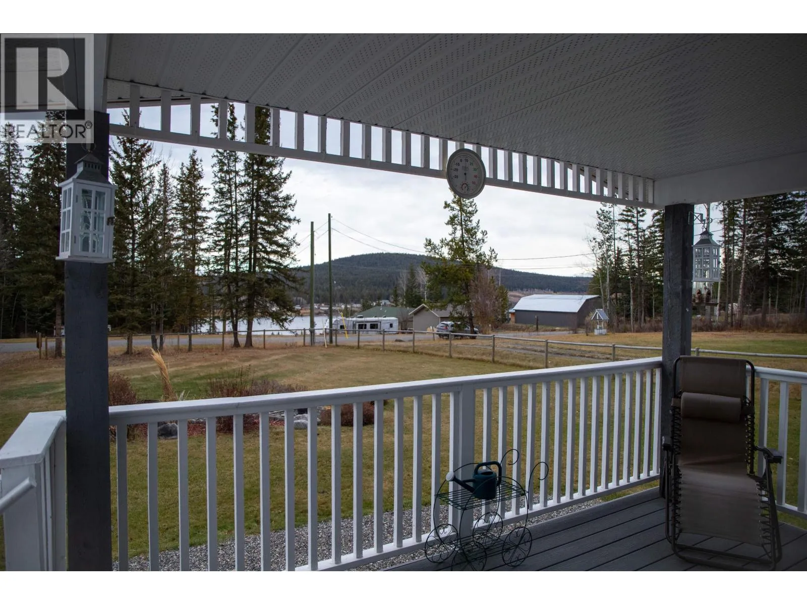 Retiring & want to downsize! This well maintained modular home with 2 bedrooms, 2 bathrooms, master with 4 piece ensuite & walk-in closet, open floor plan, vaulted ceiling, well appointed kitchen with natural gas stove & new flooring throughout, large windows for an abundance of natural light & covered deck out front to enjoy your view, ticks all the boxes. Natural Gas Forced Air Furnace 2025, HWT 2021, Roof 2016, Engineered Septic System 2017. Nothing to do just move in & enjoy one floor living in retirement. Level 0.50 acre, perimeter fenced & cross fenced back yard, perennial gardens, large storage shed, small greenhouse & room for RV Parking. Need extra storage or a place to tinker there is plenty of room in the back yard to build your dream shop. Located in a great neighbourhood with a view of Horse Lake, on a no-thru road with Crown Land at the end for direct access to a trail system for year round use, public access to Horse Lake nearby, all this & only 10 minutes from 100 Mile House for all amenities. (id:27476)