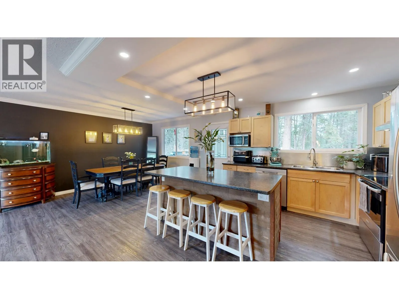 * PREC - Personal Real Estate Corporation. This 4-bedroom, 2-bath home with an attached garage sits on a generous lot, giving your family plenty of space to settle in and enjoy the South Cariboo lifestyle. The open-concept living area feels bright and modernâperfect for everyday living or gathering with friends. Tucked away on a quiet road, youâll also love the amenities just minutes from your door. The 108 Ranch offers golf, pickleball courts, dining, a cozy coffee shop, groceries, fuel, fishing, hiking, church, and an elementary school. Room for gardening, outdoor play, or simply relaxing in the fresh Cariboo air makes the property easy to enjoy today, while still leaving room for you to bring your own vision and style. Everything you need is right hereâhardly a reason to leave. Make this inviting property your next home. (id:27476)
