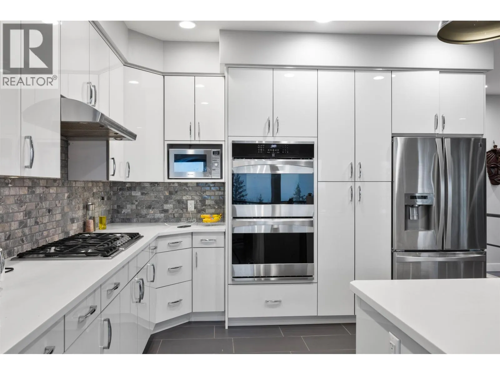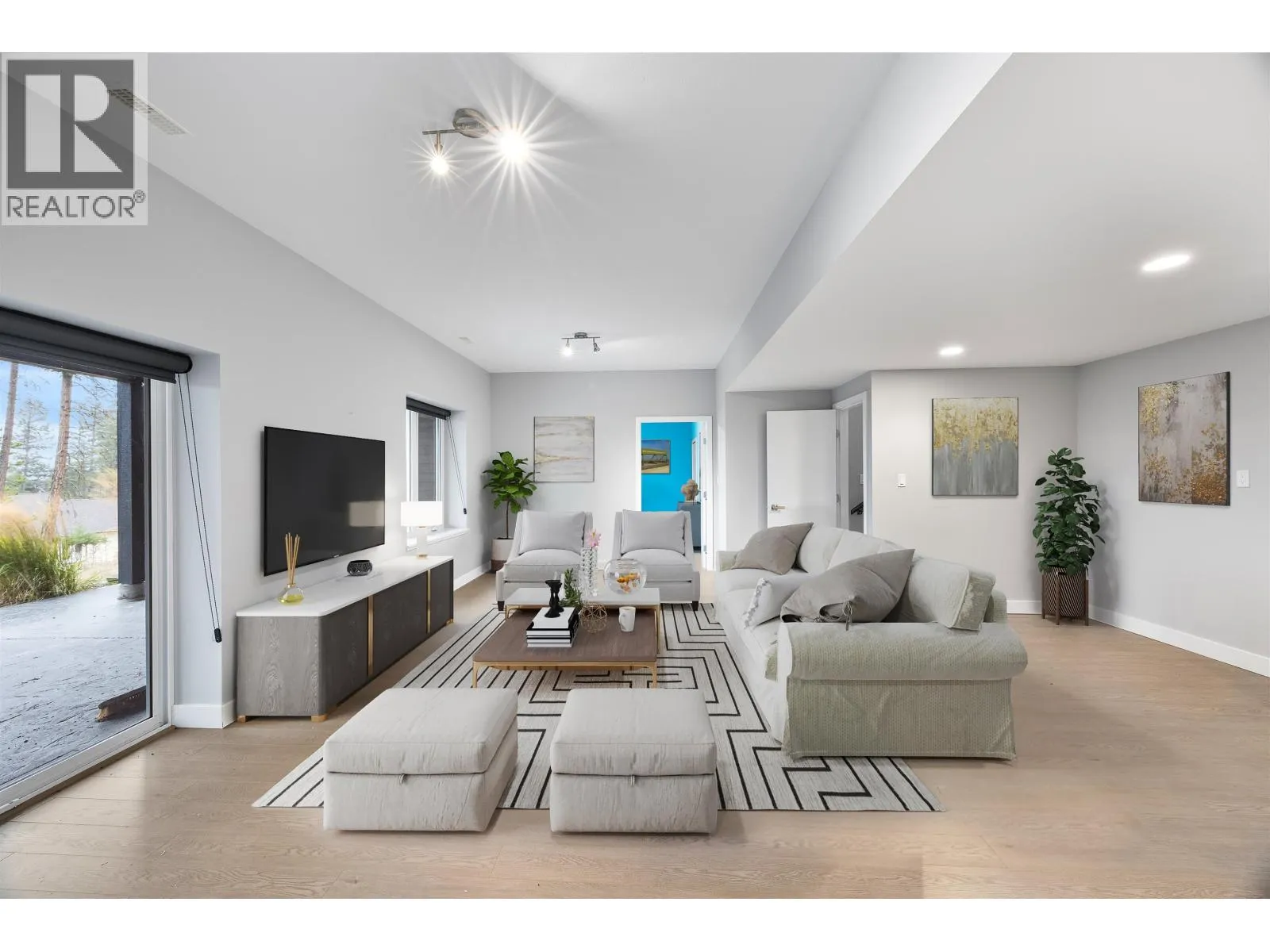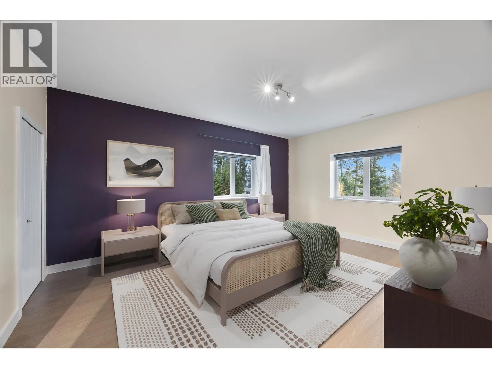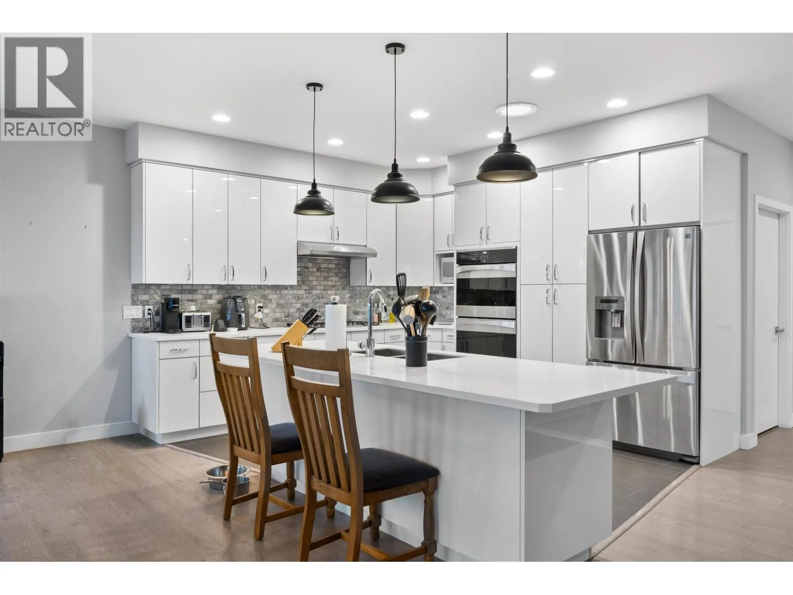 Welcome to our contemporary walk-out rancher in the peaceful community of 108 Mile Ranch. This 4-bedroom, 4-bath home combines comfort, elegance, and functionality with a bright, open layout ideal for relaxing or entertaining. The sunlit living area features an airtight wood-burning fireplace, while the gourmet kitchen offers a large island, dual ovens, 36â gas cooktop, and abundant cabinetry. The main-floor primary suite includes a 5-piece ensuite and walk-out closet. The lower level provides three additional bedrooms, two baths, a spacious rec room, and storage. Outside, enjoy landscaped grounds, serene outdoor spaces, and captivating views. Thoughtful design and quality craftsmanship create a sophisticated lifestyle surrounded by natural beauty. All interior photos are virtually staged. (id:27476)