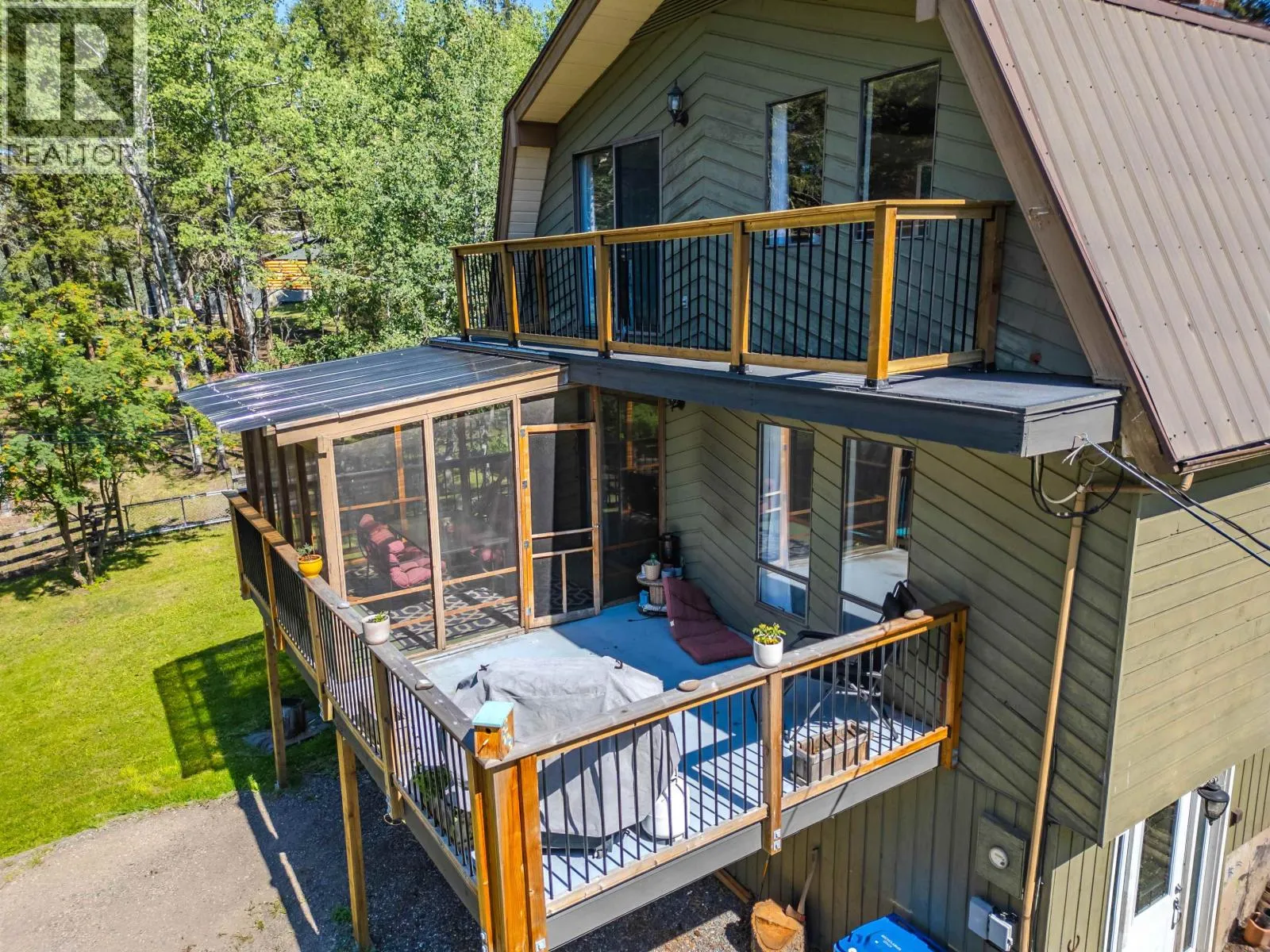 This well maintained home features recent updates, new flooring, and a new woodstove so you can move in and enjoy. The main level offers an inviting layout with a formal living and dining room, a cozy family room with gas fireplace, and a functional kitchen and a screened-in deck perfect for enjoying the Cariboo summers. Upstairs, you'll find three generous bedrooms, including a primary suite with a walk in closet. The basement features a spacious entryway, large laundry room, fourth bedroom. Outside, the fully fenced yard includes a detached garage with loft and a raised garden area perfect for those who enjoy hobby space. A wonderful home in a great location in the 108 Mile Ranch with room for the whole family! (id:27476)