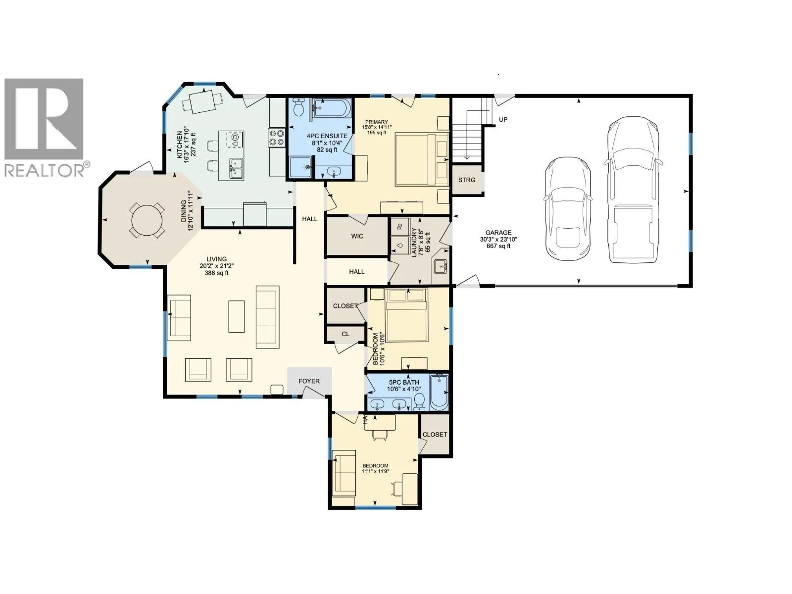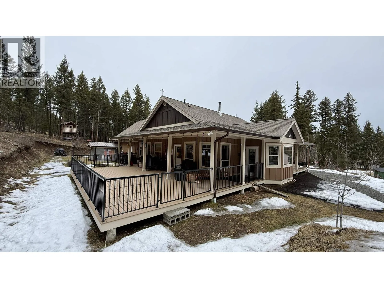 Beautifully finished 3 bedroom, 2 bathroom rancher located at the end of a quiet cul-de-sac in desirable 108 Mile Ranch. Situated on a private 1.17 acre lot backing onto greenbelt, this home offers an exceptional combination of comfort, quality, and space. The main living area features vaulted ceilings, a cozy wood stove, and an excellent layout with natural flow. The island kitchen is ideal for everyday living and entertaining, while forced air natural gas heating provides efficient year round comfort. The primary bedroom includes a luxurious ensuite with a separate soaker tub and walk-in shower. Outside, the property continues to impress with a large heated double garage featuring a bonus room above, plus a detached 20x30 shop that is fully wired and plumbed with its own bathroom and wood stove. Additional highlights include a tree house, wood shed, and generous deck space perfect for outdoor living and family gatherings. Quiet location, quality finishes and move in ready. (id:27476)