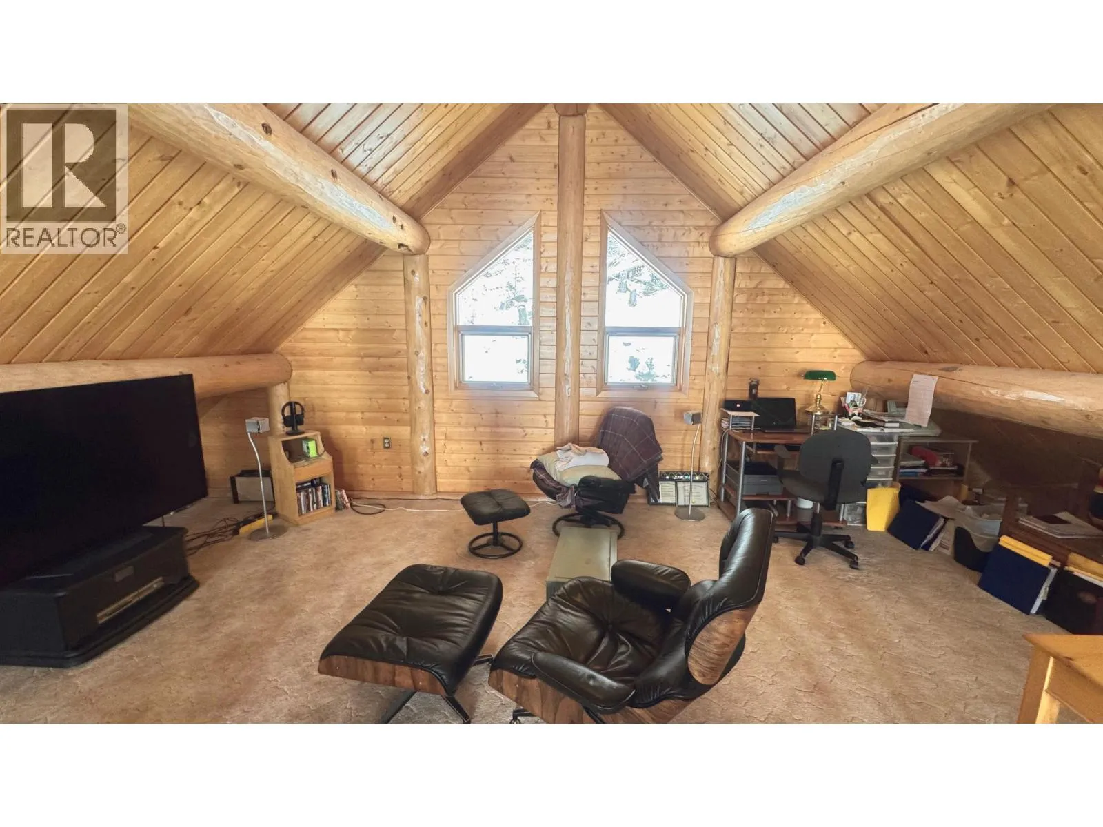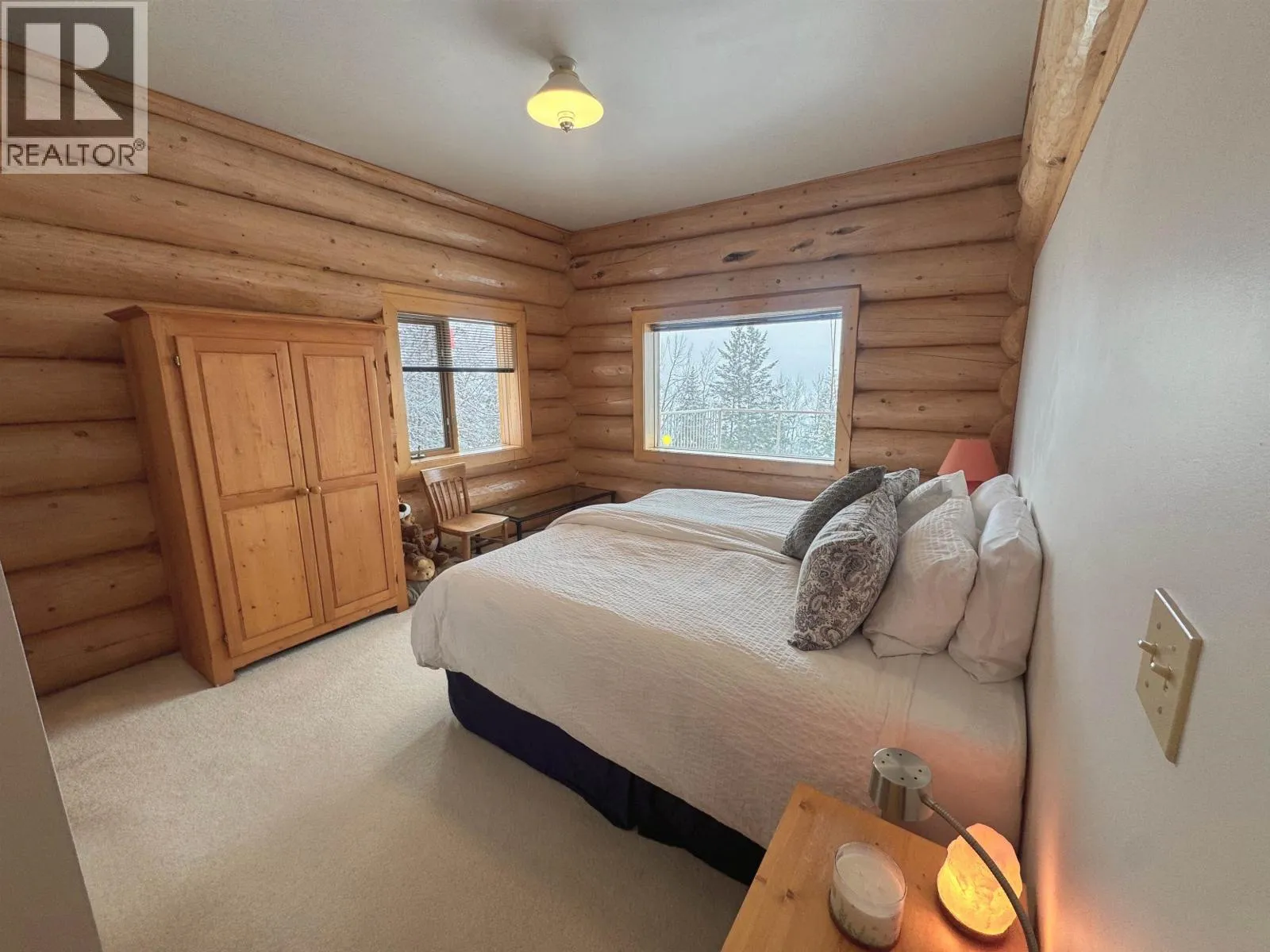 Grand 3,200 sq ft handcrafted log home overlooking the crystal waters of 108 Lake, set on 1.43 private acres. This impeccably maintained residence showcases massive log construction, rich woodwork throughout, and warm, inviting living spaces designed for family and entertaining. Natural gas radiant in-floor heating offers year-round comfort. The spacious layout includes a fully self-contained basement currently operating as a highly successful 5-star Airbnb, creating exceptional income potential. Rare combination of luxury, lifestyle, and investment in one of the Caribooâs most sought-after lake communities. With sweeping lake views from expansive decks and timeless craftsmanship at every turn, this is a true legacy property ready to welcome family, guests, and continued rental success now. (id:27476)