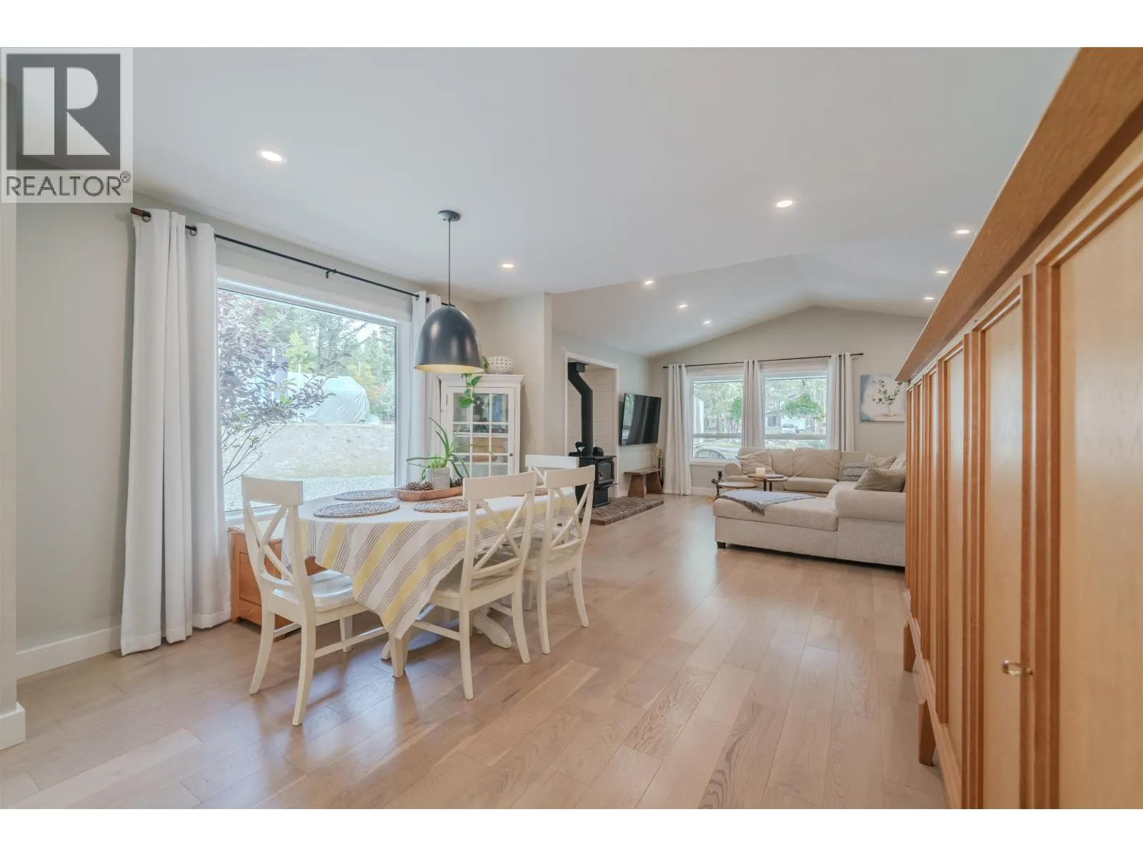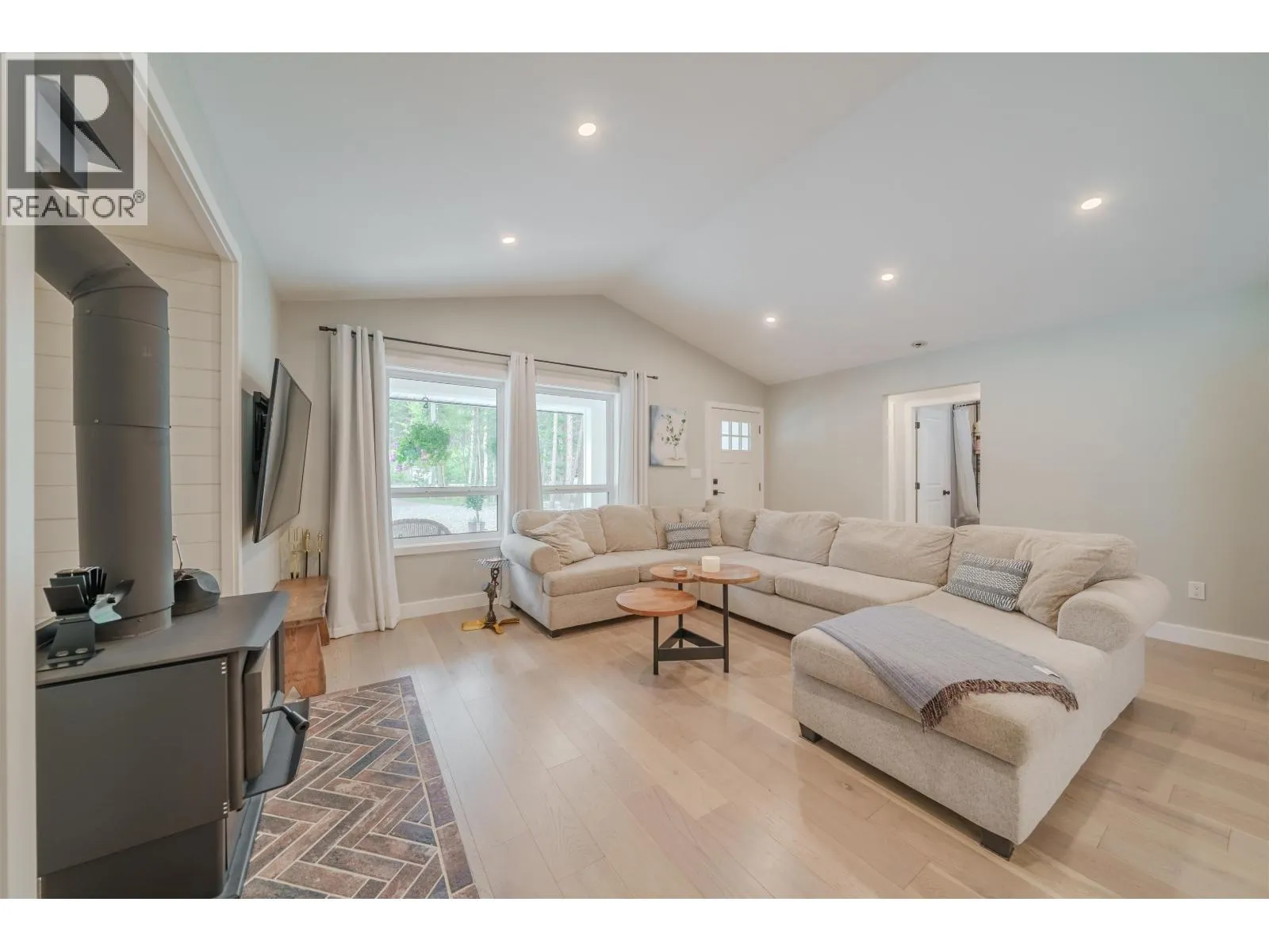 Exceptional 2023 custom built rancher in 108 Mile Ranch! This 3-bedroom home was meticulously crafted with premium finishes, including stunning engineered hardwood and custom cabinetry. Stay comfortable in every season with a modern heat pump for cooling and heating, plus a classic wood stove for added warmth. The functional layout features a bright kitchen with direct access to an expansive veranda, perfect for enjoying the peaceful surroundings. Situated on a sprawling acre-plus property, there is significant room for a detached shop, gardens, or additional parking. This home offers the rare opportunity to own a nearly new build with the peace of mind that comes from quality construction. Close to local trails, the lake, and all the amenities of the 108. (id:27476)