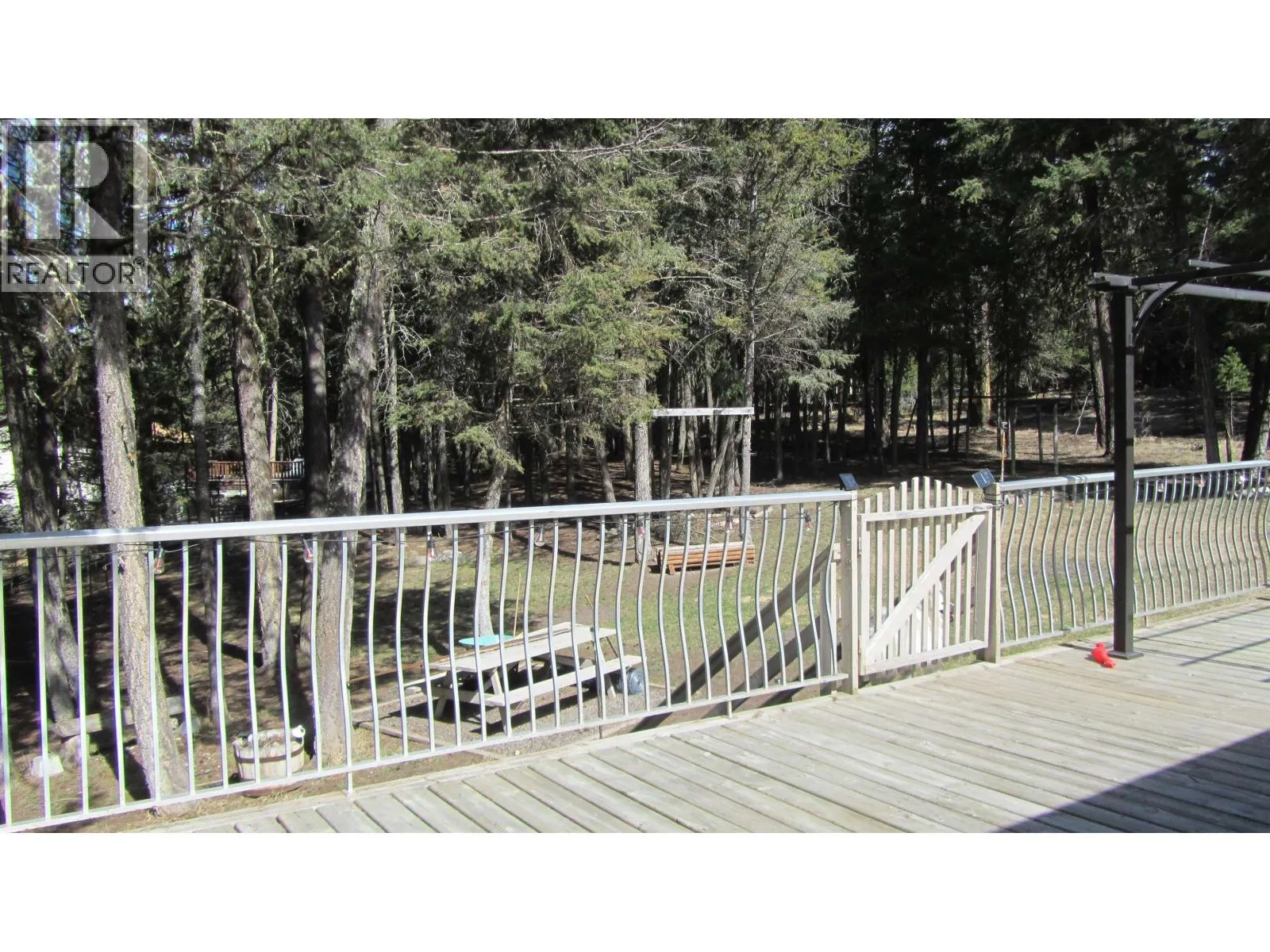 This picturesque, clean, comfortable, lovely, 4 bedroom, 2 1/2 bath is located in the beautiful 108 Mile on a quiet street and area. Large master bedroom is bright & airy with a 2 piece ensuite. The bright kitchen has beautiful oak cabinets with new flooring, dishwasher & washer/dryer. New light fixtures in the livgrm & diinrm with hardwood floors throughout the main floor. Large deck off the kitchen is excellent for family bbq's. Basement has a dedicated office & bdrom. Also a large & bright 1 bddrm mortgage helper suite with washer & dryer, dishwasher, with a separate private entrance. Gas furnace & water softener recently serviced. Large 3 car garage has a gas furnace & new LED pot lights installed & a large mezzanine for extra storage. Lots of parking, large garden & greenhouse. Back of property is fully fenced with green space & sprawling trees. Enjoy wildlife from your front yard with lots of fishing lakes, walking trails, golf & school nearby. Come and enjoy and live the relaxed Cariboo life (id:27476)