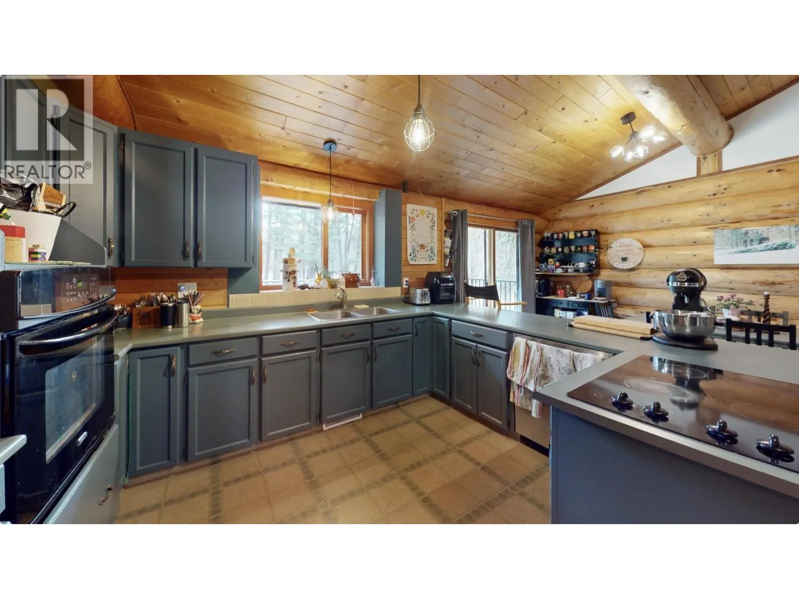 Welcome to 5007 Canium Court, a stunning luxury log home tucked at the end of a quiet cul-de-sac in the sought-after 108 Ranch. Offering over 3,000 sqft, this 4-bedroom home showcases timeless craftsmanship with soaring wood ceilings, rich log construction, and a striking stone fireplace anchoring the living space. The layout is spacious and inviting, ideal for both everyday living and entertaining. A paved driveway and large double carport provide convenience, while the private setting offers peace and privacy. Unwind in the hot tub and take in the natural surroundings. A true Cariboo lifestyle property, just moments from golf, trails, and recreation. With endless greenbelt behind enjoy the wildlife and walking trails right from your backyard. (id:27476)