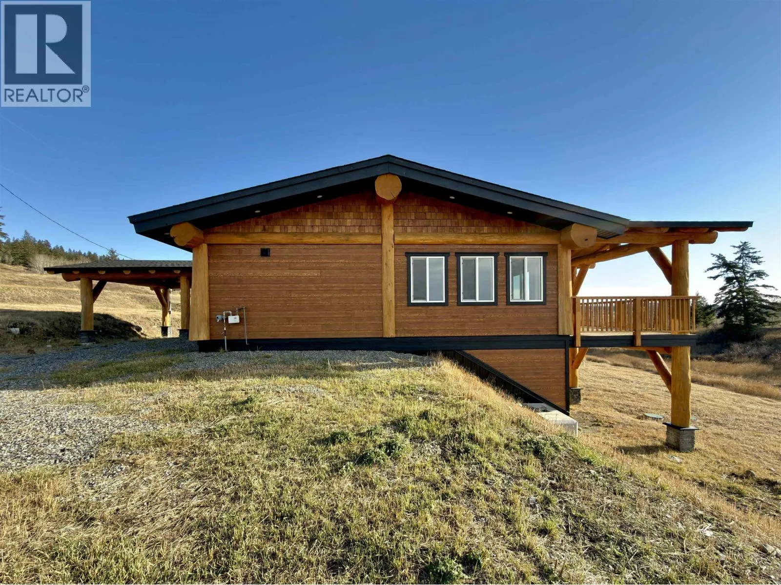 Welcome to this charming Pioneer Log Home on 1.97 acres in Frontier Estates, located in 150 Mile House, just 10 minutes from Williams Lake. This new-build rancher features 2 bedrooms, 2 full baths, including a spacious primary suite with an ensuite and walk-in closet. The unfinished basement is ready for your ideas, could easily add additional bedrooms or more living space. Enjoy natural wood accents and beautiful views of the San Jose Valley from the covered deck. A double carport adds year-round convenience. A warm, welcoming Cariboo home. (id:27476)