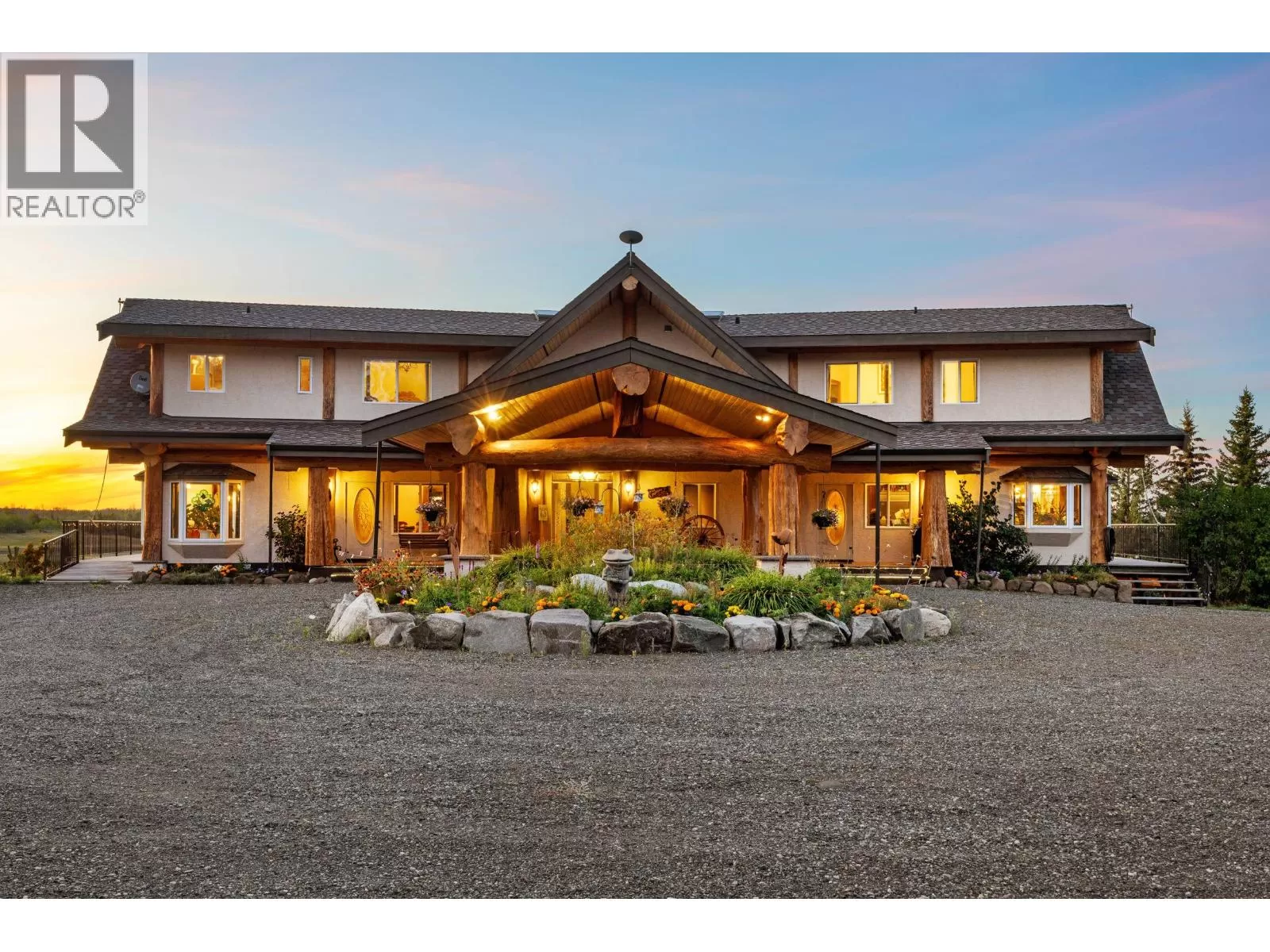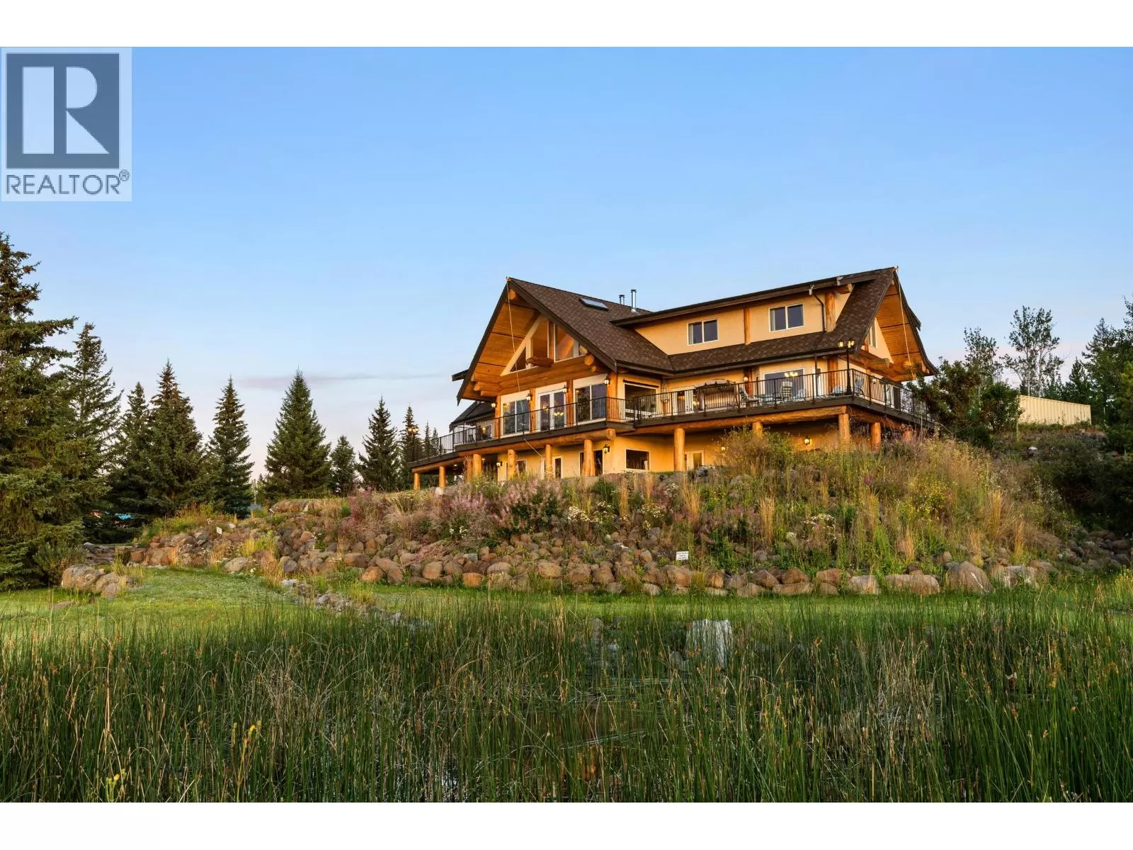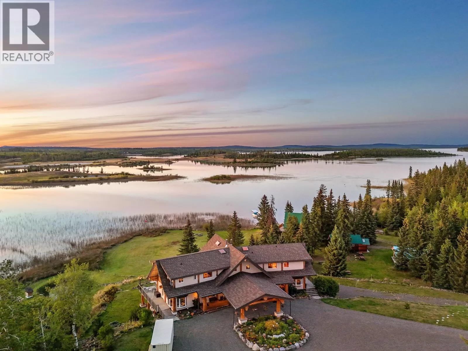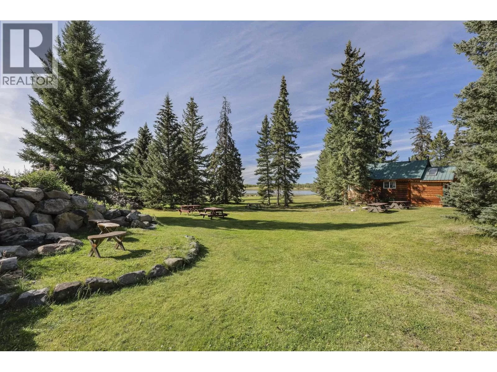 Luxury is no longer about what you own, but what you leave behind. This is your ultimate escape. This breathtaking 7,200 sq ft log retreat, crafted by renowned Timber Kings, is a masterpiece of cedar log construction, warm craftsmanship, and a striking stone fireplace. Set on 330 ft of Green Lake's private and pristine waterfront, it's the Cariboo's ultimate escape. The estate includes two additional private cabins, 15 RV/camping sites (many with power, grey water, and washroom access), plus a heated shop for all your recreational toys. Whether as a private family resort, an exclusive retreat, or a boutique lakeside getaway, this property offers unmatched serenity under endless starry skies -- just 30 minutes from 100 Mile House. Rural property, exempt from foreign buyers ban. (id:27476)