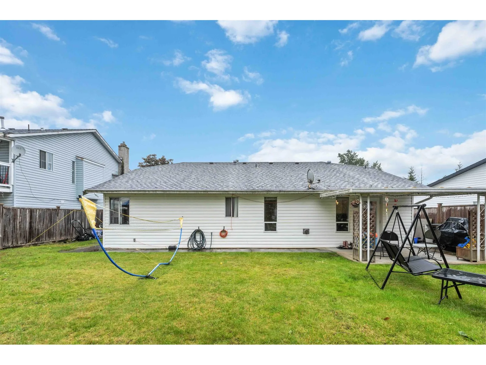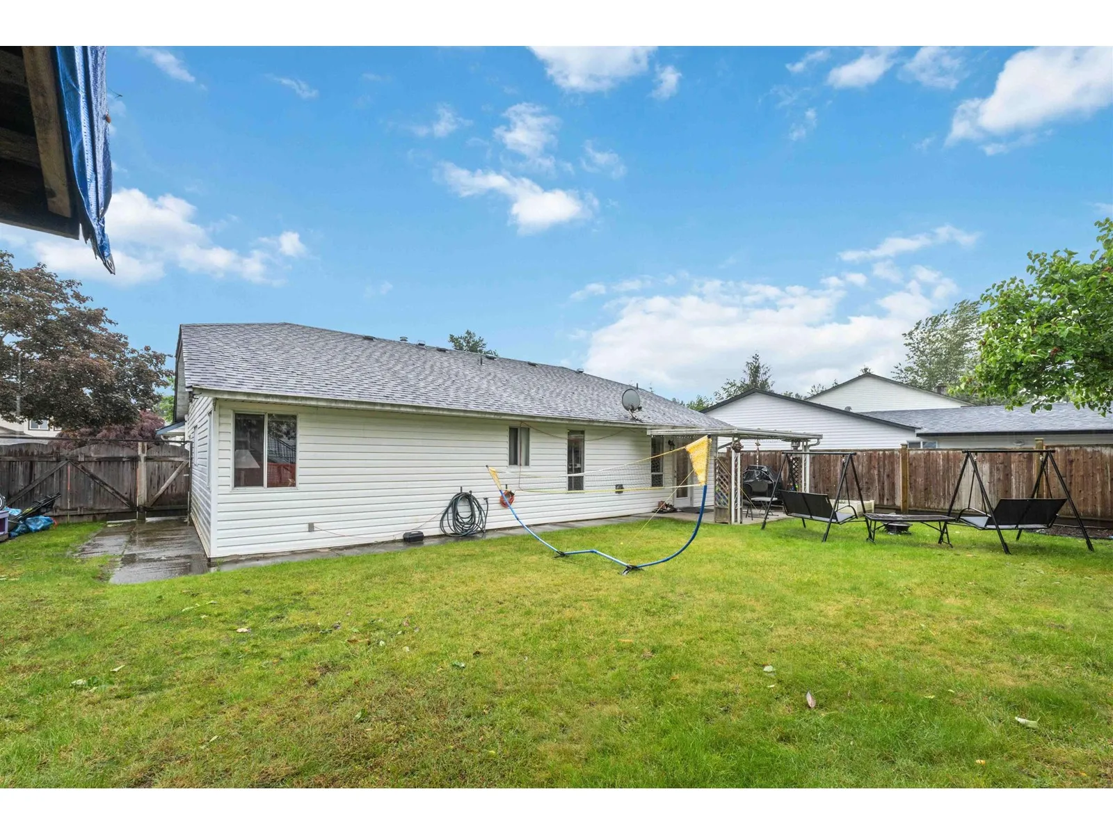 This well-maintained, 3-bedroom, 2-bathroom rancher offers single-level living, perfect for easy accessibility with no stairs. Situated in a peaceful, family-friendly cul-de-sac, this home is just a short walk from the scenic Fishtrap Creek Park and Discovery Trail. Families will appreciate being close to St. James & St. Ann's Catholic School, fitness centres, bus routes, and playgrounds. The shopping centre and freeway access are just minutes away for added convenience. Enjoy the beautifully landscaped yard and a fenced backyard that ensures privacy for relaxation or family gatherings. With a generous lot size of 5,900 sqft, there's plenty of room for outdoor enjoyment. This clean, move-in-ready rancher offers both comfort and convenience in a prime location! (id:27476)