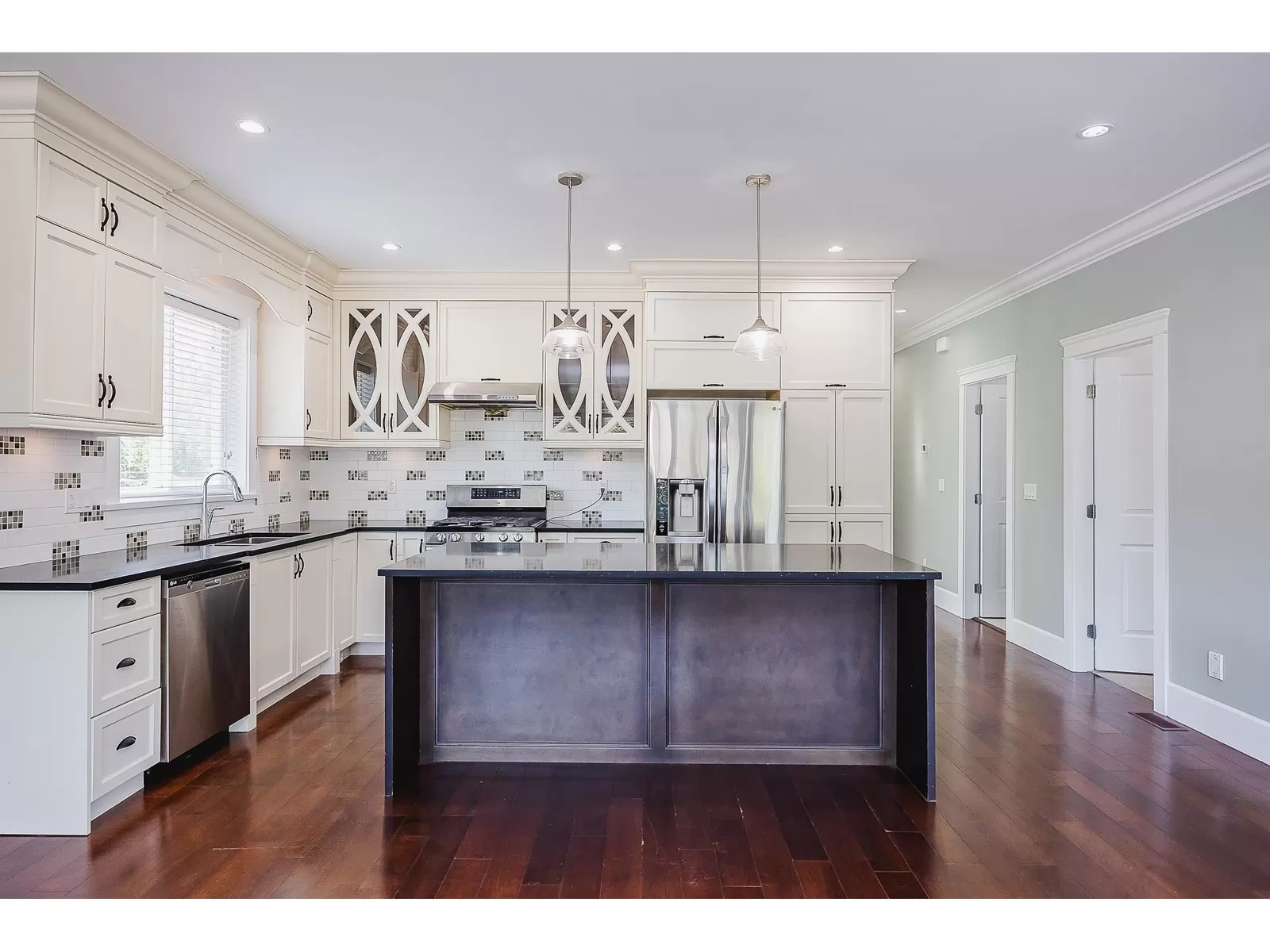 14 year old basement entry home in Central Abbotsford near the old Phillip Sheffield School. 1,493 sqft on main floor with 9 ft. ceilings, 3 beds, 2 with ensuites, plus 3rd main bath. Large open style kitchen, living room, family room combination, hardwood flooring, balcony off living room overlooking front yard. One bed bachelor suite with private entry in basement. Bonus Commercial Zoned 892 sqft $200k professional high capacity stainless steel kitchen complete with 6'5x6'3 walk-in cooler, stove top/oven, stainless work tables, approved fire suppression system. Perfect for your home based professional talents (Pizza Parlor or?). Plenty of parking in front of business as well as side and rear yard parking for residents. RV parking at rear. Childcare zoned. Rented 8k a month 1 tenant. (id:27476)