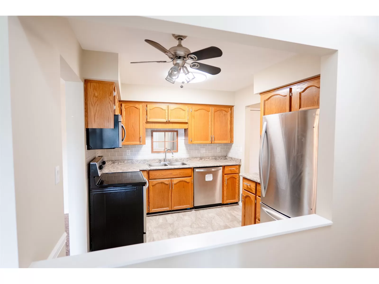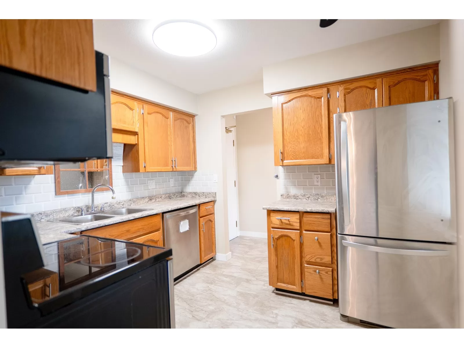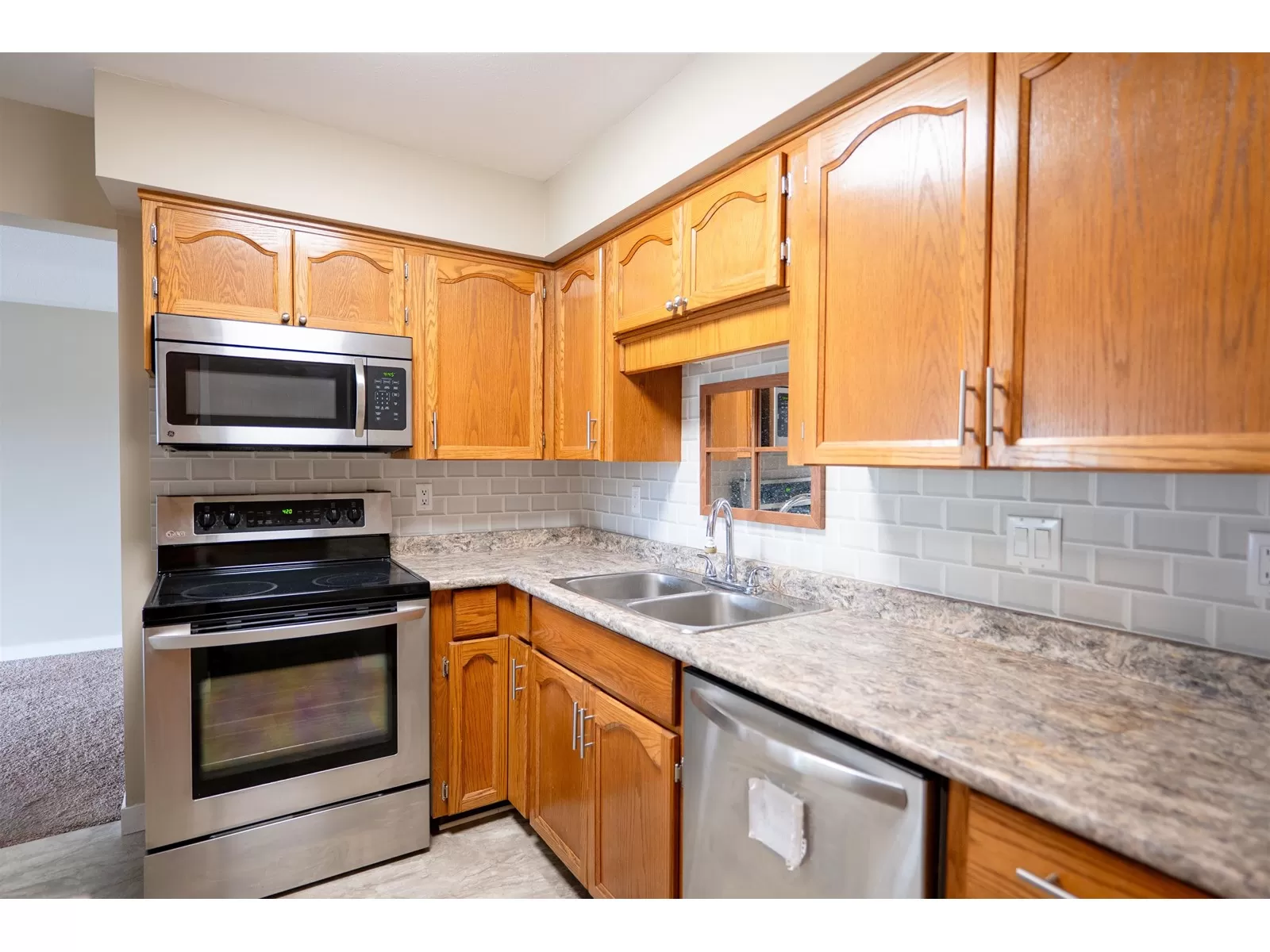 Well maintained and affordable retirement condo, 55+ age restriction. Refinished kitchen cabinets, new countertops, sink and taps as well as flooring, bathroom tub and surround and light fixtures have all been upgraded. Clean and well cared for, this is a delightful unit, set in a convenient location close to shopping. The hot and cold water lines have all been replaced in the entire building. Low strata fees include heat, water and hot water. This complex is well managed and has large storage unit, workshop, games room and meeting room. Roof and boiler have been recently replaced. (id:27476)