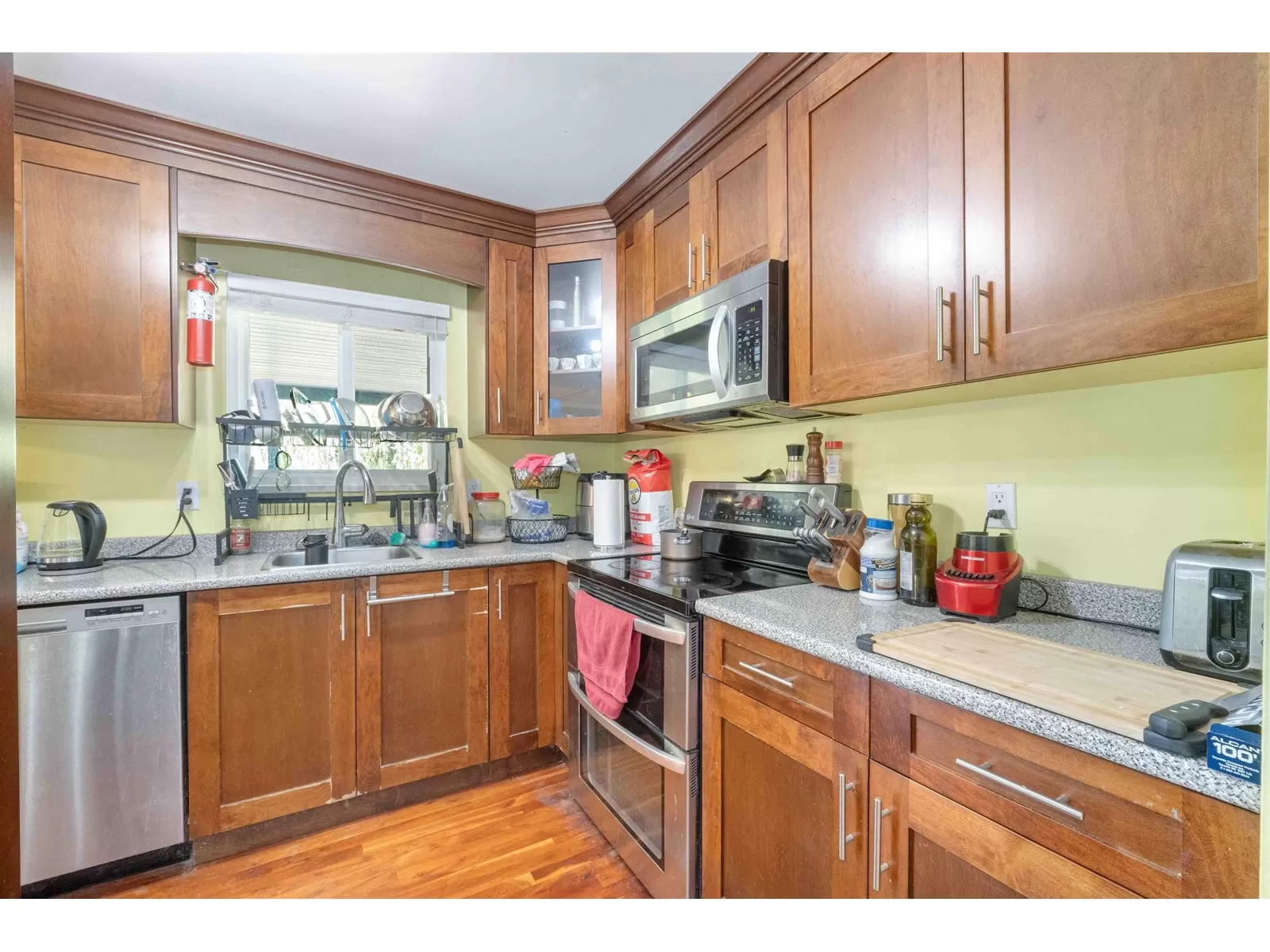Embrace the opportunity to live in this charming home or invest in its future potential! This 4-bedroom, 2-bathroom + den residence offers a convenient lifestyle with close proximity to all necessities. The home features a modernized kitchen and windows, a legal suite with 1 bedroom + den, a separate entrance and laundry which makes a great mortgage helper. Enjoy the fenced yard and covered deck, and RV parking. The spacious backyard includes a tool shed nestled in the corner. This ideal family home is located in a friendly neighborhood and is perfectly situated near shopping centers, parks, schools, grocery stores all within walking distance! (id:27476)