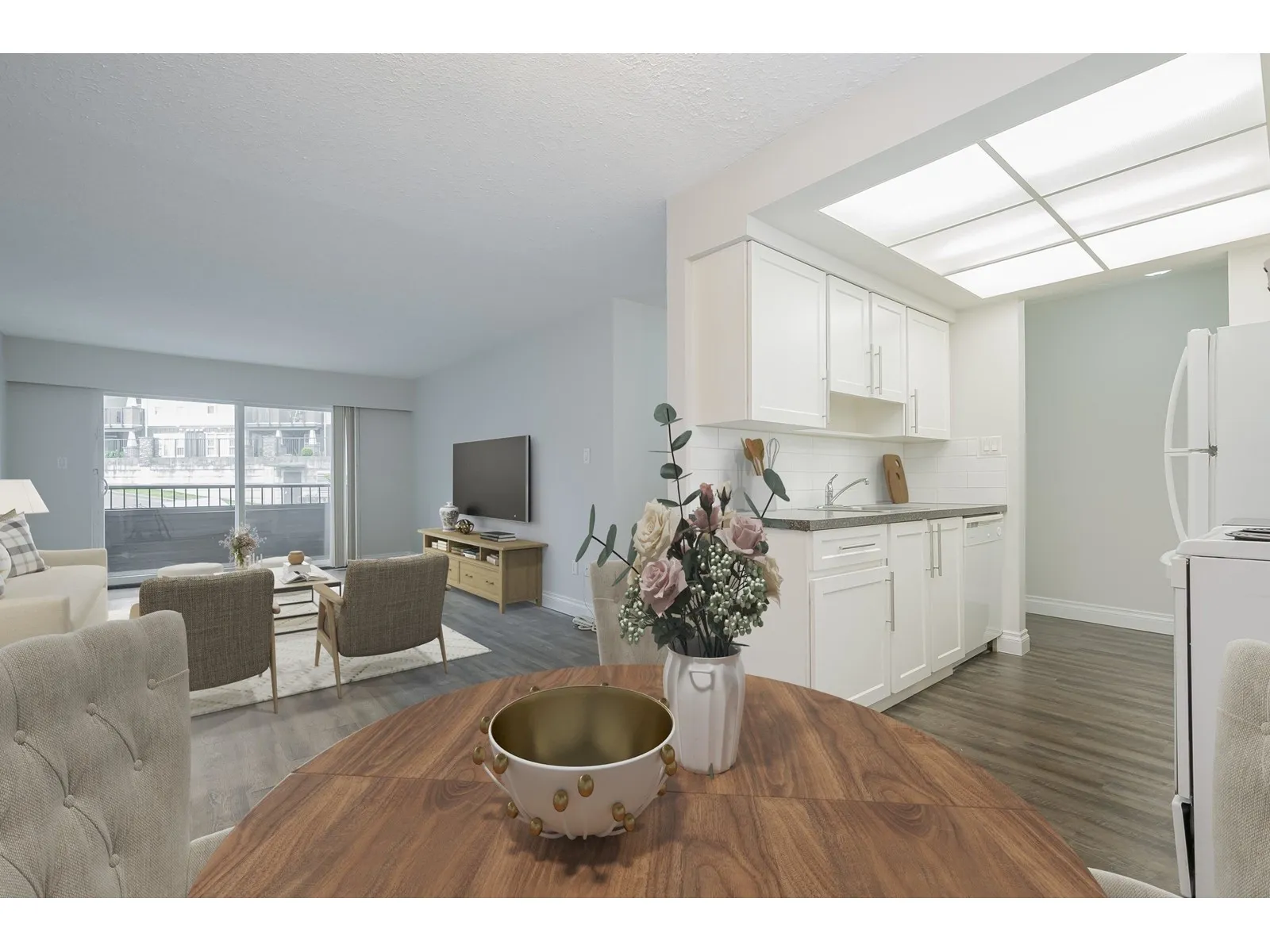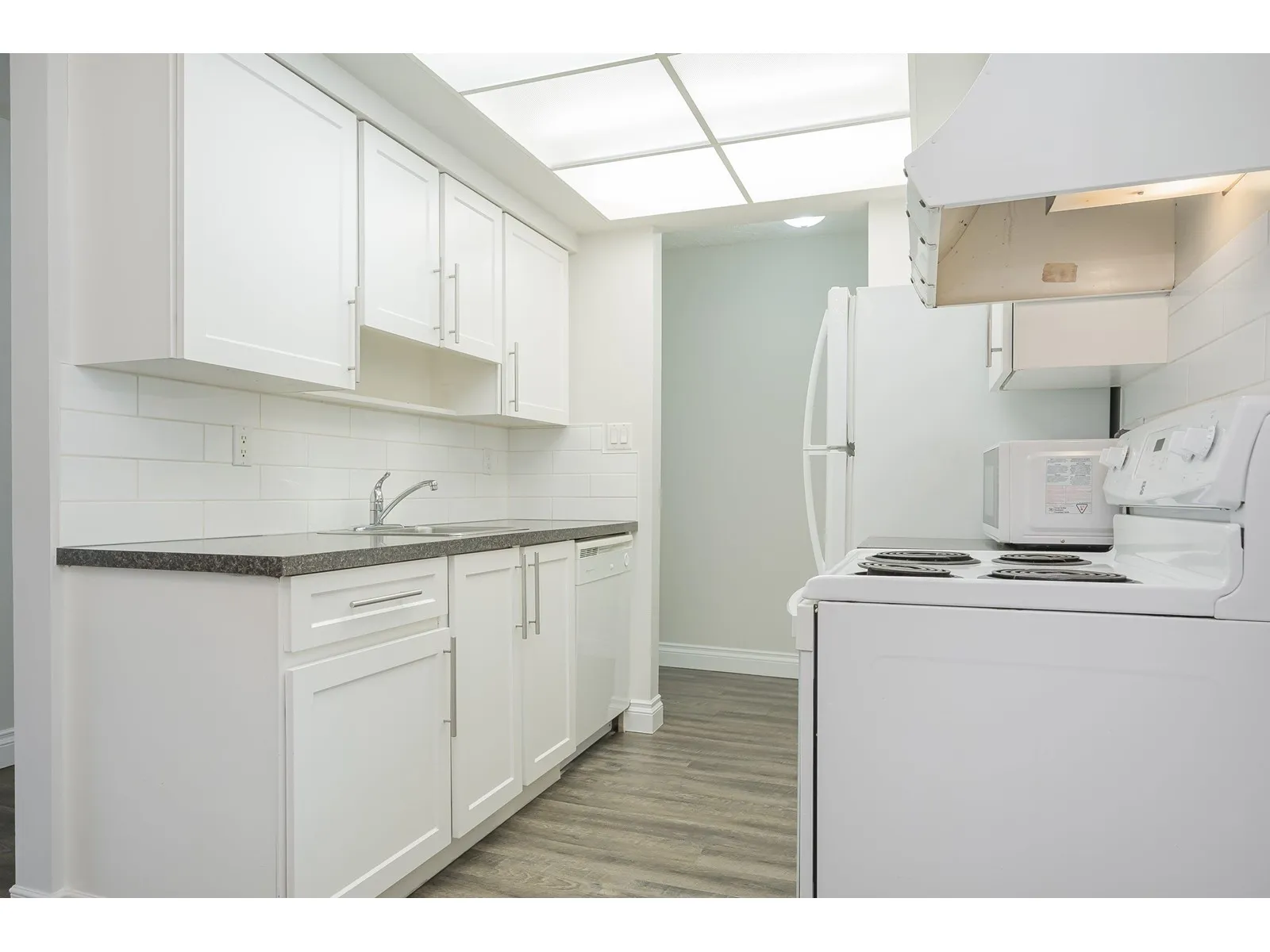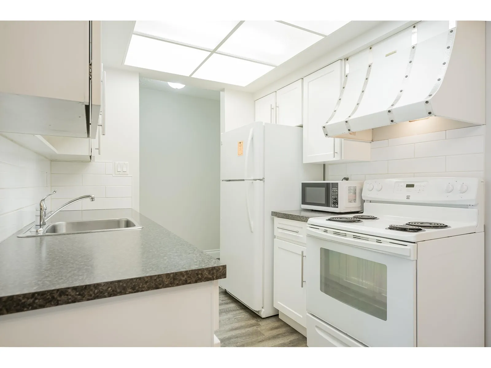 Welcome to Valley View Manor in the heart of Central Abbotsford! This beautifully renovated and rarely available 1 bed, 1 bath home shines with stylish upgrades - new flooring, modern bathroom, sleek appliances, updated cabinets, fresh paint, window coverings, and elegant baseboards. In-suite washer and dryer installation has been approved by strata, so buyers can easily add this convenience! The well-maintained building boasts a newer roof, updated balconies, windows, elevator, and fresh exterior paint. Enjoy a walkable lifestyle near charming boutiques, cafés, UFV, shopping, dining, and more. Minutes to Highway 1, transit, ski hills, and downtown Abbotsford. No age restrictions and rentals allowed - ideal for investors or first-time buyers! Contact LR for more information. (id:27476)