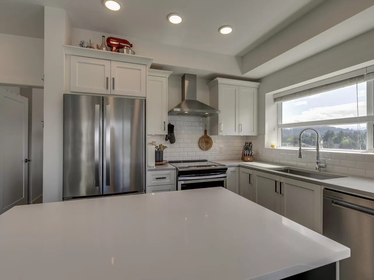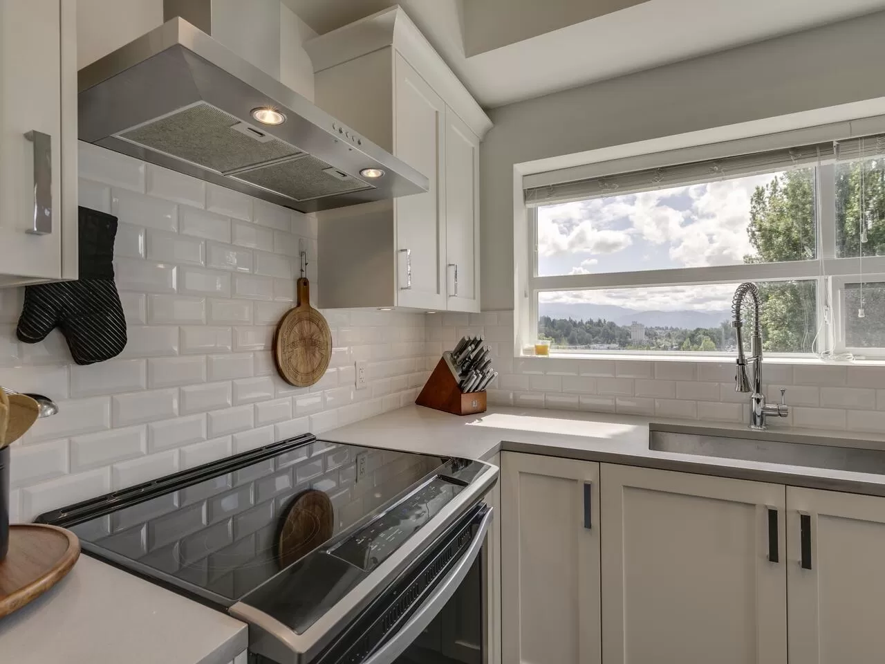 Discover the pinnacle of urban living in this stunning top-floor corner condo at "The Edge", renowned as one of the most luminous and desirable units in the development. This 2-bedroom, 2-bathroom residence boasts a sleek modern color palette, complemented by stainless steel appliances, and offers breathtaking views of downtown Abbotsford and the majestic Mt. Baker. Ideally situated close to all amenities, this condo is perfect for both personal living and investment, as the development is investor-friendly. Residents can also enjoy a spacious 1,500 square foot rooftop deck, perfect for relaxation and social gatherings. Don't miss out-contact us today! (id:27476)
