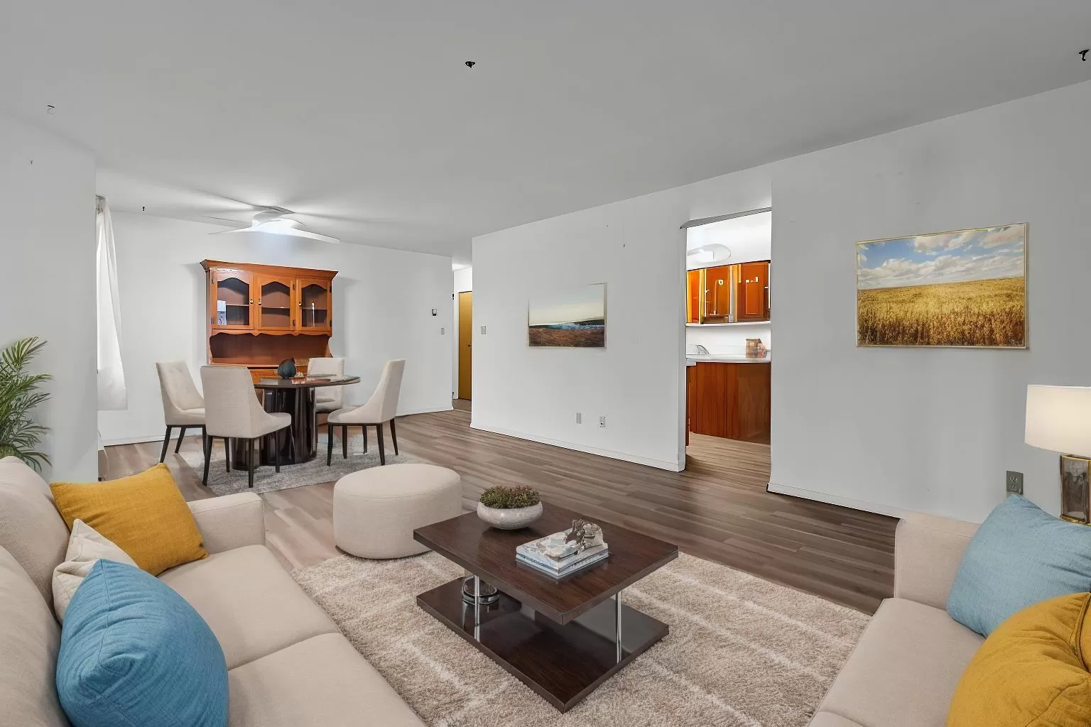 Welcome to Evergreen Village, a vibrant 55+ community in West Abbotsford! This move-in-ready 2bed/2bath home offers over 1,000 sqft of comfortable living space that includes fresh paint and updated flooring throughout. The large living room opens to a spacious patio, perfect for relaxing. The building is packed with amenities, including a pool, gym, games room, workshop, and RV parking. Plus, you'll enjoy easy access to the scenic Discovery Trail, public transit, shopping, restaurants and more. Don't miss this opportunity for an active lifestyle in a welcoming community! (id:27476)