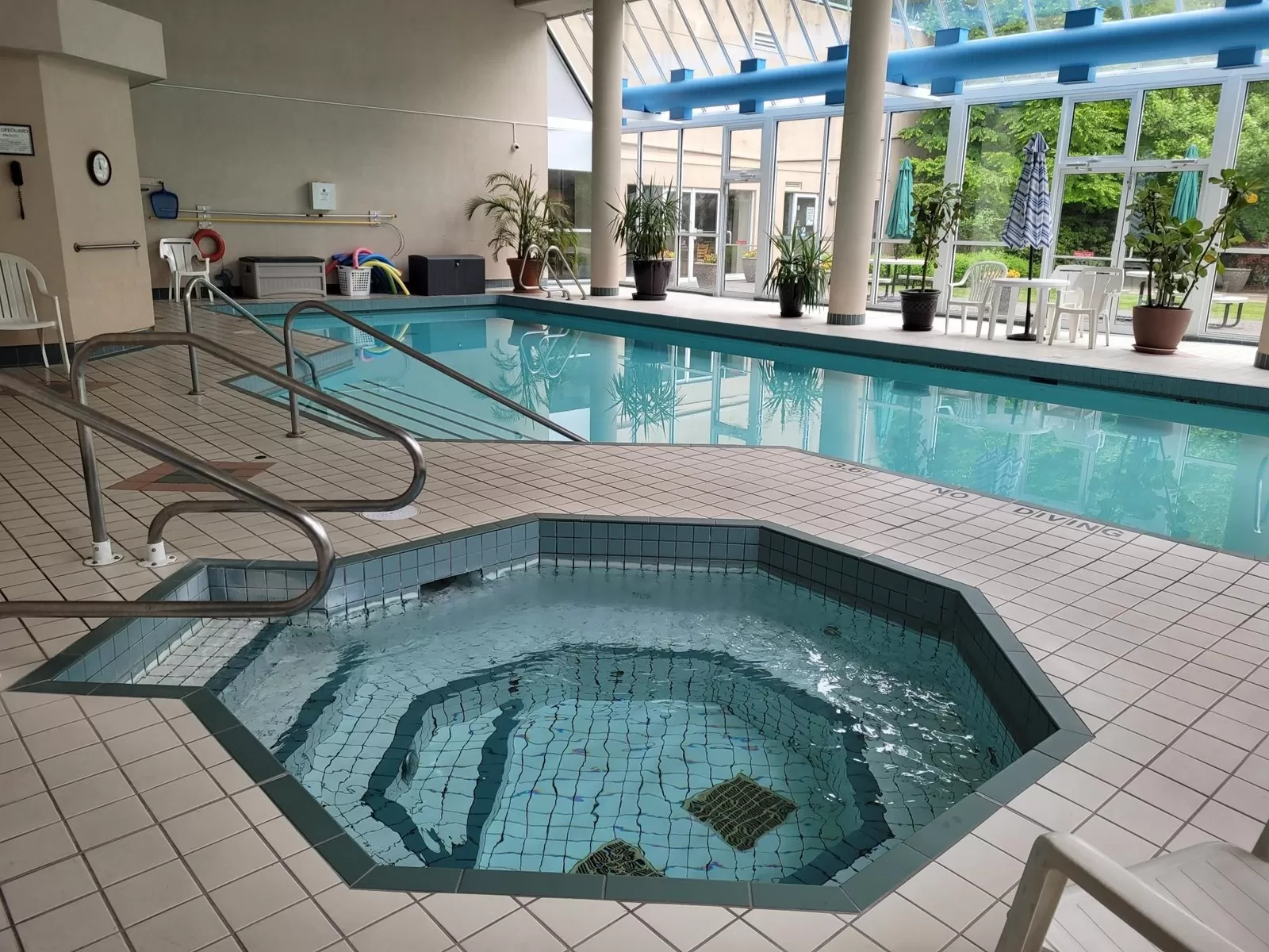 You will love Regency Park resort style living. Centrally located to all amenities. 2 bedrooms, 2 updated bathrooms, kitchen with induction stove, living/dining rooms & bonus enclosed balcony or solarium with new Venetian Blinds . East views of mountains & fountain. Mix of laminate, tile and wall to wall. Indoor pool/hot tub, sauna, exercise, pool table and table tennis rooms. 3 Guest suites off spacious entertaining size amenities room with TV & kitchen. Workshop. Storage Locker. Outdoor Bar B Q area. Lots of visitor parking. RV parking. 55+ senior complex. No pets. Walk to shopping, restaurants and Exhibition Park. Rentals allowed but no short term rentals. (id:27476)