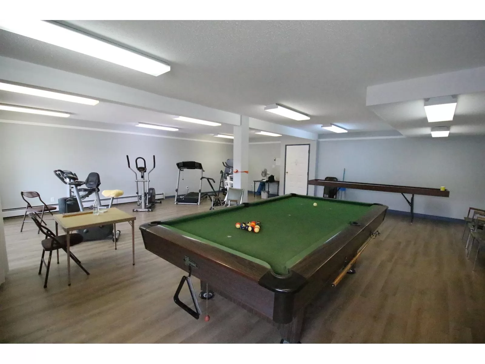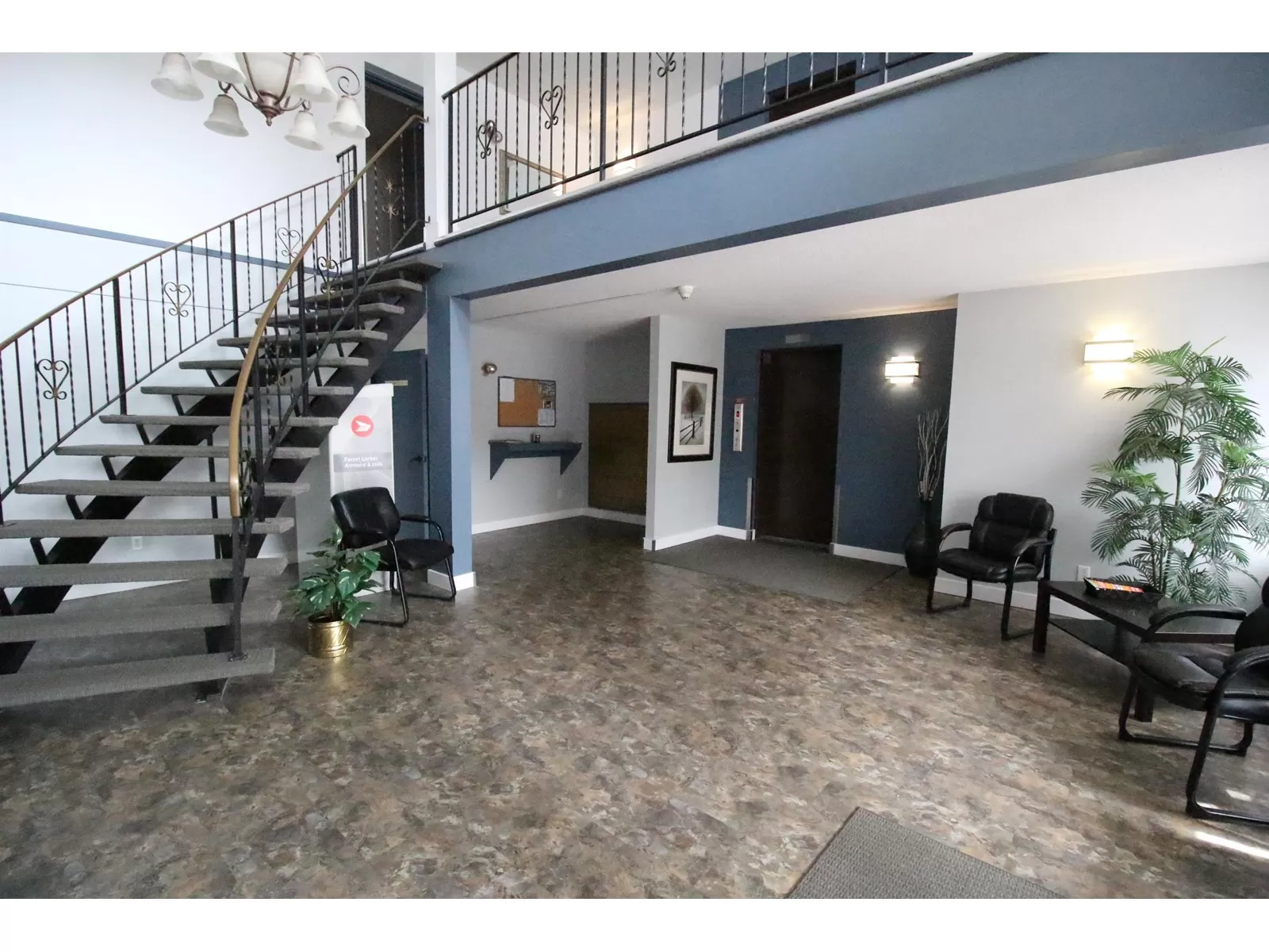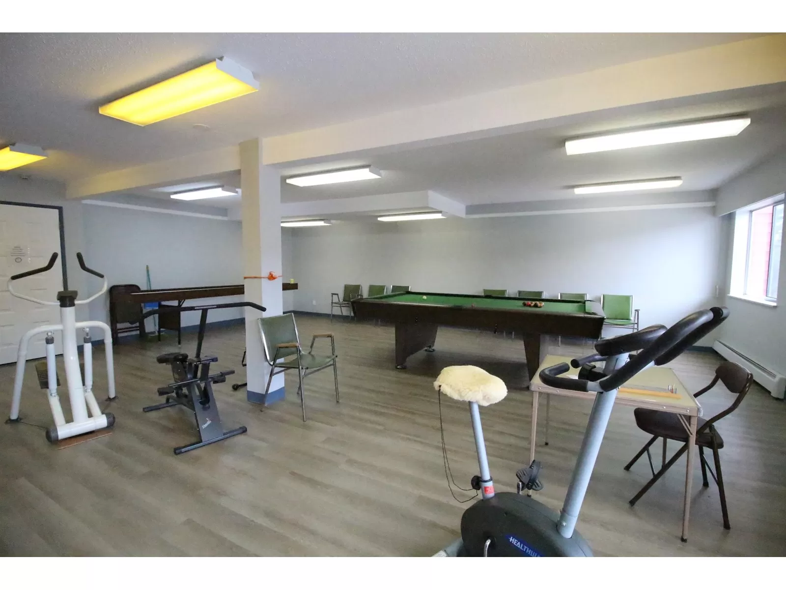 Central Location, Elmwood Manor. Corner unit. Very secure building. 2 bedrooms 1 bath unit, very bright and open floor plan with a large enclosed sundeck with storage off the sundeck and 2nd one in the underground. 55+ complex. Shopping, Library and recreation nearby. Bus stop around corner. Walking distance to most amenities. Building has an exercise and a recreation room with full kitchen and bathroom. In suite laundry. Strata fee includes heat, hot water & electricity. A well maintained building. (id:27476)