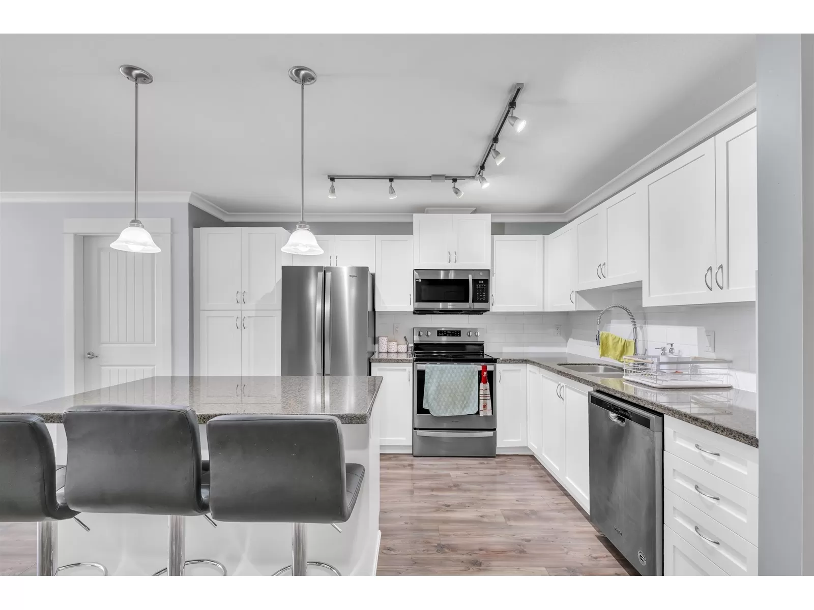 Beautifully maintained and updated 2 bed, 2 bath ground floor condo in West Abbotsford. Features an east-facing patio, open-concept kitchen with new cabinets, quartz counters, and stainless steel appliances. Bathrooms include cabinets, granite counters, and modern flooring. Enjoy in-suite laundry, ample storage, and 1 underground parking stall. Located close to shopping, schools, banks, recreation, and public transit. A move-in-ready home offering comfort, style, and convenience. Book your private showing today! (id:27476)